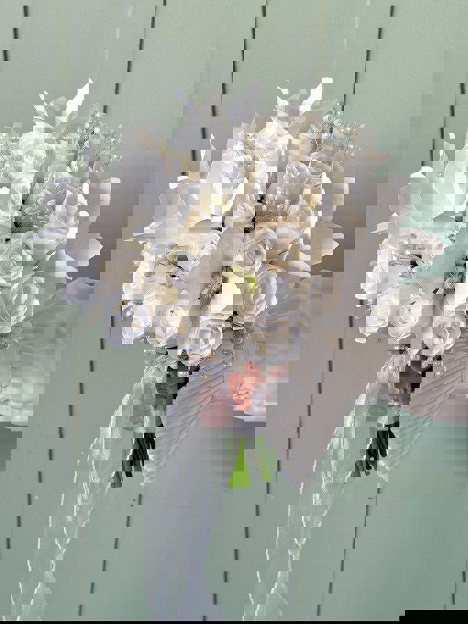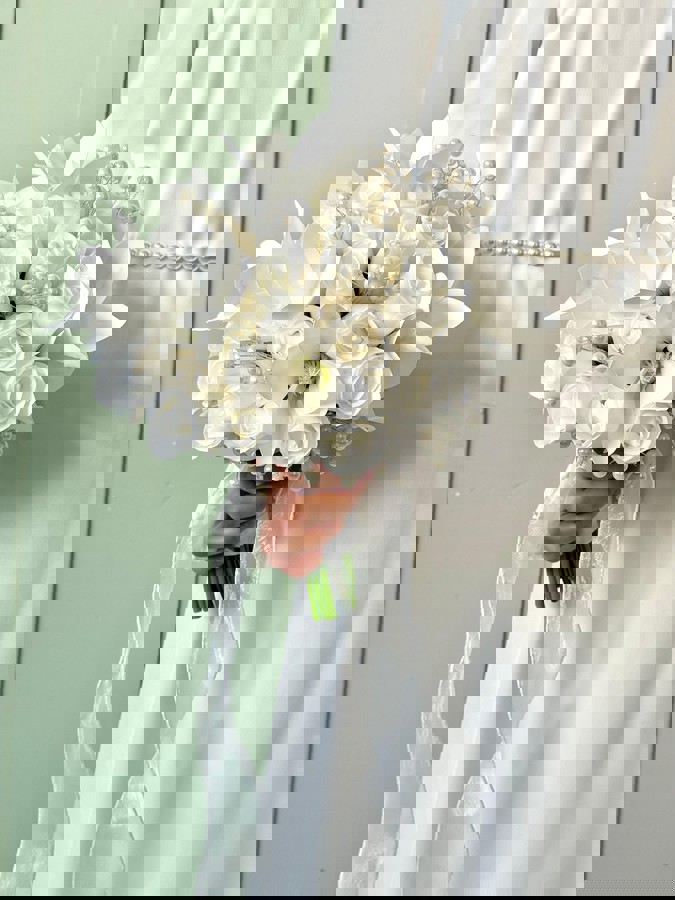 Zarif ve şık tasarımıyla her gelinliğe uyum sağlar. Birinci sınıf kalitedeki kumaş ve yapay çiçeklerden oluşmaktadır, ömürlüktür. Orta boydur ne büyük ne de küçük. Yaka çiçeği hediyedir. Teslim süresi 15-20 iş günüdür; acil tarihler için not kısmına belirtmeniz yeterlidir. Ürünlerimiz tamamen el yapımıdır; bu nedenle her buket ve süs benzersizdir. Çiçeklerin yerleşimi ve detayları ufak farklılıklar gösterebilir, bu da ürünlerimize özel bir karakter katar.