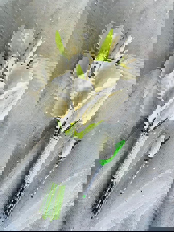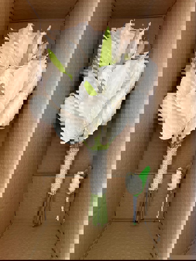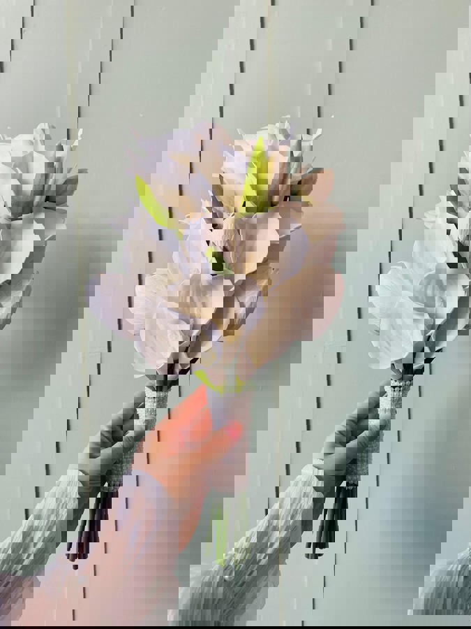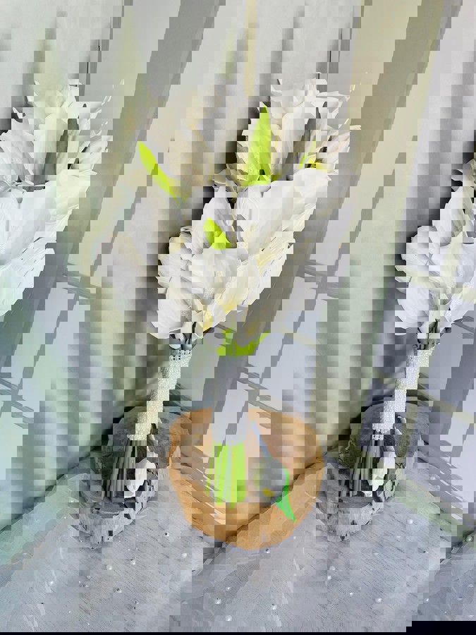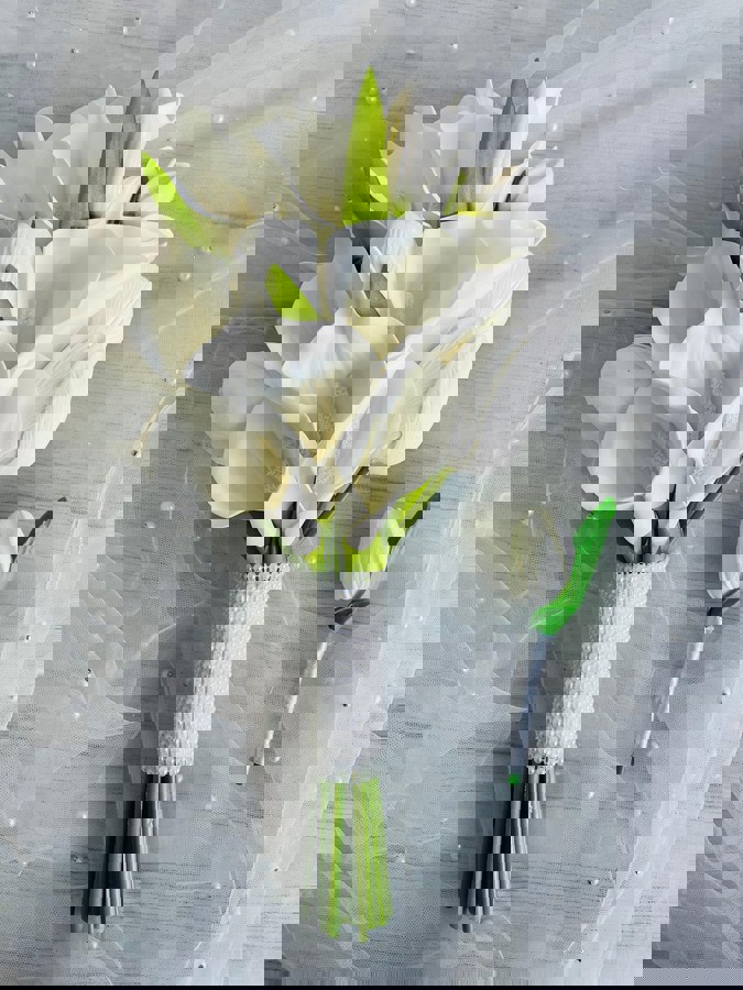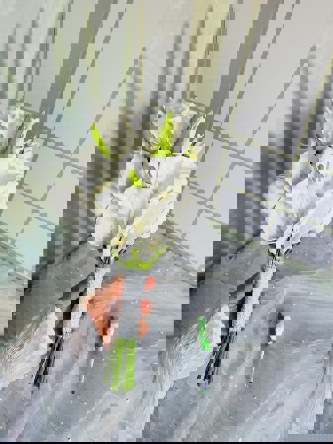 Şıklığı minimal dokunuşlarla taşıyan gelinler için tasarlandı. Orta boydur ne büyük ne de küçük. Yaka çiçeği hediyedir. Teslim süresi 15-20 iş günüdür; acil tarihler için not kısmına belirtmeniz yeterlidir. Ürünlerimiz tamamen el yapımıdır; bu nedenle her buket ve süs benzersizdir. Çiçeklerin yerleşimi ve detayları ufak farklılıklar gösterebilir, bu da ürünlerimize özel bir karakter katar.