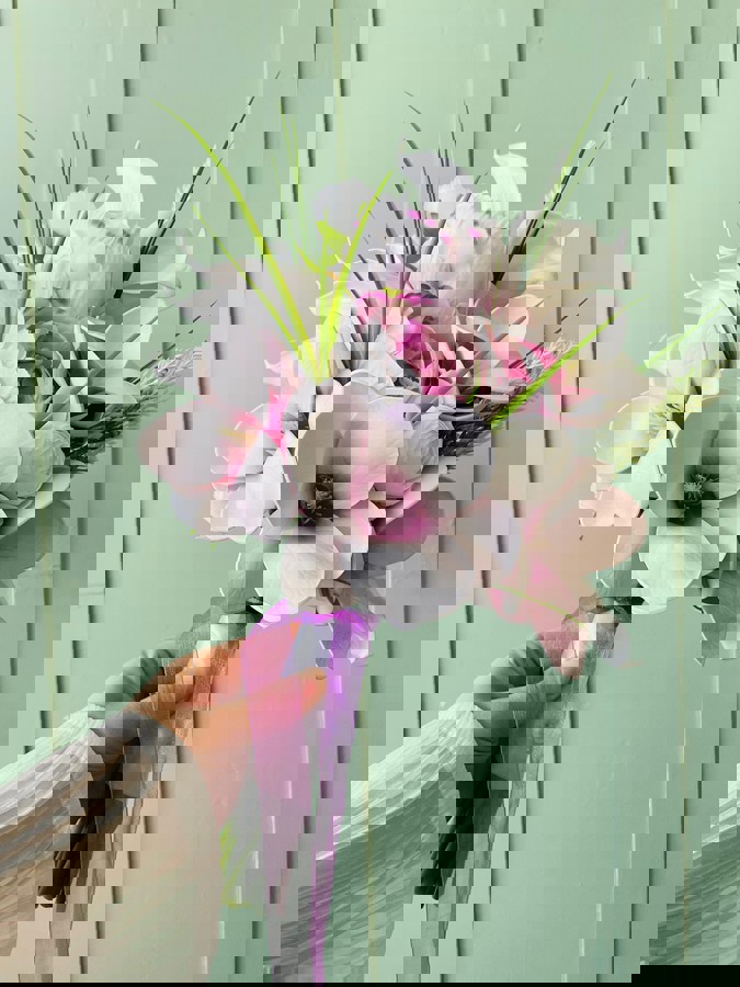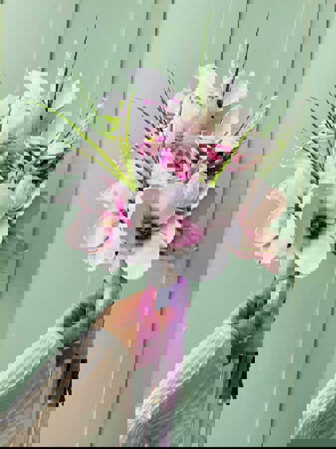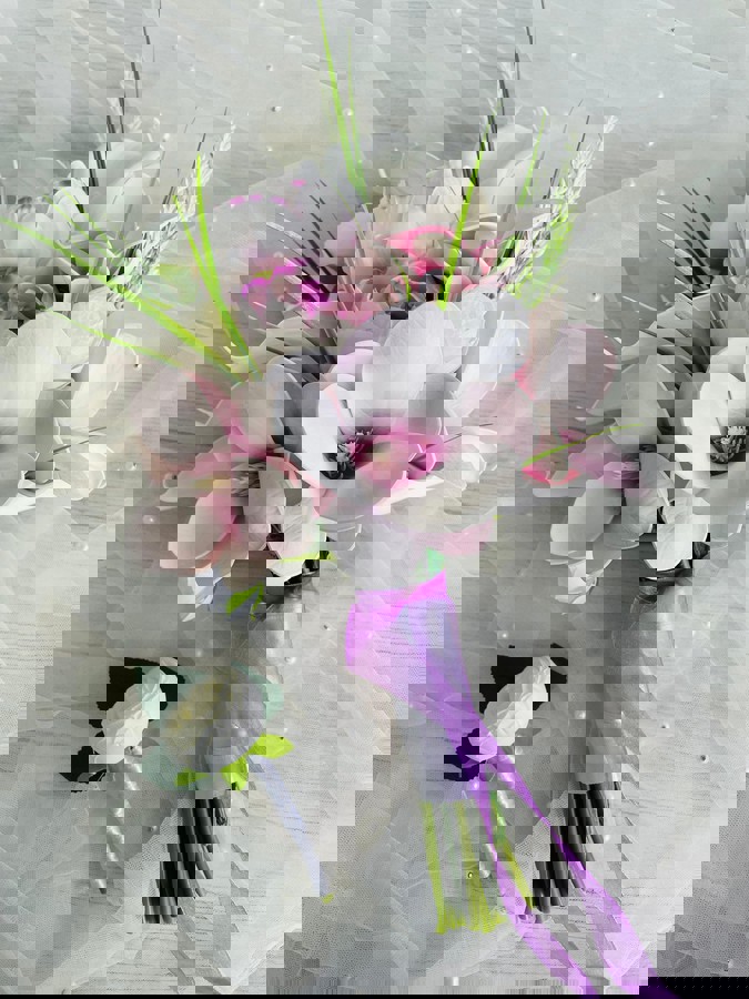 Zarafeti ve asaletiyle öne çıkan manolyalarla hazırlanan bu buket, özel anlara doğal bir şıklık katar. Yumuşak dokusu ve etkileyici duruşuyla sevdiklerinize duygularınızı en saf haliyle iletmenizi sağlar. Birinci sınıf kalitedeki yapay çiçeklerden oluşuyor, ömürlüktür. Orta boydur ne büyük ne de küçük. Yaka çiçeği hediyedir. Teslim süresi 15-20 iş günüdür; acil tarihler için not kısmına belirtmeniz yeterlidir. Ürünlerimiz tamamen el yapımıdır; bu nedenle her buket ve süs benzersizdir. Çiçeklerin yerleşimi ve detayları ufak farklılıklar gösterebilir, bu da ürünlerimize özel bir karakter katar.