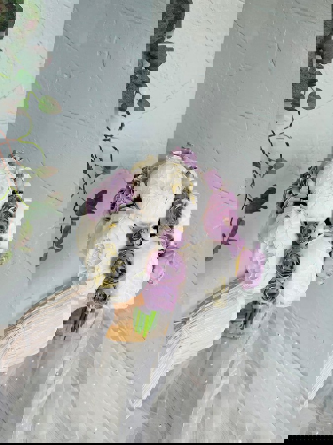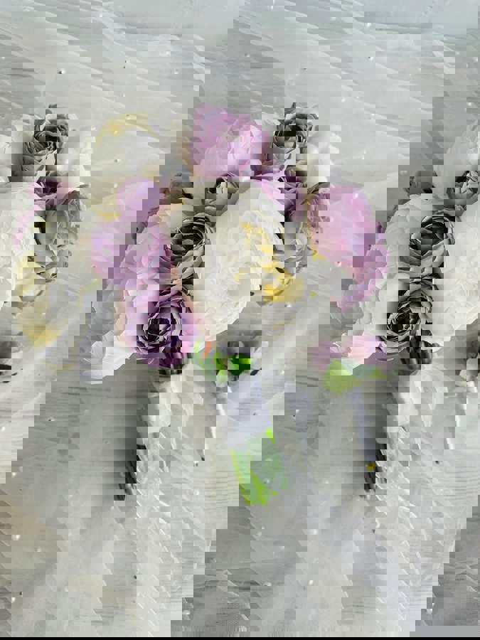Morun büyüsünü taşıyan bu özel tasarım, zarif gelinlerin stiline asil bir dokunuş katmak için hazırlandı. Orta boydur ne büyük ne de küçük. Düğün veya nişan için uygundur. Yaka çiçeği hediyedir. Teslim süresi 15-20 iş günüdür; acil tarihler için not kısmına belirtmeniz yeterlidir. Ürünlerimiz tamamen el yapımıdır; bu nedenle her buket ve süs benzersizdir. Çiçeklerin yerleşimi ve detayları ufak farklılıklar gösterebilir, bu da ürünlerimize özel bir karakter katar.