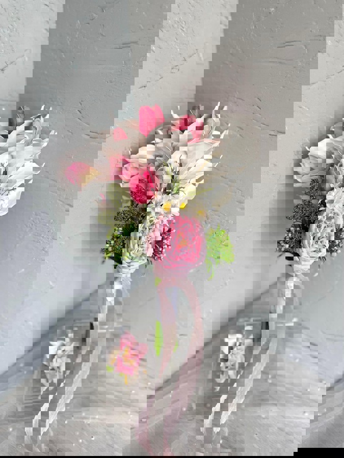 Gelin buketi, gelin araç süsü veya masa çiçeği olarak düğününüzün genel konseptine uyum sağlar. Renk paletine göre kişiselleştirme yapabilirsiniz.