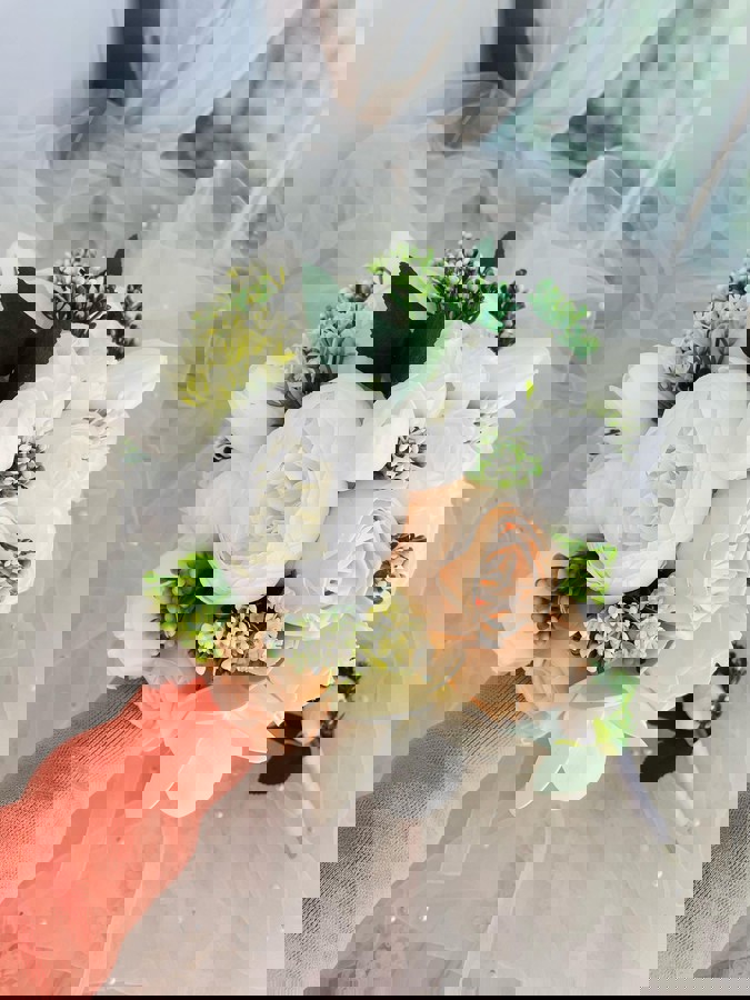 Gelin buketi, gelin araç süsü veya masa çiçeği olarak düğününüzün genel konseptine uyum sağlar. Renk paletine göre kişiselleştirme yapabilirsiniz.