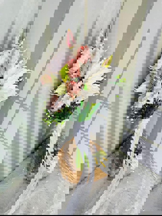 Gelin buketi, gelin araç süsü veya masa çiçeği olarak düğününüzün genel konseptine uyum sağlar. Renk paletine göre kişiselleştirme yapabilirsiniz.