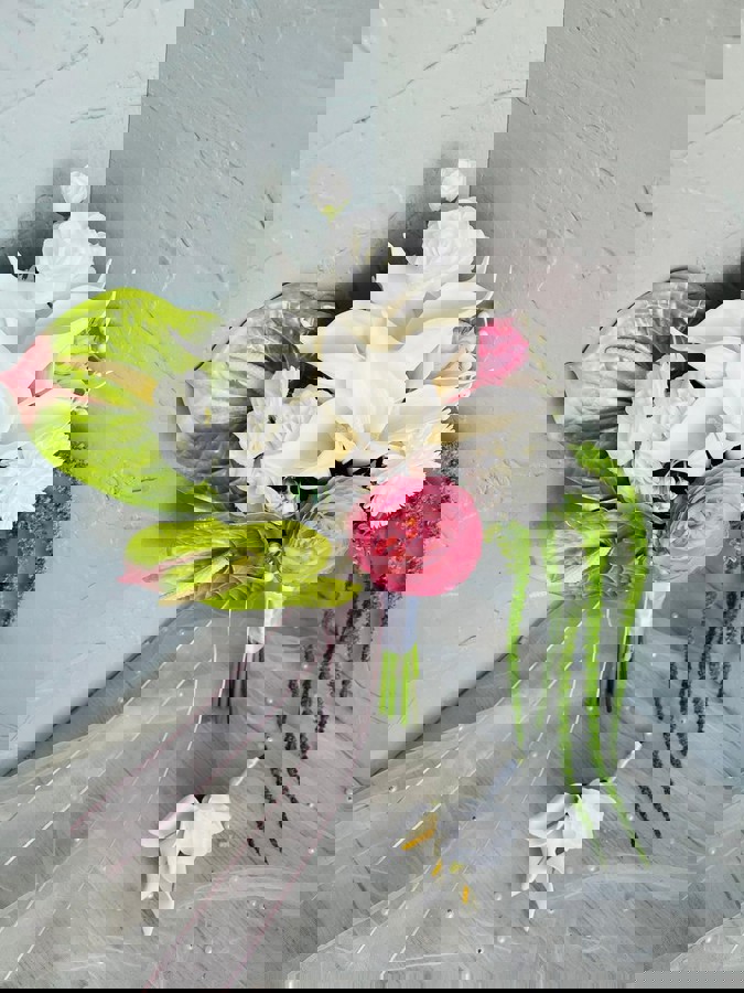 Gelin buketi, gelin araç süsü veya masa çiçeği olarak düğününüzün genel konseptine uyum sağlar. Renk paletine göre kişiselleştirme yapabilirsiniz.