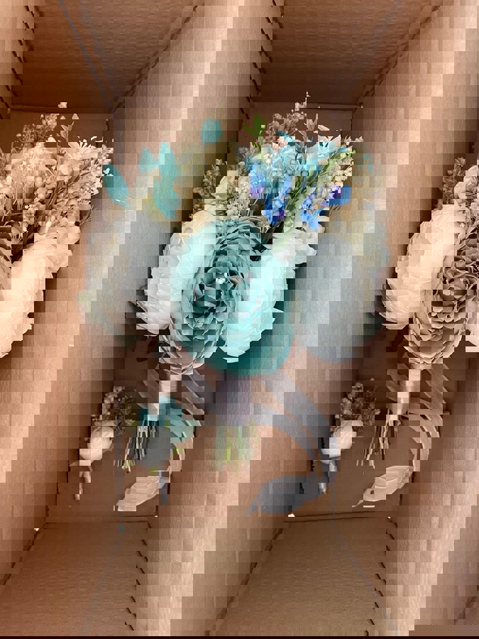 Gerçek çiçek görünümündeki birinci sınıf kumaş çiçeklerle hazırlanmıştır. Düğün veya nişan için uygundur. Orta boydur ne büyük ne de küçük . Yaka çiçeği hediyedir. Teslim süresi 15-20 iş günüdür; acil tarihler için not kısmına belirtmeniz yeterlidir. Ürünlerimiz tamamen el yapımıdır; bu nedenle her buket ve süs benzersizdir. Çiçeklerin yerleşimi ve detayları ufak farklılıklar gösterebilir, bu da ürünlerimize özel bir karakter katar.