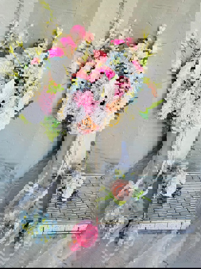 Gelin buketi, gelin araç süsü veya masa çiçeği olarak düğününüzün genel konseptine uyum sağlar. Renk paletine göre kişiselleştirme yapabilirsiniz.
