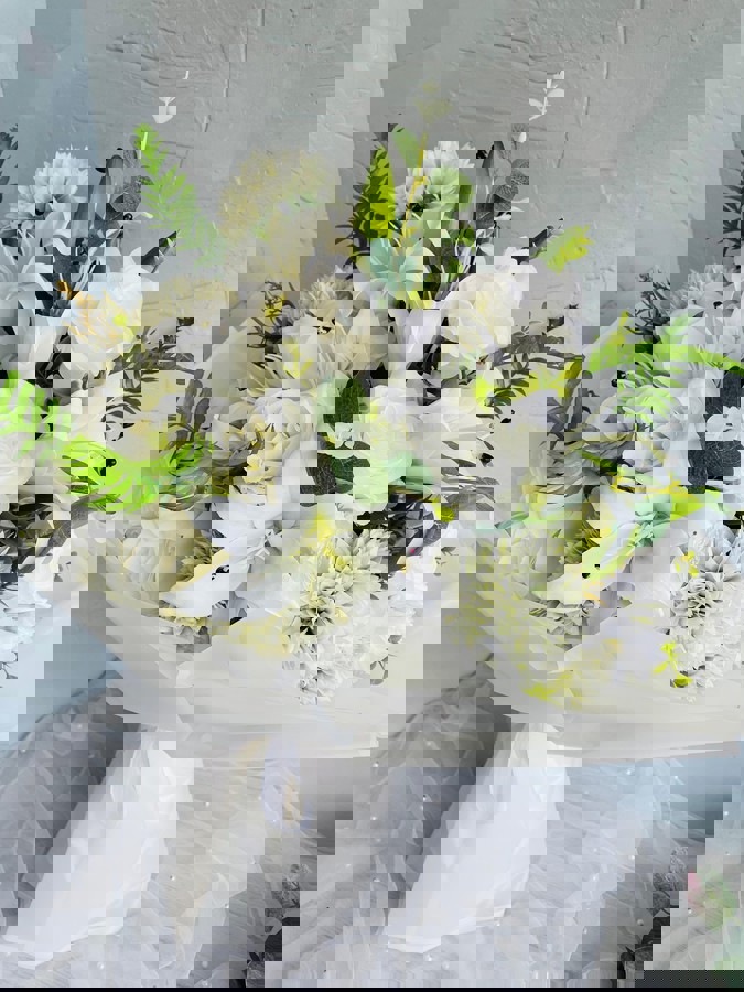 Göz alıcı bir ilk izlenim için tasarlandı. Her detayıyla özenle hazırlanan isteme ve nişan buketimiz, sevginin en asil halini yansıtır. Büyük boydur. Ömürlük birinci sınıf kalitedeki kumaş çiçeklerden oluşmaktadır. Teslim süresi 15-20 iş günüdür; acil tarihler için not kısmına belirtmeniz yeterlidir. Ürünlerimiz tamamen el yapımıdır; bu nedenle her buket ve süs benzersizdir. Çiçeklerin yerleşimi ve detayları ufak farklılıklar gösterebilir, bu da ürünlerimize özel bir karakter katar.