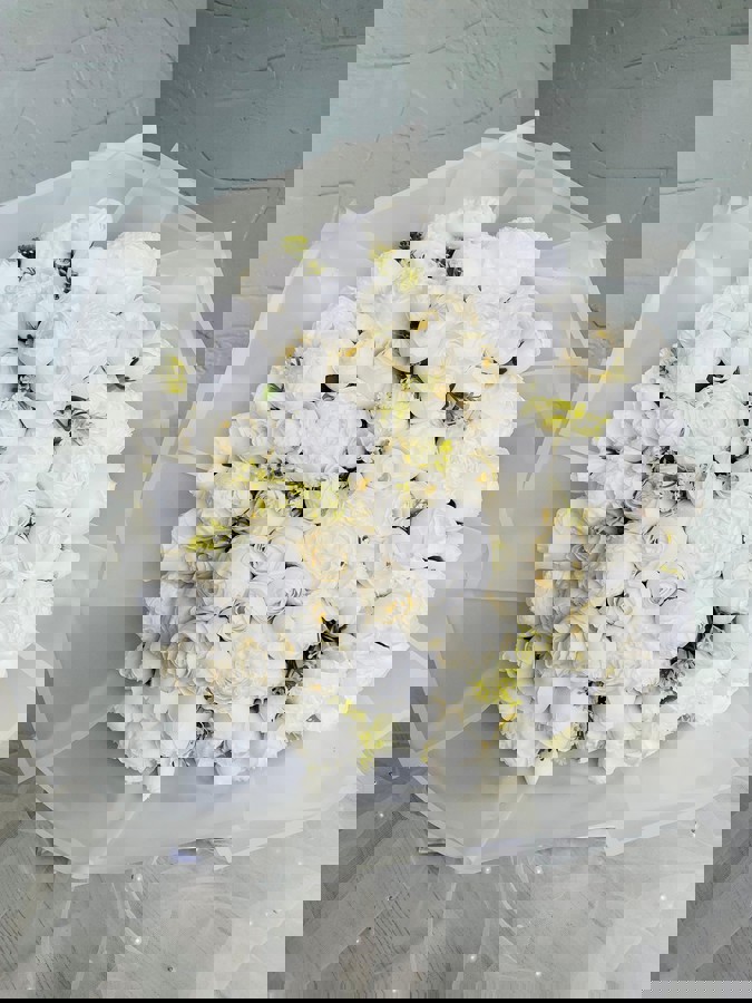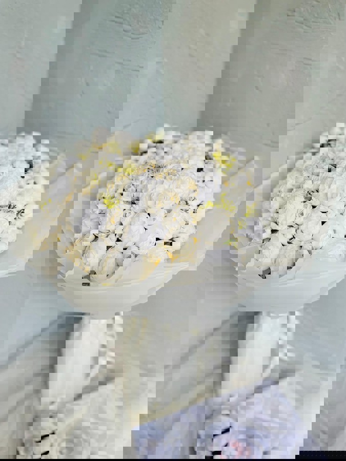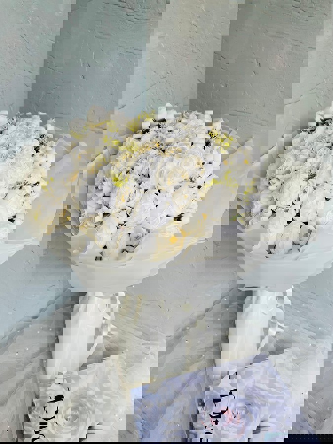 Göz alıcı bir ilk izlenim için tasarlandı. Her detayıyla özenle hazırlanan isteme ve nişan buketimiz, sevginin en asil halini yansıtır. Büyük boydur. Ömürlük birinci sınıf kalitedeki kumaş çiçeklerden oluşmaktadır. Teslim süresi 15-20 iş günüdür; acil tarihler için not kısmına belirtmeniz yeterlidir. Ürünlerimiz tamamen el yapımıdır; bu nedenle her buket ve süs benzersizdir. Çiçeklerin yerleşimi ve detayları ufak farklılıklar gösterebilir, bu da ürünlerimize özel bir karakter katar.