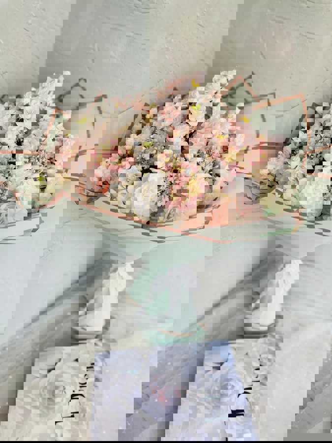 Bu zarif buket , sevginizi en şık şekilde ifade eder. Ömürlüktür. Büyük boydur. Teslim süresi 15-20 iş günüdür; acil tarihler için not kısmına belirtmeniz yeterlidir. Ürünlerimiz tamamen el yapımıdır; bu nedenle her buket ve süs benzersizdir. Çiçeklerin yerleşimi ve detayları ufak farklılıklar gösterebilir, bu da ürünlerimize özel bir karakter katar.