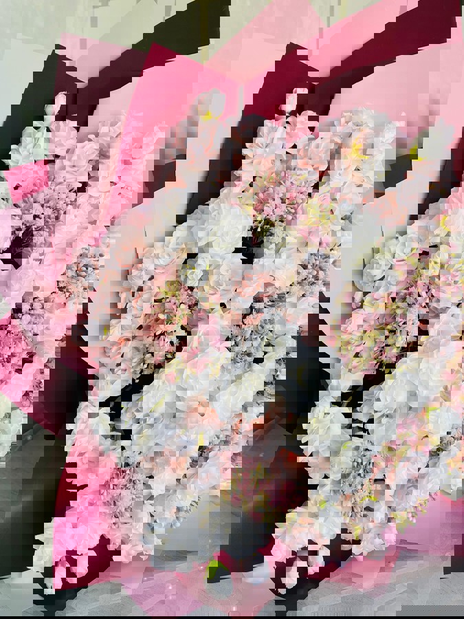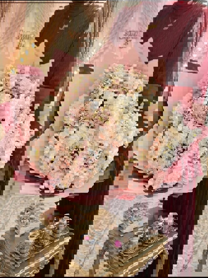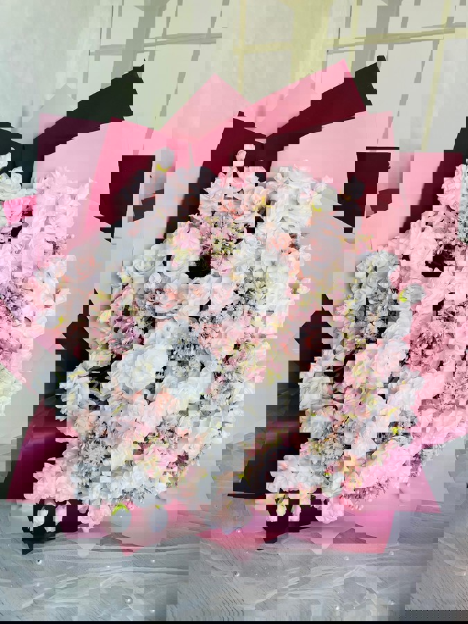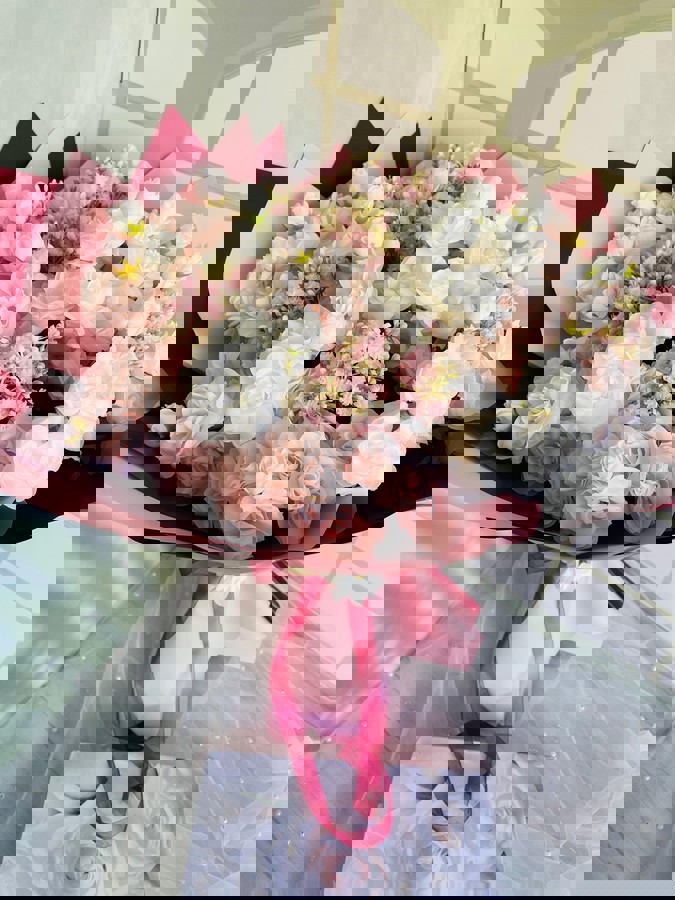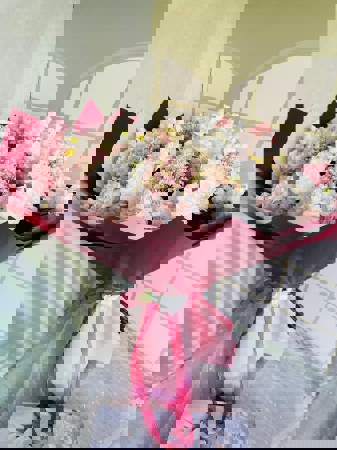 Bu zarif buket , romantik pembesi ve yumuşak dokusuyla kalpleri fetheder. Sevginizi en şık şekilde ifade eder. Ömürlüktür. Büyük boydur. Teslim süresi 15-20 iş günüdür; acil tarihler için not kısmına belirtmeniz yeterlidir. Ürünlerimiz tamamen el yapımıdır; bu nedenle her buket ve süs benzersizdir. Çiçeklerin yerleşimi ve detayları ufak farklılıklar gösterebilir, bu da ürünlerimize özel bir karakter katar.