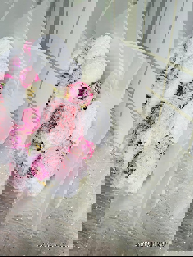 Göz alıcı bir ilk izlenim için tasarlandı. Her detayıyla özenle hazırlanan isteme ve nişan buketimiz, sevginin en asil halini yansıtır.? Büyük boydur. Ömürlük birinci sınıf kalitedeki kumaş çiçeklerden oluşmaktadır. Teslim süresi 15-20 iş günüdür; acil tarihler için not kısmına belirtmeniz yeterlidir. 💌Ürünlerimiz tamamen el yapımıdır; bu nedenle her buket ve süs benzersizdir. Çiçeklerin yerleşimi ve detayları ufak farklılıklar gösterebilir, bu da ürünlerimize özel bir karakter katar.