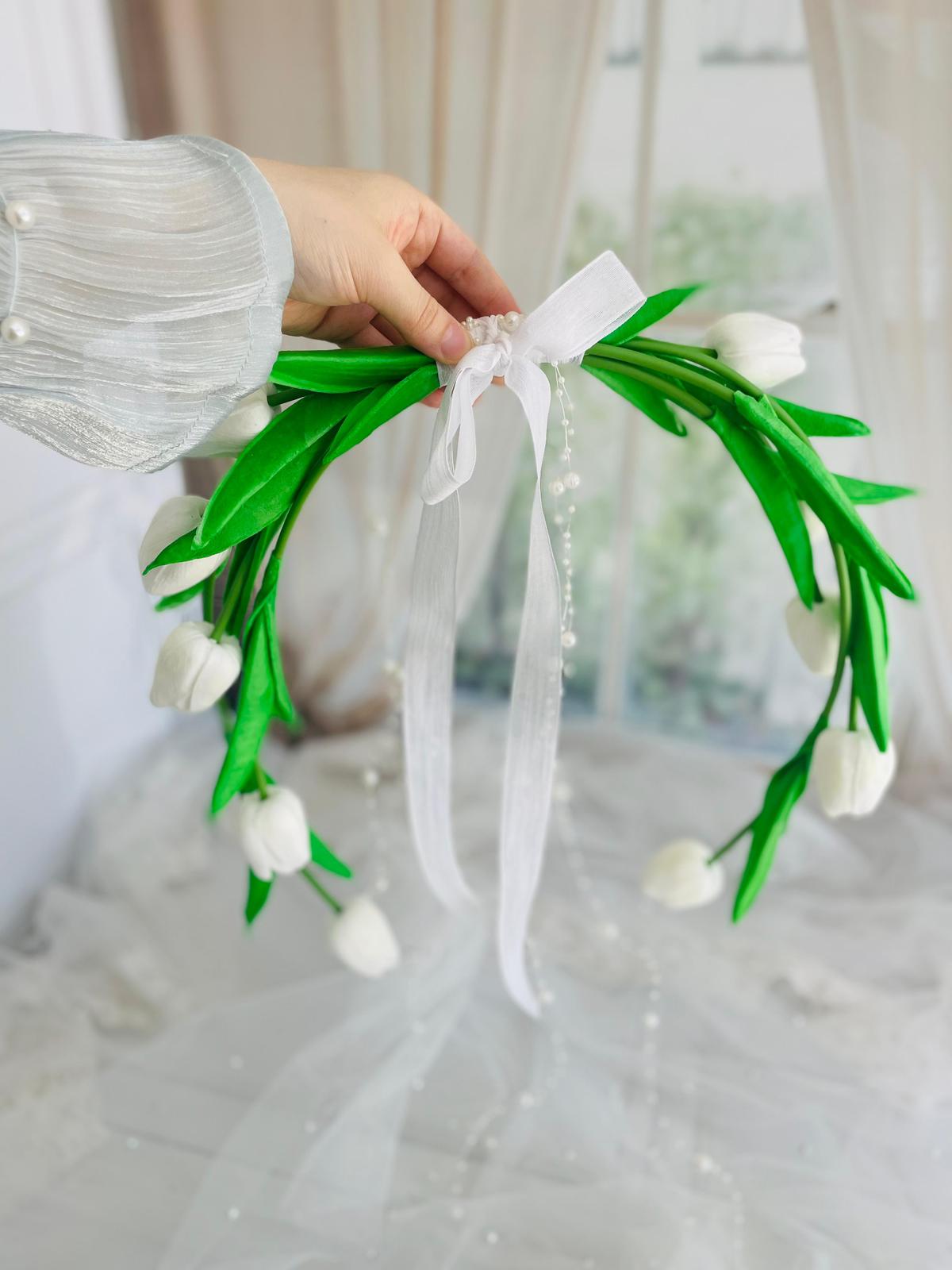 💐Her detayıyla bir sanat eseri… Bu özel tasarım gelin buketi, klasik formların ötesine geçerek modern zarafeti yeniden tanımlıyor. El işçiliğiyle hazırlanmış, zarif laleler ve inci dokunuşlarıyla zamansız bir şıklık sunar. Sıradan olmayan gelinler için tasarlandı. 💫 Yapay ama ıslak dokulu lalelerden oluşmaktadır . Elde duruşu görseldeki gibidir. Yaka çiçeği hediyedir. Teslim süremiz 15-20 iş günüdür; acil tarihler için sipariş notuna tarih eklemeniz yeterlidir.💖 Ürünlerimiz tamamen el yapımıdır; bu nedenle her buket ve süs benzersizdir. Çiçeklerin yerleşimi ve detayları ufak farklılıklar gösterebilir, bu da ürünlerimize özel bir karakter katar. 💐