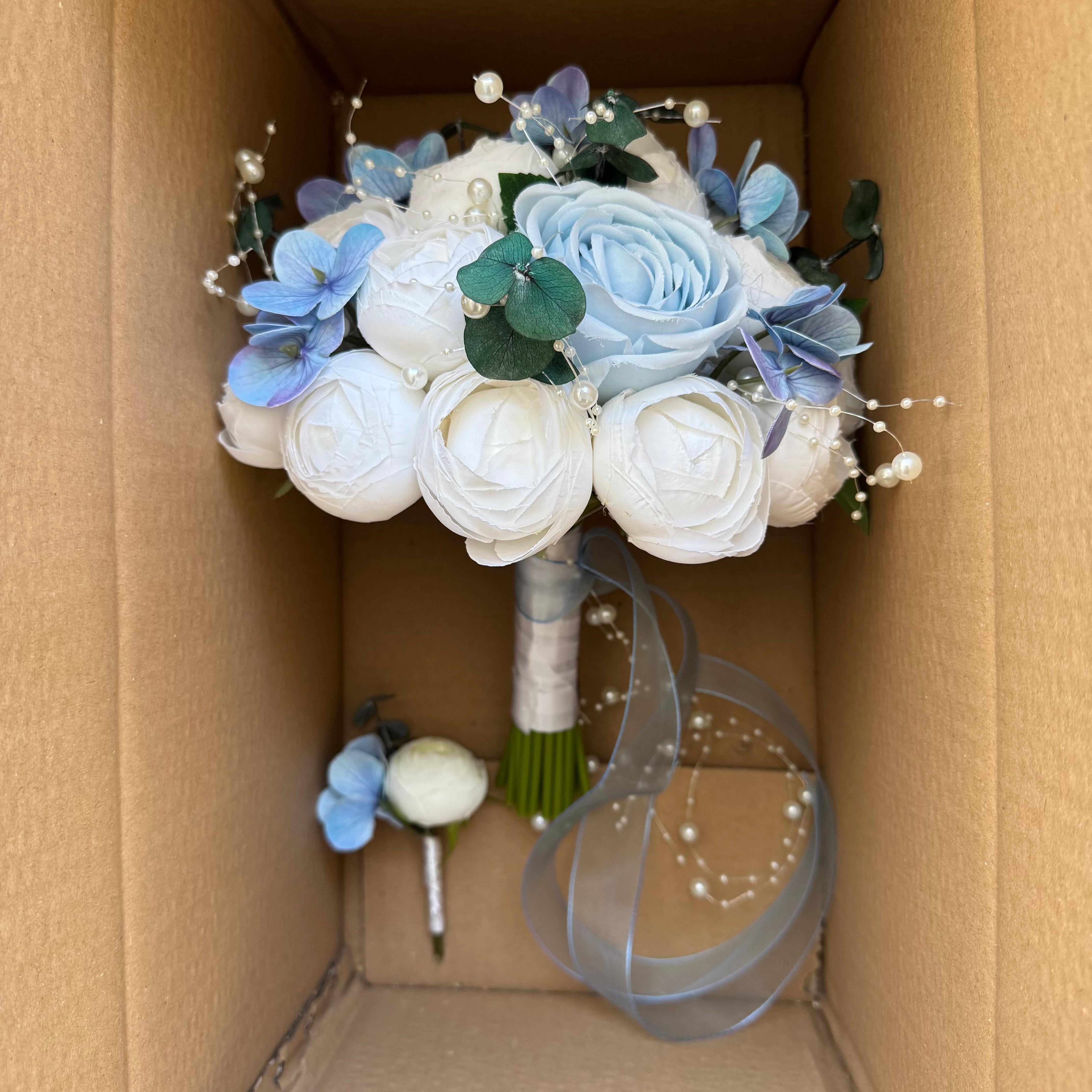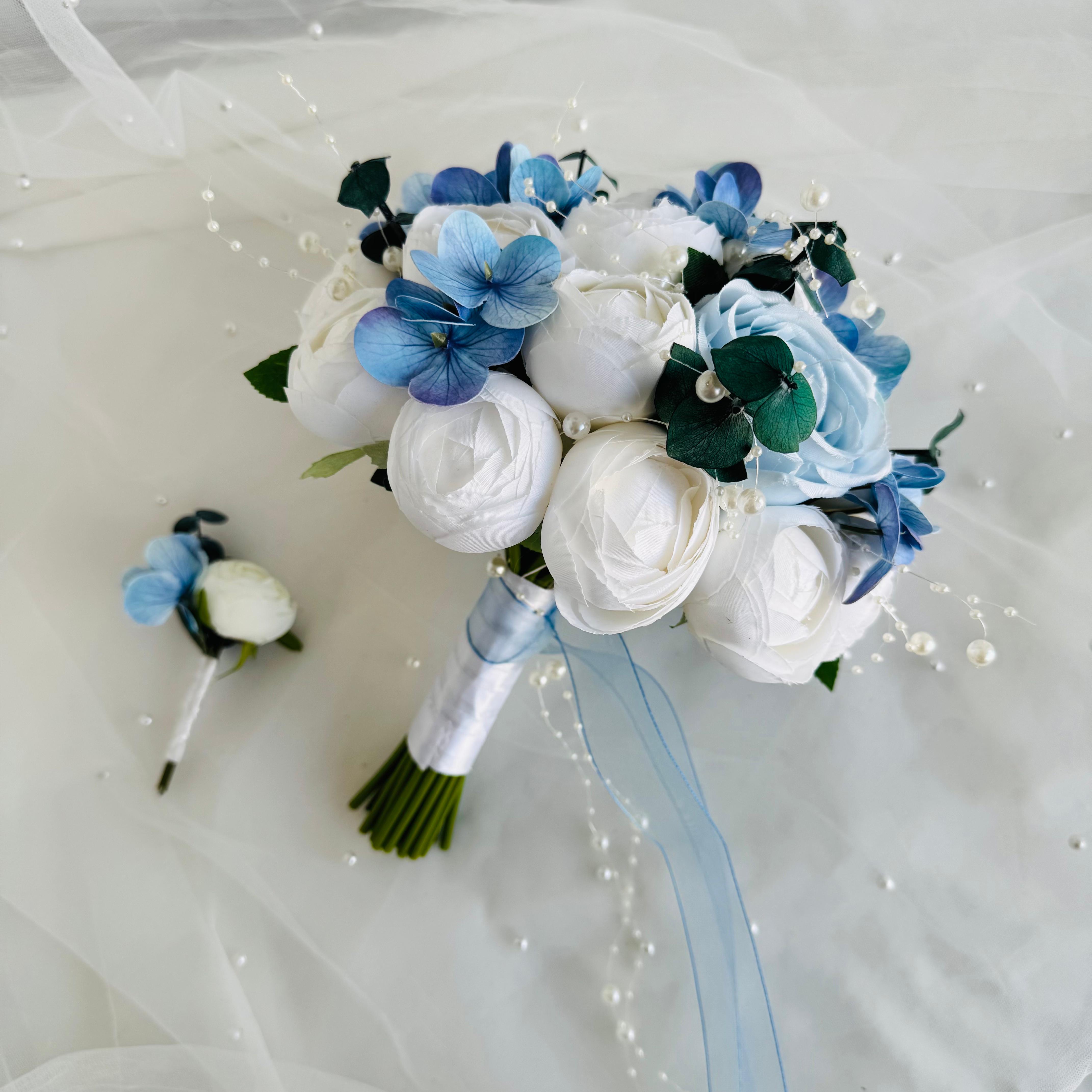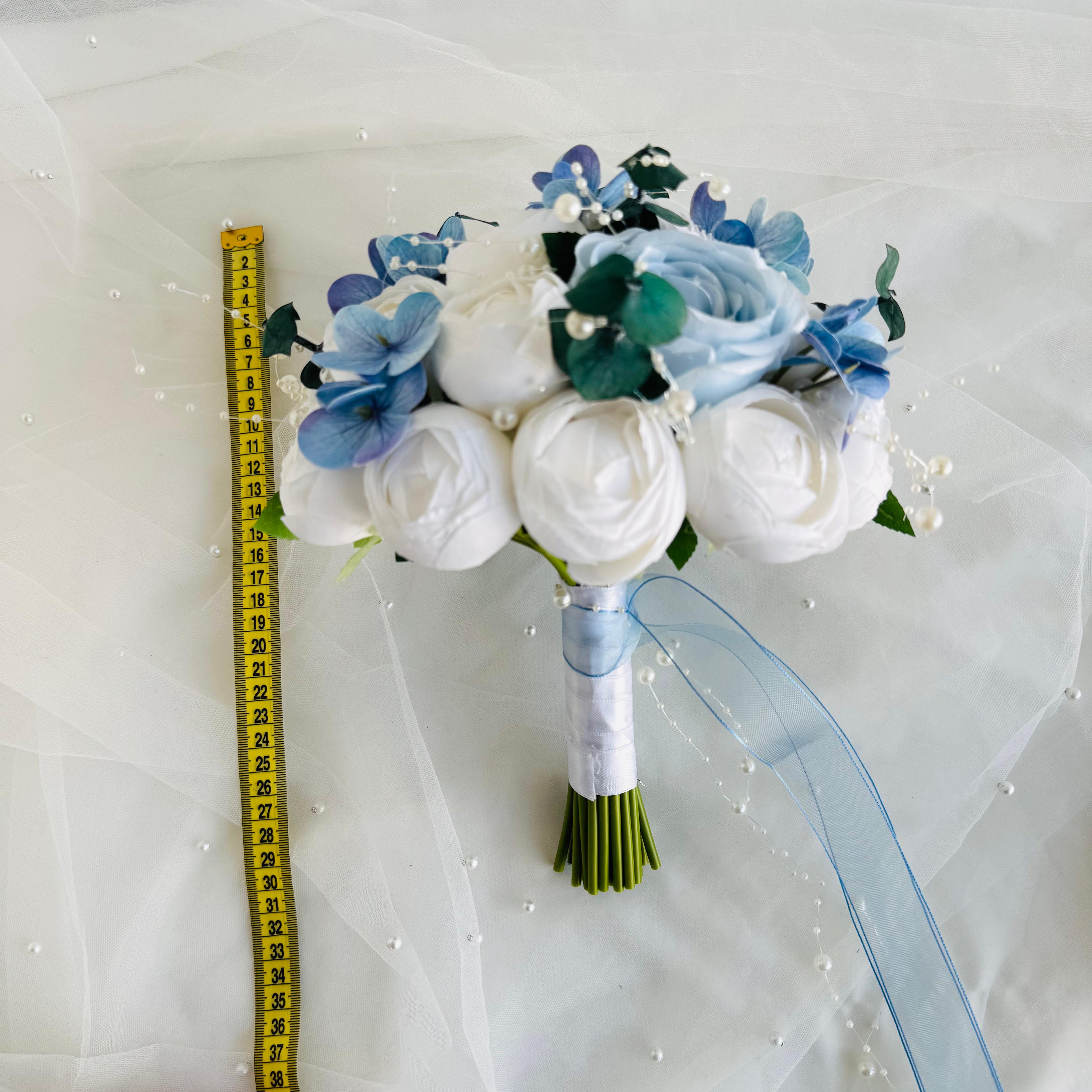 💫Birinci sınıf kalitedeki kumaş ve şoklanmış çiçeklerle hazırlanmış bu özel buket, mavi ve beyaz tonlarının uyumuyla ömürlük bir şıklık sunar. Özgün formu ile her detayı zarafet dolu bir tasarım.✨ Orta boydur ne büyük ne de küçük. Yaka çiçeği hediyedir. Teslim süresi 15-20 iş günüdür; acil tarihler için not kısmına belirtmeniz yeterlidir. 💌Ürünlerimiz tamamen el yapımıdır; bu nedenle her buket ve süs benzersizdir. Çiçeklerin yerleşimi ve detayları ufak farklılıklar gösterebilir, bu da ürünlerimize özel bir karakter katar. 💐