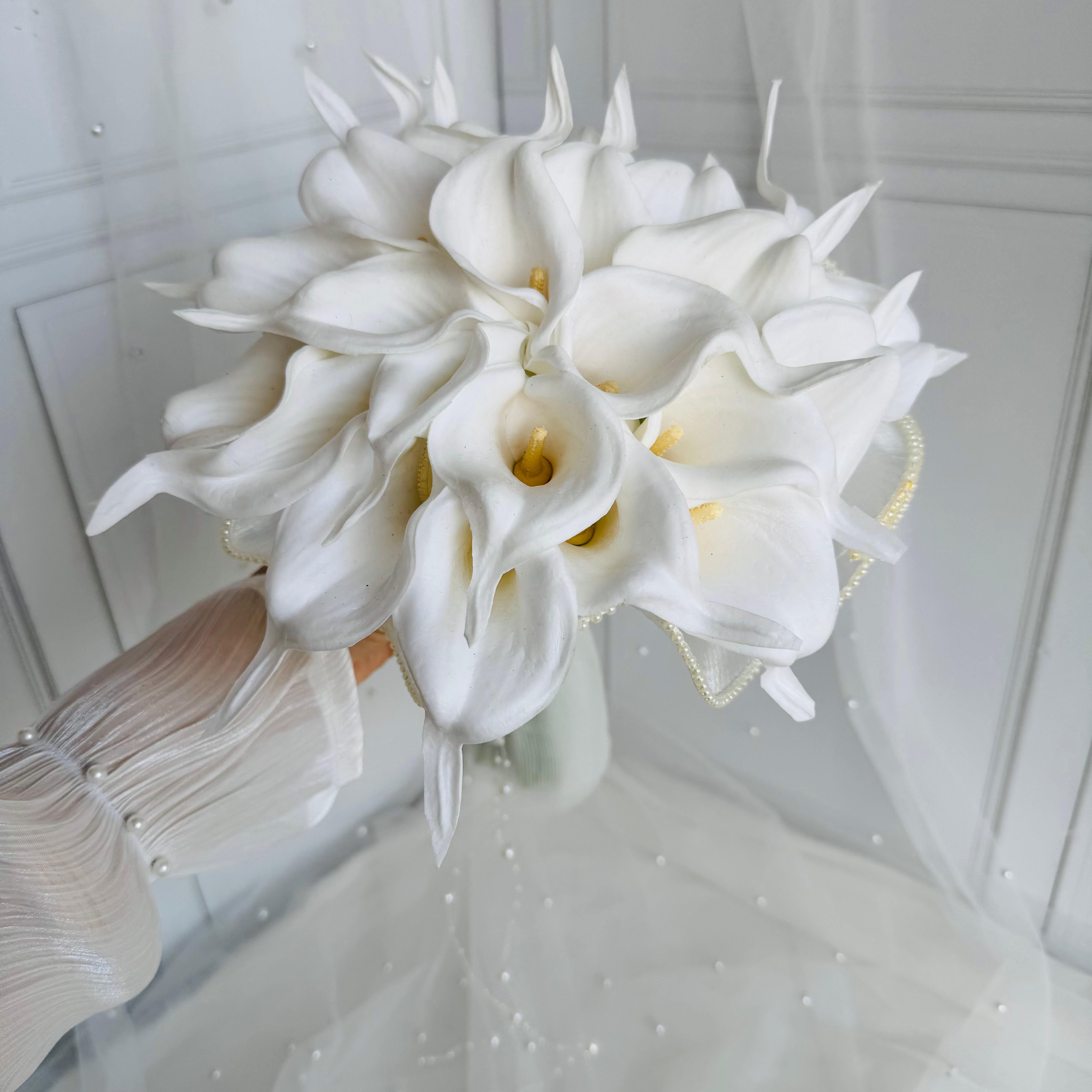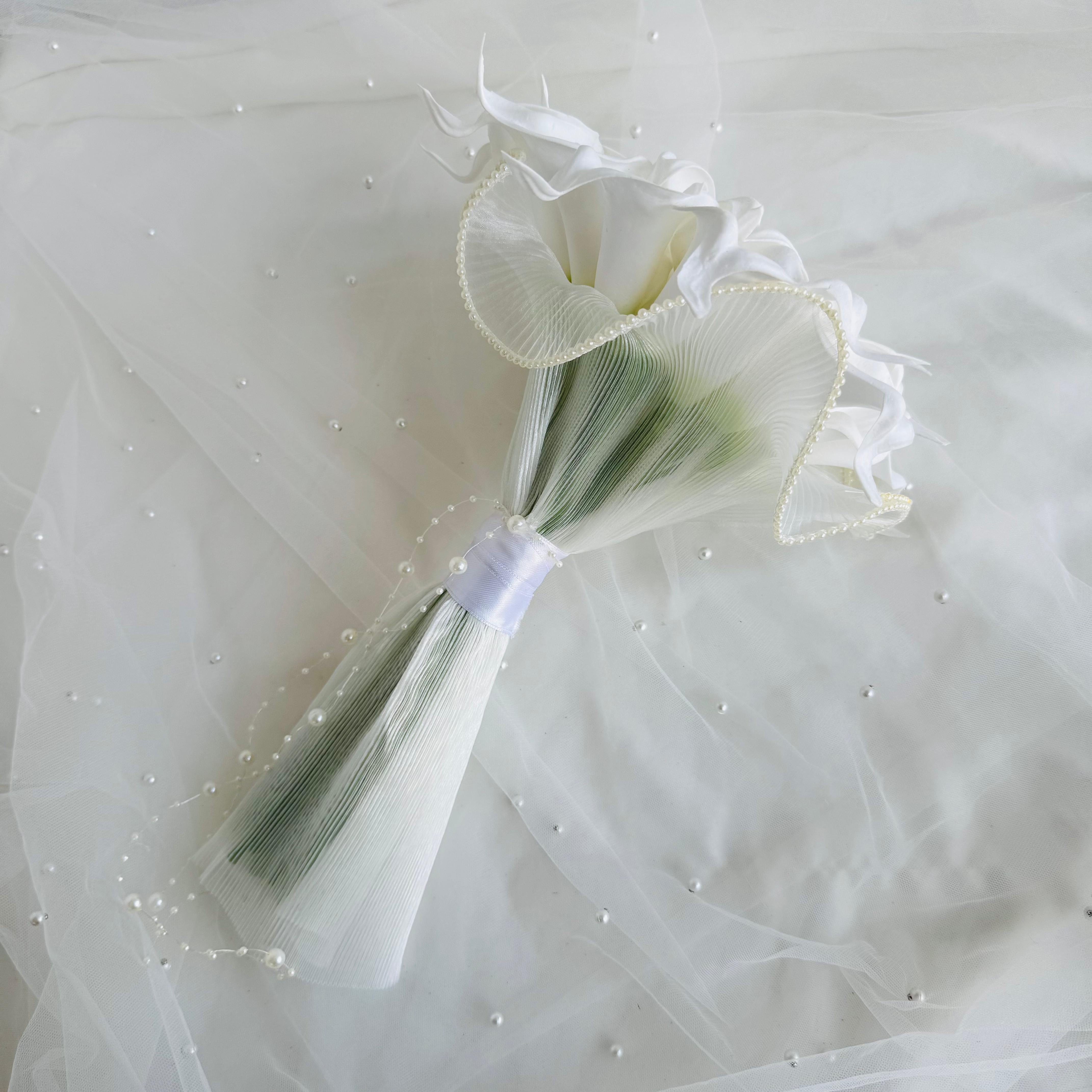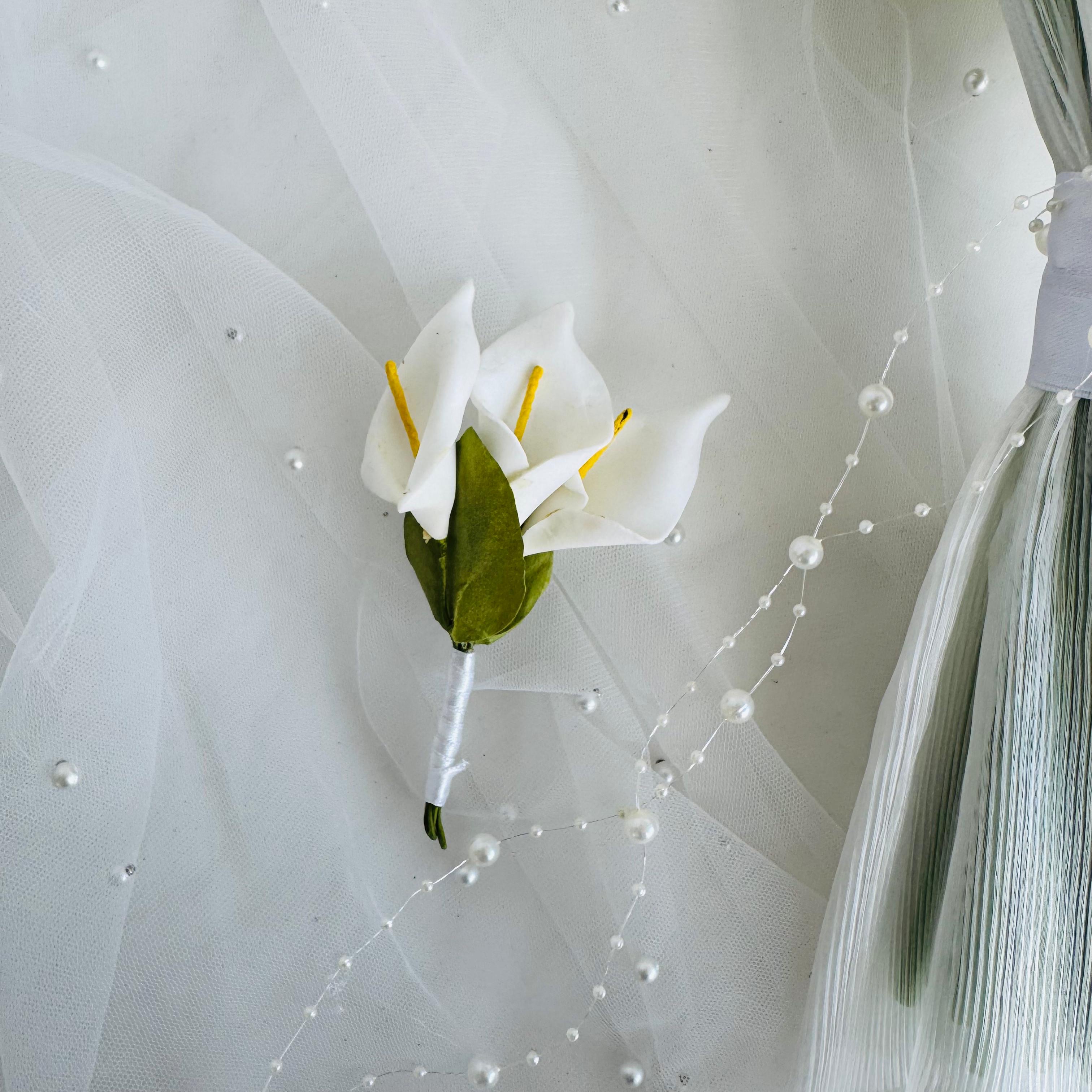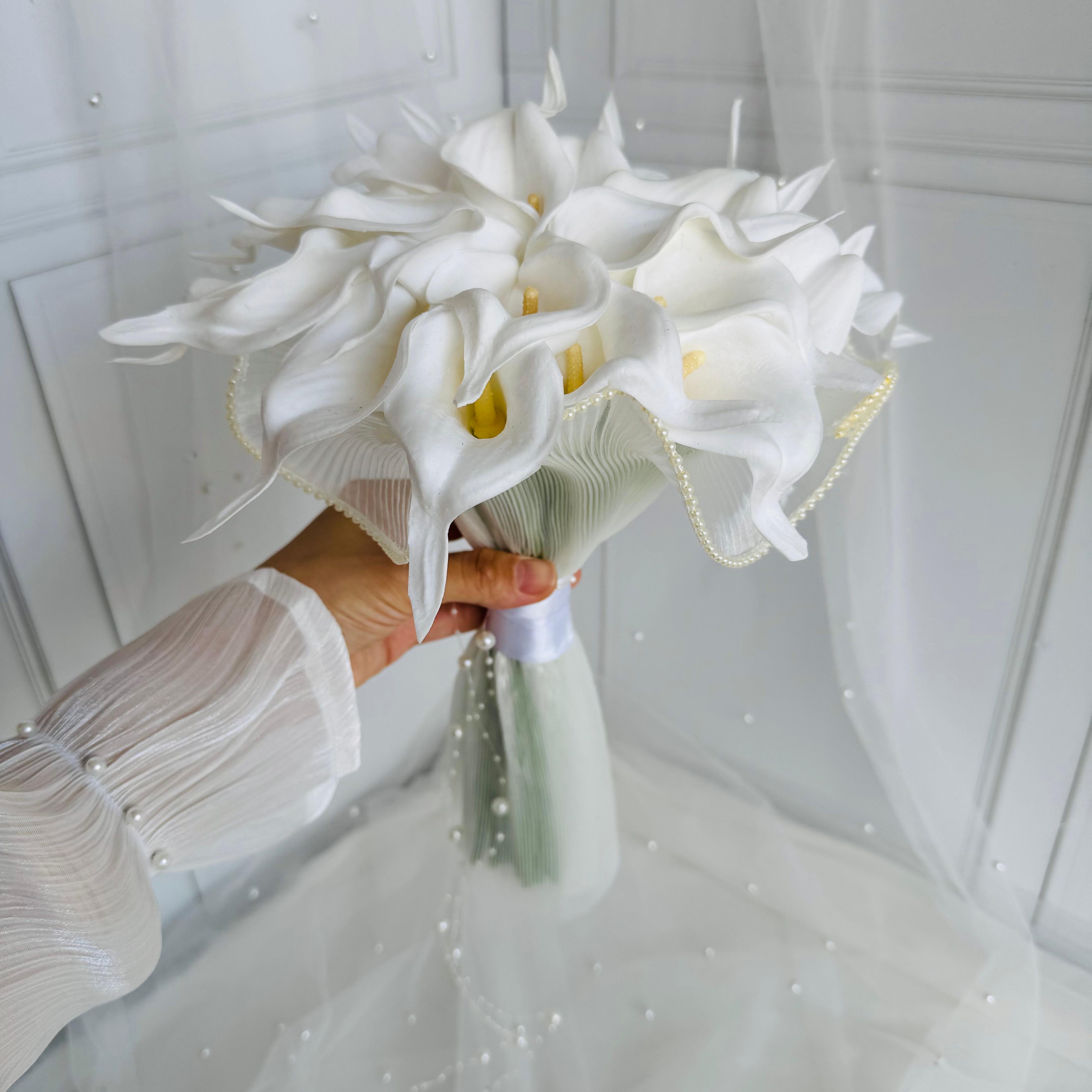 ✨Zarif beyaz galaların tül kaplama ile buluştuğu bu buket, saflığın ve şıklığın en zarif ifadesidir. Özel anlara sade ama etkileyici bir dokunuş katar.💫 24 adet yapay ıslak dokulu galadan oluşuyor. Orta boydur ne büyük ne de küçük. Yaka çiçeği hediyedir. Teslim süresi 15-20 iş günüdür; acil tarihler için not kısmına belirtmeniz yeterlidir. 💌Ürünlerimiz tamamen el yapımıdır; bu nedenle her buket ve süs benzersizdir. Çiçeklerin yerleşimi ve detayları ufak farklılıklar gösterebilir, bu da ürünlerimize özel bir karakter katar. 💐
