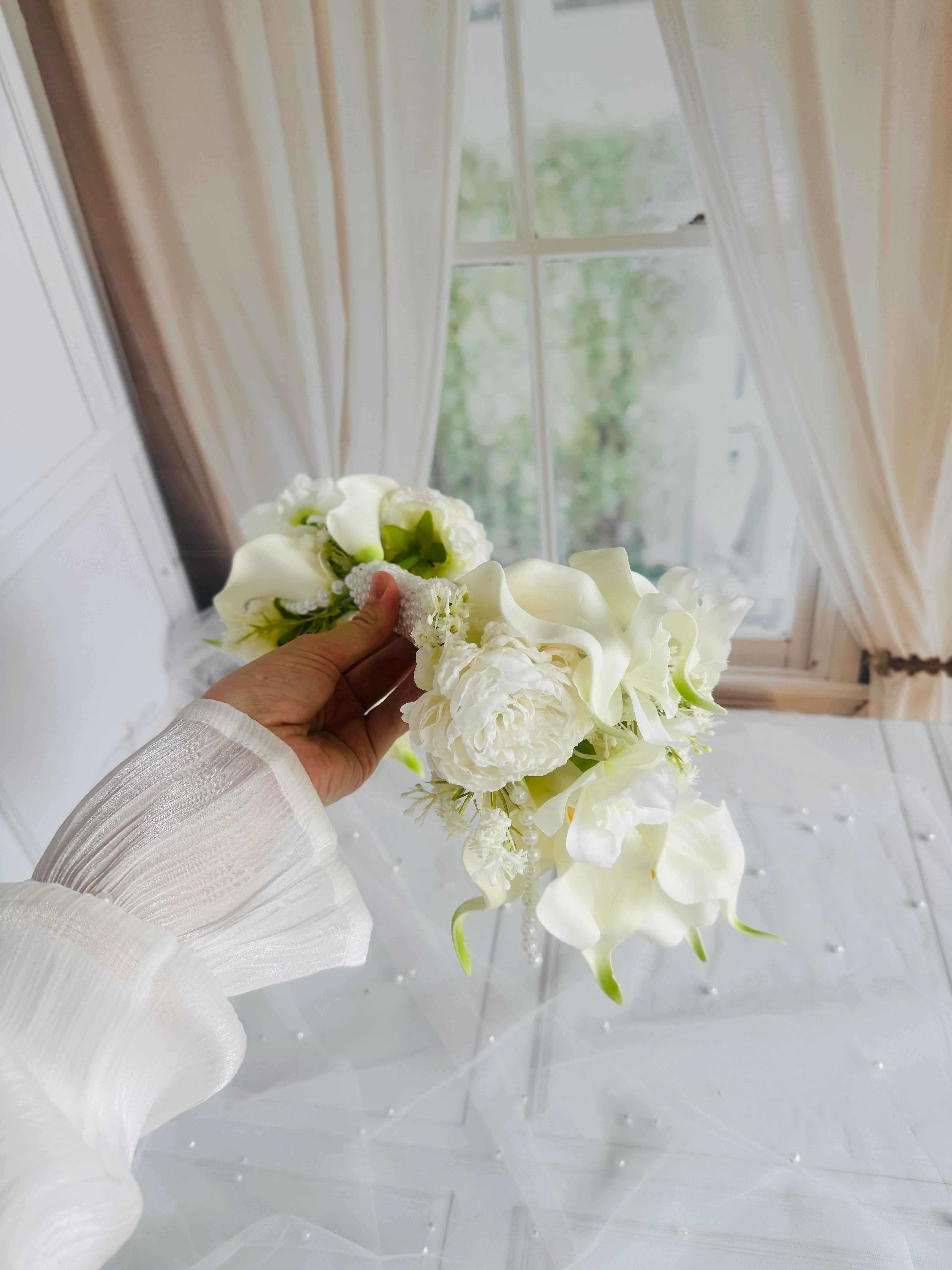 ?Her detayıyla bir sanat eseri… Bu özel tasarım gelin buketi, klasik formların ötesine geçerek modern zarafeti yeniden tanımlıyor. El işçiliğiyle hazırlanmış, gala dokunuşlarıyla zamansız bir şıklık sunar. Sıradan olmayan gelinler için tasarlandı. ? Yaka çiçeği hediyedir. Teslim süremiz 15-20 iş günüdür; acil tarihler için sipariş notuna tarih eklemeniz yeterlidir.? Ürünlerimiz tamamen el yapımıdır; bu nedenle her buket ve süs benzersizdir. Çiçeklerin yerleşimi ve detayları ufak farklılıklar gösterebilir, bu da ürünlerimize özel bir karakter katar. ?
