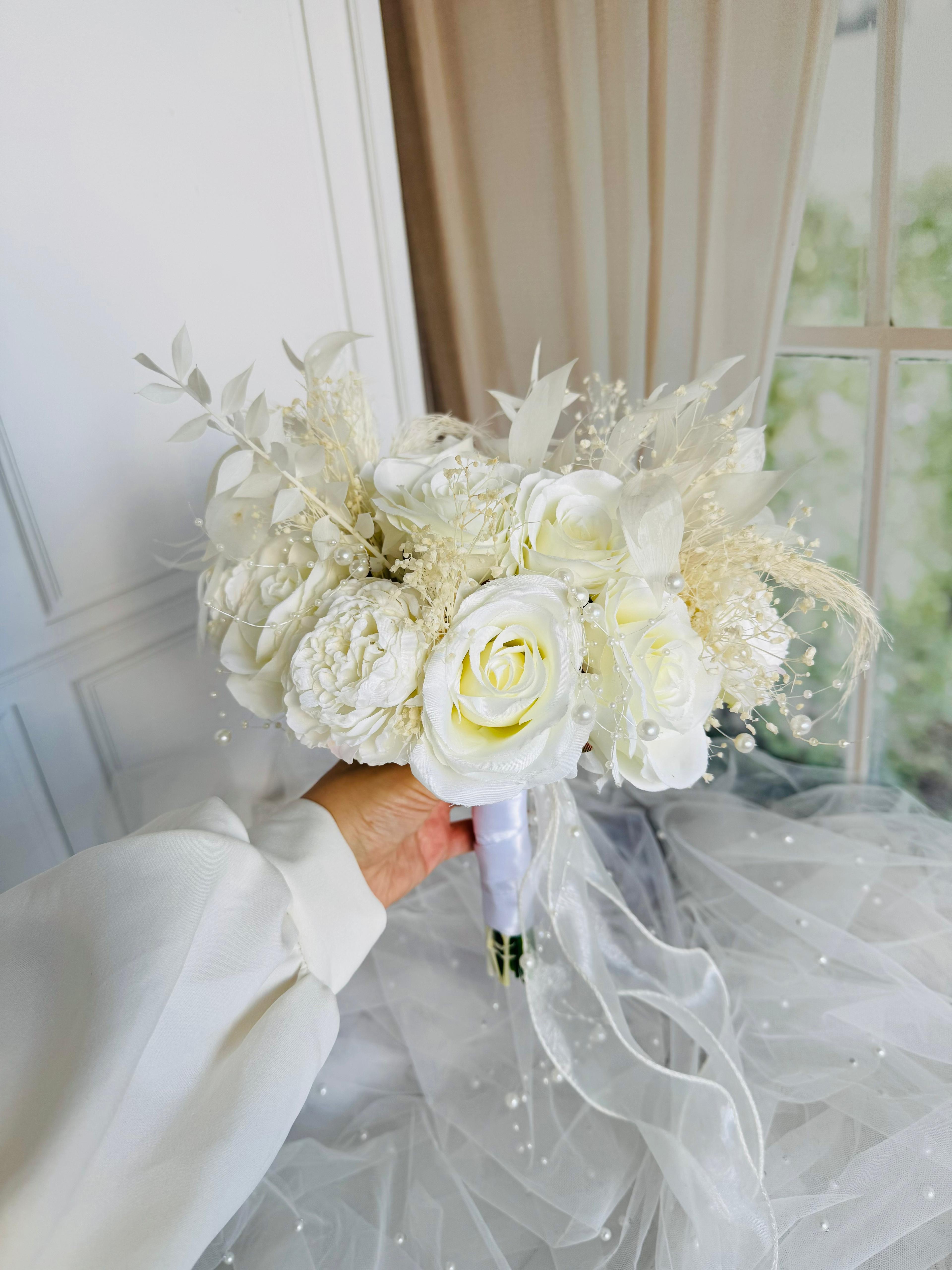 ✨Zarafeti ve asaletiyle öne çıkan bu buket, özel anlara doğal bir şıklık katar. Yumuşak dokusu ve etkileyici duruşuyla sevdiklerinize duygularınızı en saf haliyle iletmenizi sağlar.? Birinci sınıf kalitedeki kumaş ve şoklanmış çiçeklerden oluşuyor, ömürlüktür. Orta boydur ne büyük ne de küçük. Yaka çiçeği hediyedir. Teslim süresi 15-20 iş günüdür; acil tarihler için not kısmına belirtmeniz yeterlidir. ?Ürünlerimiz tamamen el yapımıdır; bu nedenle her buket ve süs benzersizdir. Çiçeklerin yerleşimi ve detayları ufak farklılıklar gösterebilir, bu da ürünlerimize özel bir karakter katar. ?