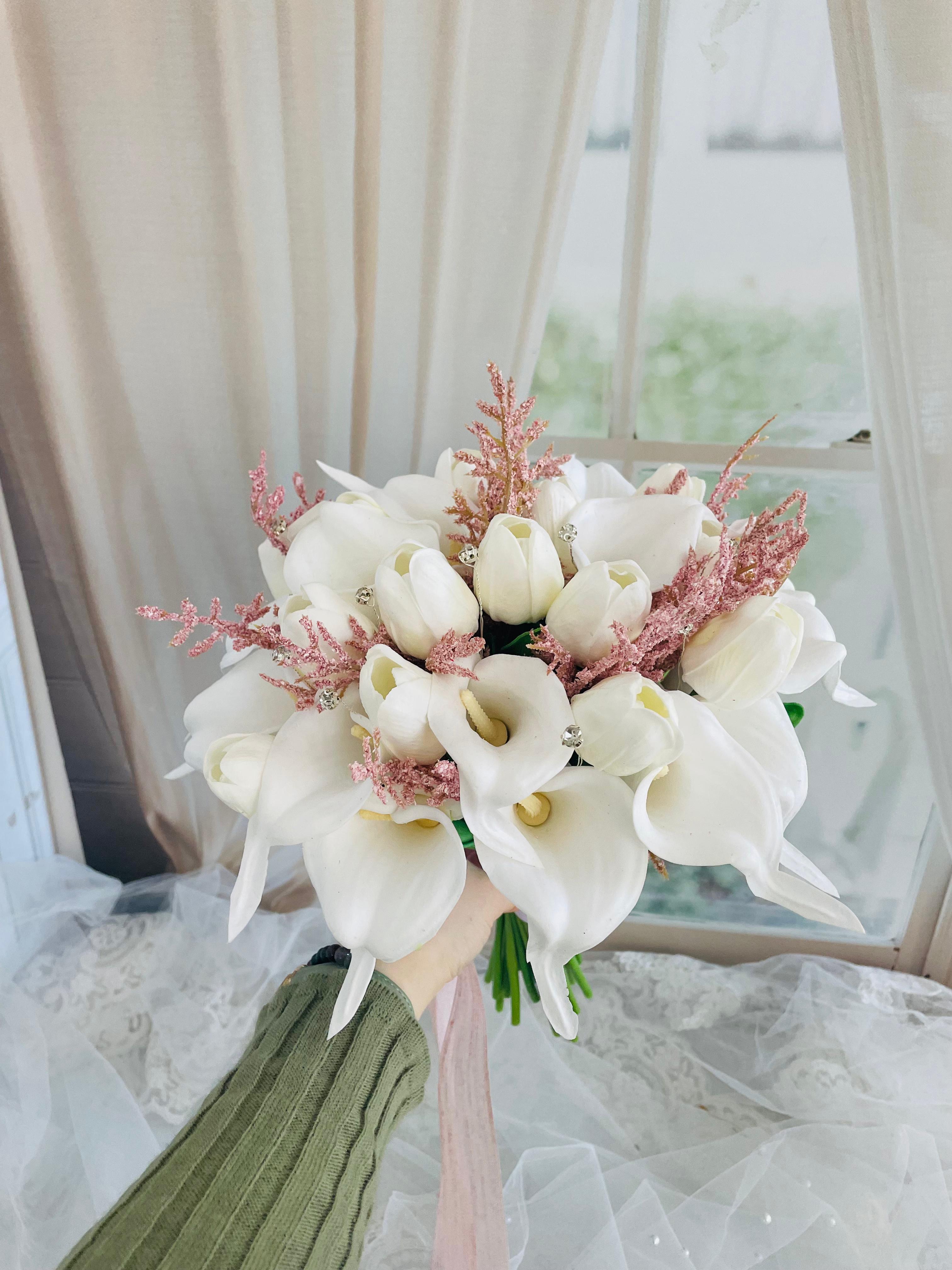 ?Sadelikten gelen ihtişamı taşıyan bu tasarım, her gelinin hayalini yansıtır. Orta boydur ne büyük ne de küçük. Yaka çiçeği hediyedir .? Teslim süresi 15-20 iş günüdür; acil tarihler için not kısmına belirtmeniz yeterlidir. Ürünlerimiz tamamen el yapımıdır; bu nedenle her buket ve süs benzersizdir. Çiçeklerin yerleşimi ve detayları ufak farklılıklar gösterebilir, bu da ürünlerimize özel bir karakter katar. ?