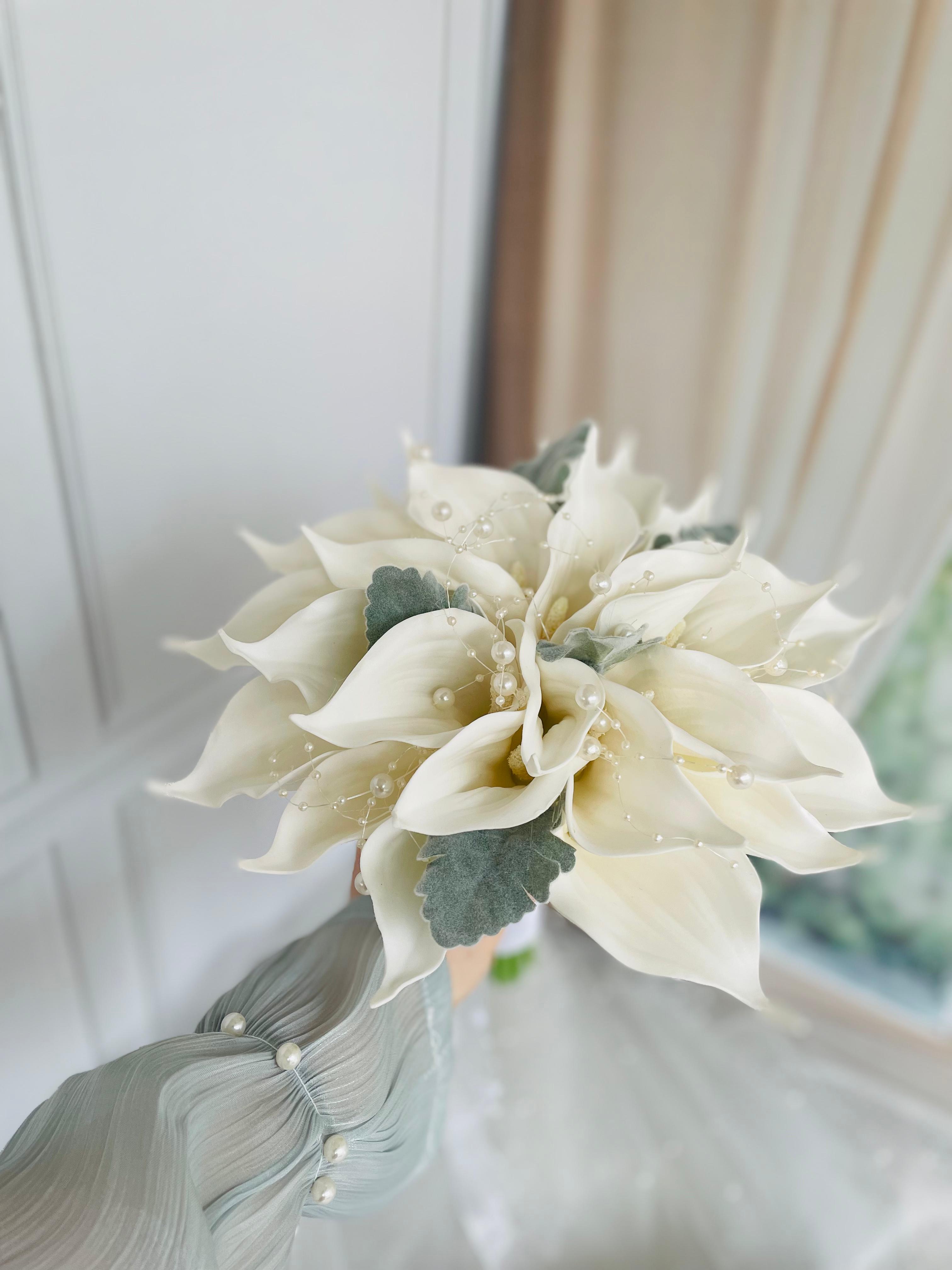 ?Gerçek çiçek görünümündeki birinci sınıf yapay ıslak dokulu çiçekler ile hazırlanmıştır. Zarif ve sade tasarımıyla her gelinliğe uyum sağlar. 24 adet yapay ıslak galadan oluşmaktadır . Orta boydur ne büyük ne de küçük . Yaka çiçeği hediyedir. Teslim süresi 15-20 iş günüdür; acil tarihler için not kısmına belirtmeniz yeterlidir.? Ürünlerimiz tamamen el yapımıdır; bu nedenle her buket ve süs benzersizdir. Çiçeklerin yerleşimi ve detayları ufak farklılıklar gösterebilir, bu da ürünlerimize özel bir karakter katar. ?