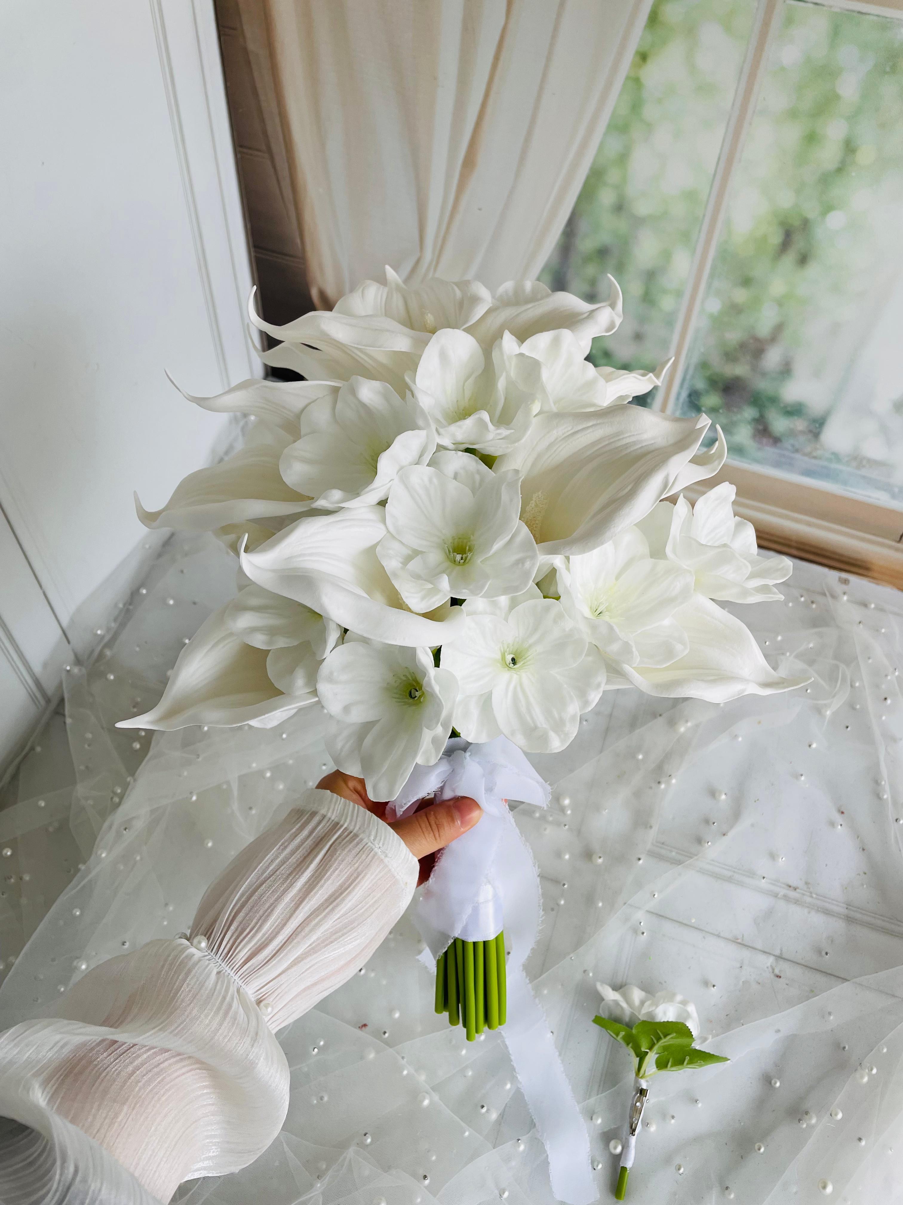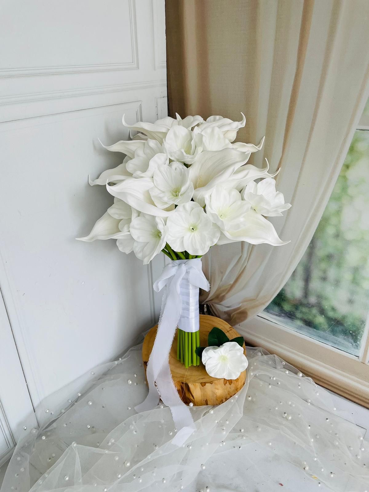 ?Sadelikten gelen ihtişamı taşıyan bu tasarım, her gelinin hayalini yansıtır. Birinci sınıf kalitedeki birebir canlı görünümündeki çiçeklerden oluşmaktadır. Orta boydur ne büyük ne de küçük. Yaka çiçeği hediyedir .? Teslim süresi 15-20 iş günüdür; acil tarihler için not kısmına belirtmeniz yeterlidir. Ürünlerimiz tamamen el yapımıdır; bu nedenle her buket ve süs benzersizdir. Çiçeklerin yerleşimi ve detayları ufak farklılıklar gösterebilir, bu da ürünlerimize özel bir karakter katar. ?