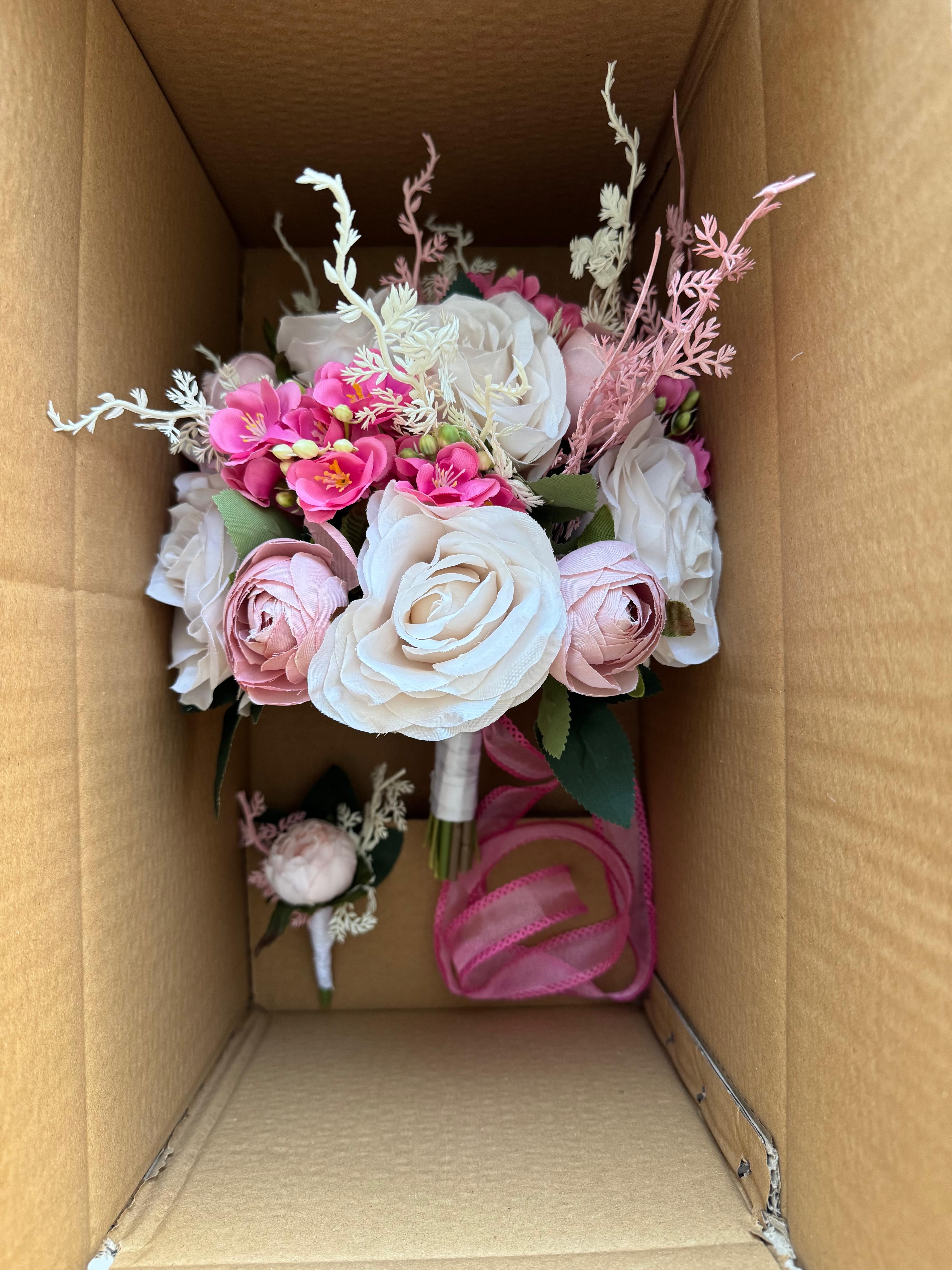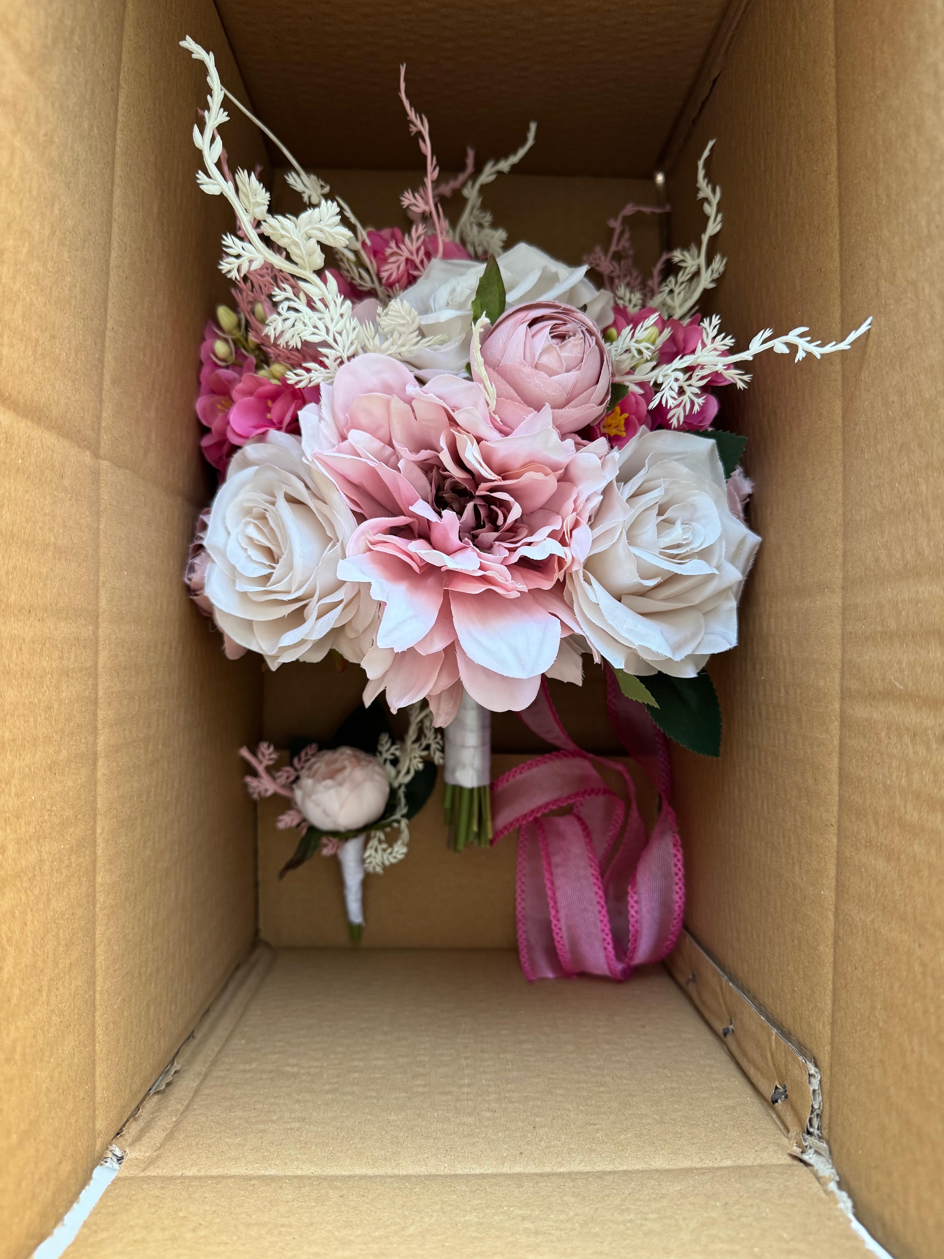 ?Gerçek çiçek görünümündeki birinci sınıf kumaş çiçekler ile hazırlanmıştır. Nişan ve düğün için uygundur . Orta boydur ne büyük ne de küçük . Yaka çiçeği hediyedir. Teslim süresi 15-20 iş günüdür; acil tarihler için not kısmına belirtmeniz yeterlidir.? ?Ürünlerimiz tamamen el yapımıdır; bu nedenle her buket ve süs benzersizdir. Çiçeklerin yerleşimi ve detayları ufak farklılıklar gösterebilir, bu da ürünlerimize özel bir karakter katar. ?