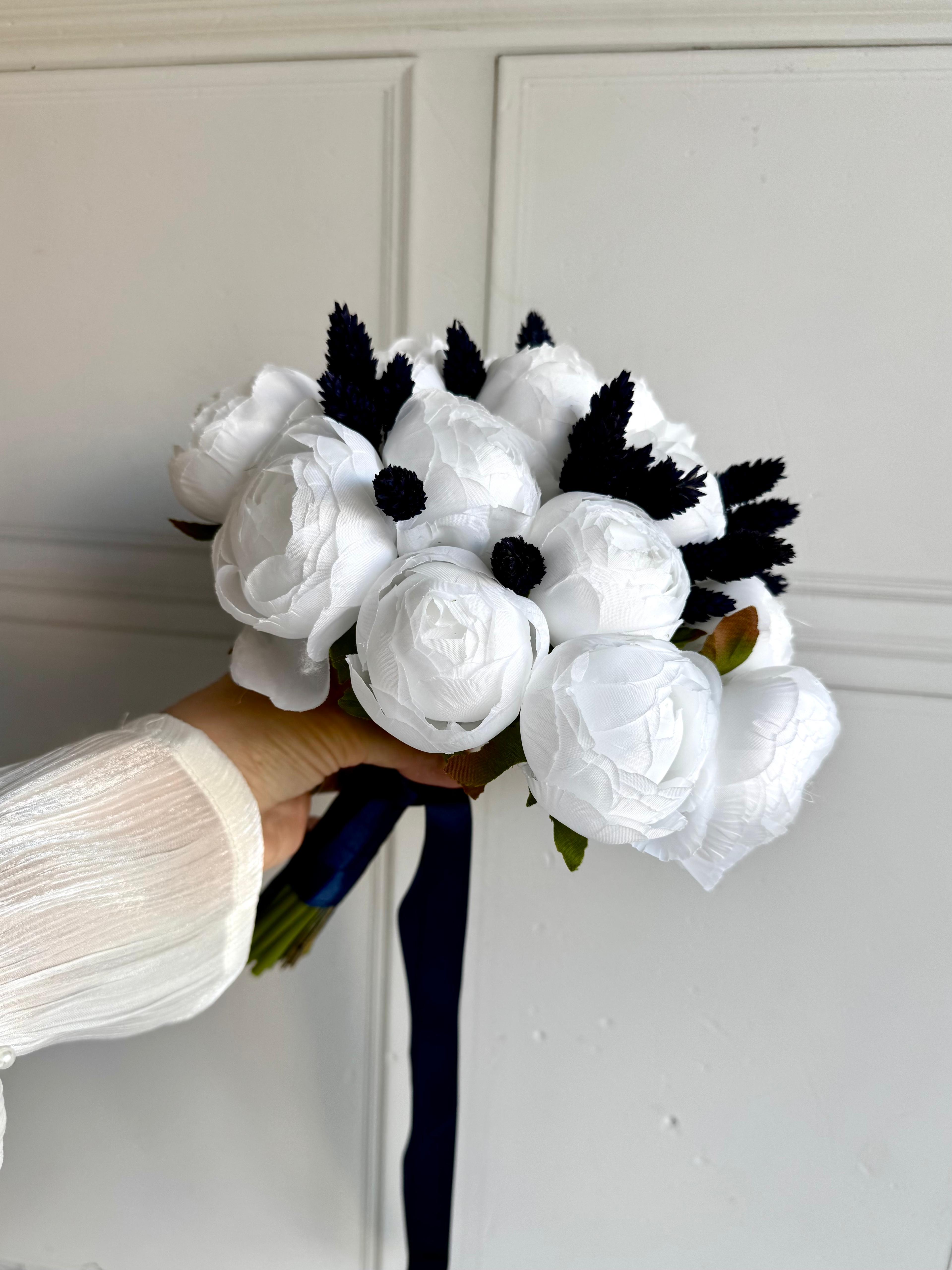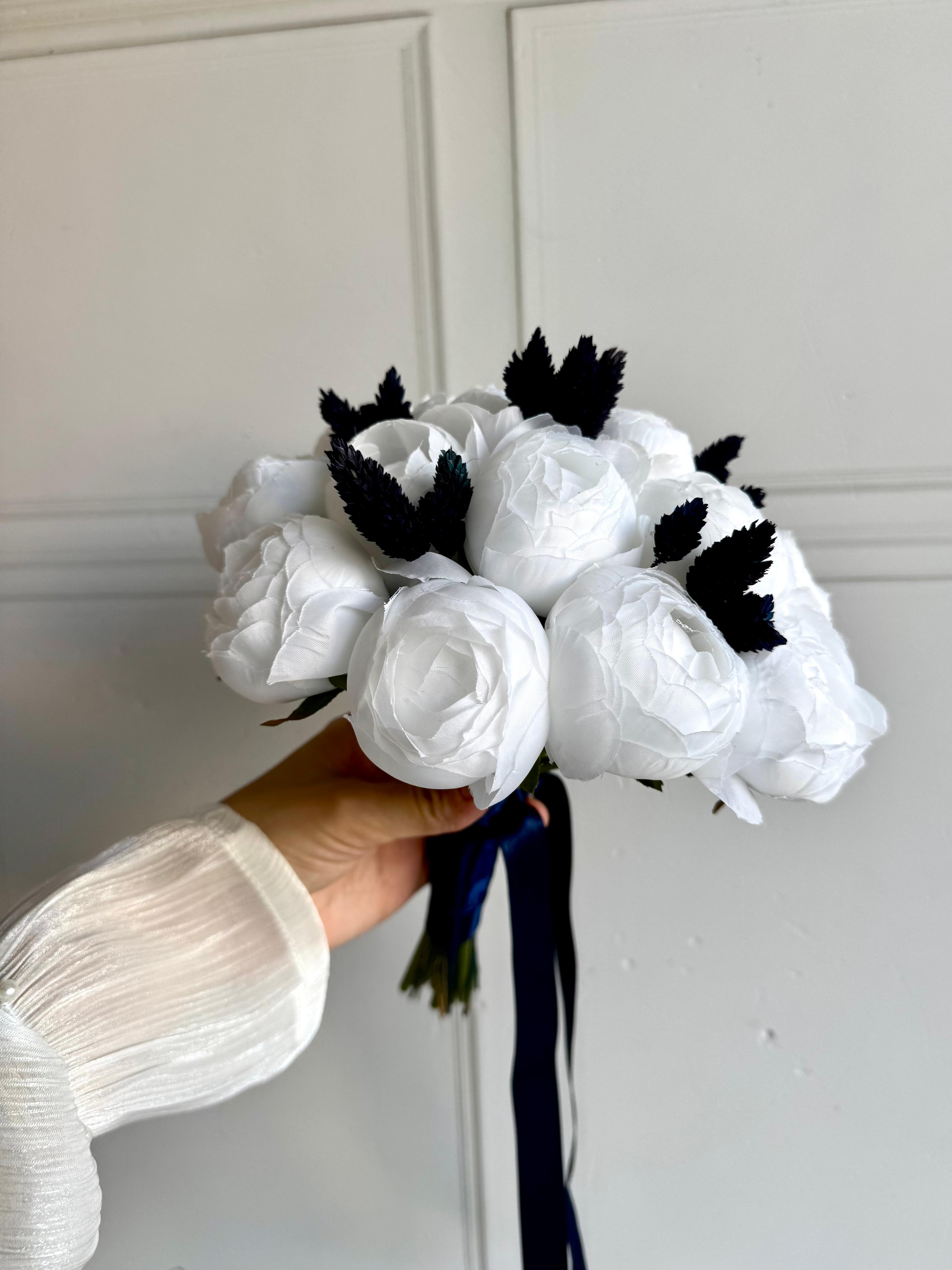 ?Lacivert cipsonun derin tonlarıyla beyaz şakayığın zarafetini buluşturan bu özel buket, modern ve göz alıcı bir görünüm arayanlar için ideal bir seçimdir. ?21 adet şakayıktan oluşuyor.Gerçek çiçek görünümündeki birinci sınıf kumaş çiçekler ile hazırlanmıştır. Nişan ve düğün için uygundur . Orta boydur ne büyük ne de küçük . Yaka çiçeği hediyedir. Teslim süresi 15-20 iş günüdür; acil tarihler için not kısmına belirtmeniz yeterlidir.? ?Ürünlerimiz tamamen el yapımıdır; bu nedenle her buket ve süs benzersizdir. Çiçeklerin yerleşimi ve detayları ufak farklılıklar gösterebilir, bu da ürünlerimize özel bir karakter katar. ?