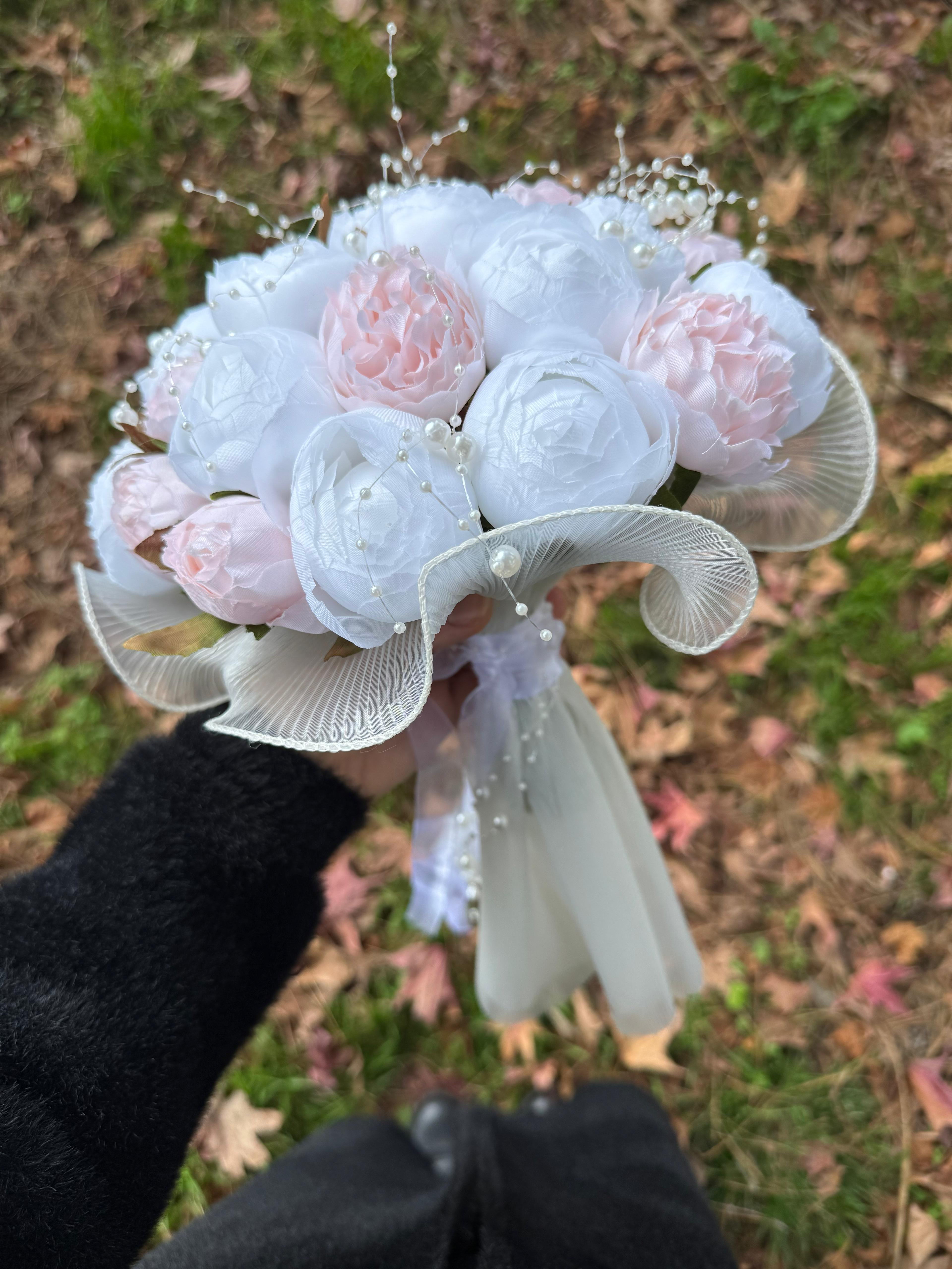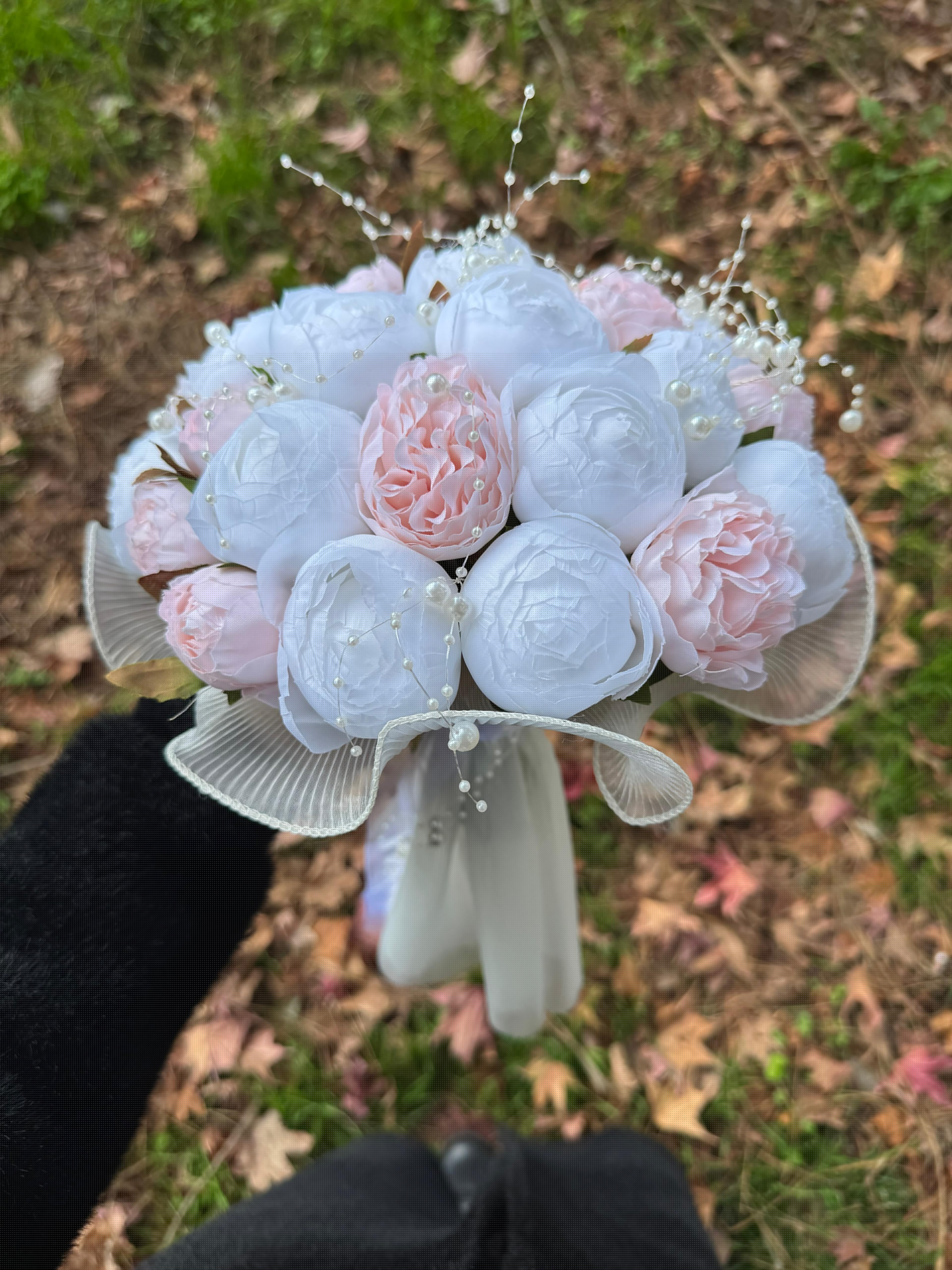 ✨Zarif ve şık tasarımıyla her gelinliğe uyum sağlar. Birinci sınıf kalitedeki kumaş ve yapay çiçeklerden oluşmaktadır, ömürlüktür. Orta boydur ne büyük ne de küçük. Yaka çiçeği hediyedir. Teslim süresi 15-20 iş günüdür; acil tarihler için not kısmına belirtmeniz yeterlidir. ?Ürünlerimiz tamamen el yapımıdır; bu nedenle her buket ve süs benzersizdir. Çiçeklerin yerleşimi ve detayları ufak farklılıklar gösterebilir, bu da ürünlerimize özel bir karakter katar. ?