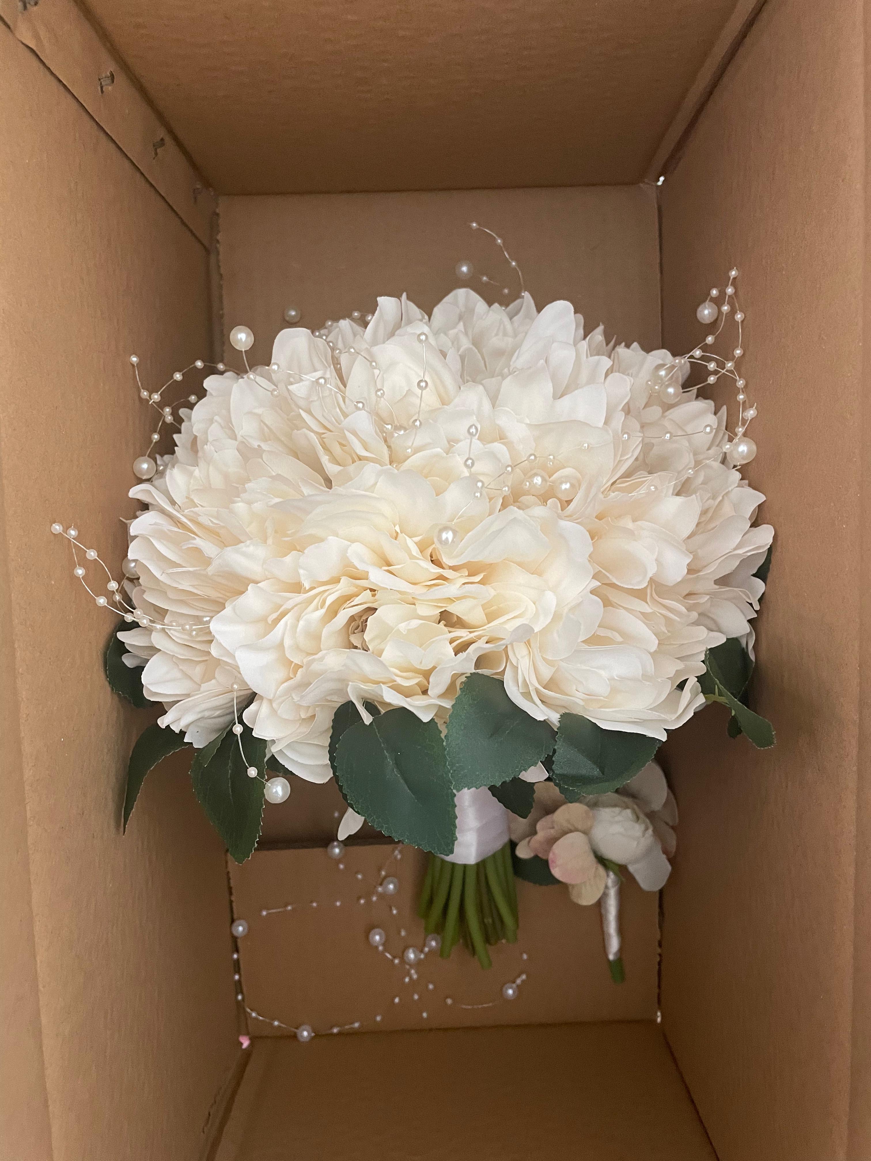 ✨Zarif ve şık tasarımıyla her gelinliğe uyum sağlar. Birinci sınıf kalitedeki kumaş ve yapay çiçeklerden oluşmaktadır, ömürlüktür. Orta boydur ne büyük ne de küçük. Yaka çiçeği hediyedir. Teslim süresi 15-20 iş günüdür; acil tarihler için not kısmına belirtmeniz yeterlidir. ?Ürünlerimiz tamamen el yapımıdır; bu nedenle her buket ve süs benzersizdir. Çiçeklerin yerleşimi ve detayları ufak farklılıklar gösterebilir, bu da ürünlerimize özel bir karakter katar. ?