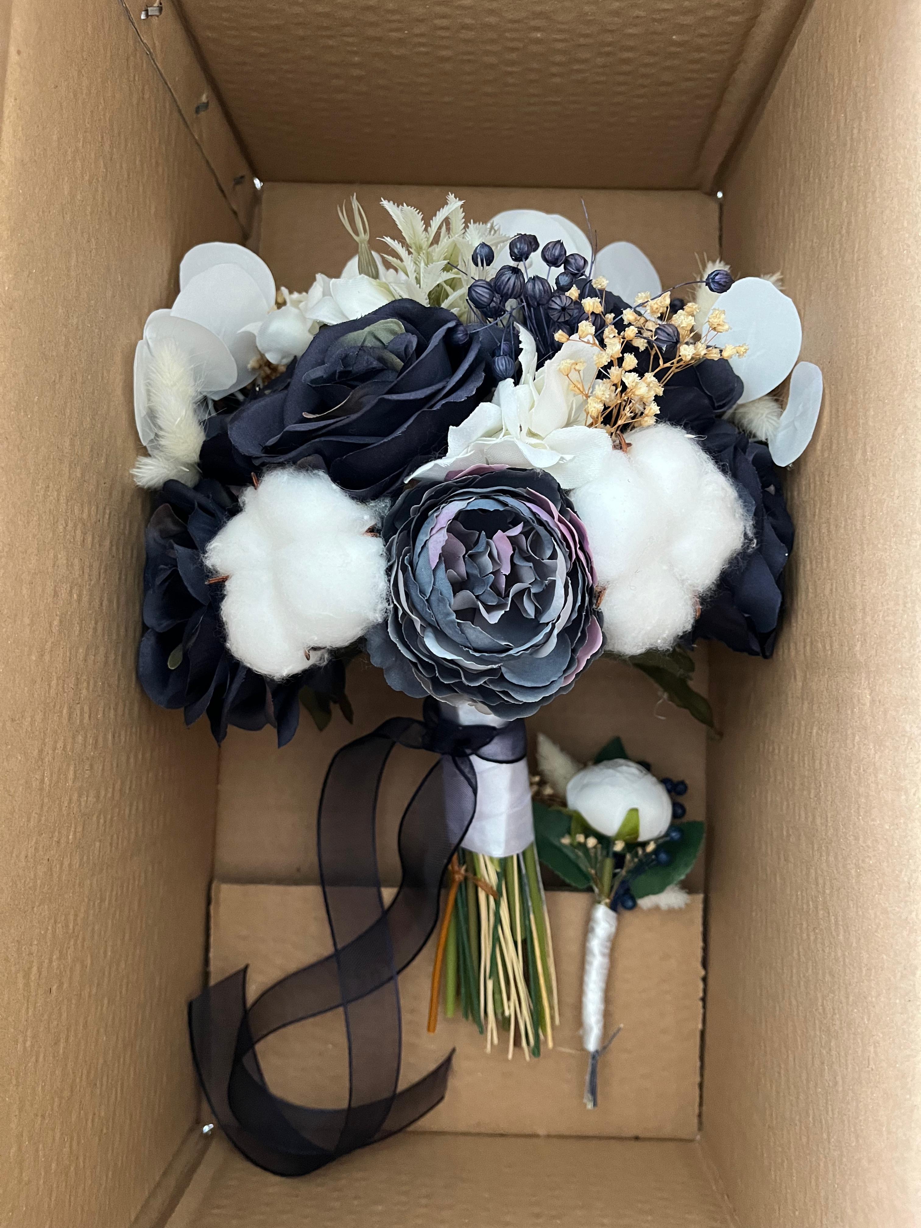 Siyahın asaletini beyazın saflığı ile buluşturan bu özel buket, modern ve iddialı bir duruş yaratır. Özel günlerinizde asil bir dokunuş katmak için hazırlandı. Düğün veya nişan için uygundur.? Orta boydur ne büyük ne de küçük . Yaka çiçeği hediyedir. Teslim süresi 15-20 iş günüdür; acil tarihler için not kısmına belirtmeniz yeterlidir.? Ürünlerimiz tamamen el yapımıdır; bu nedenle her buket ve süs benzersizdir. Çiçeklerin yerleşimi ve detayları ufak farklılıklar gösterebilir, bu da ürünlerimize özel bir karakter katar. ?