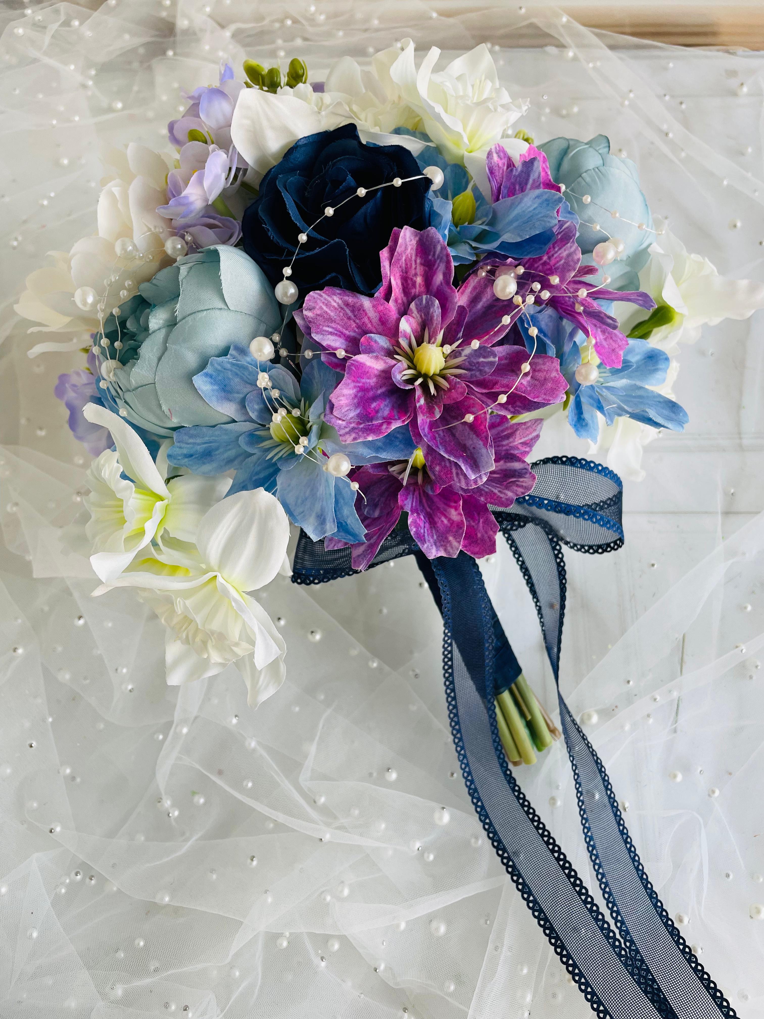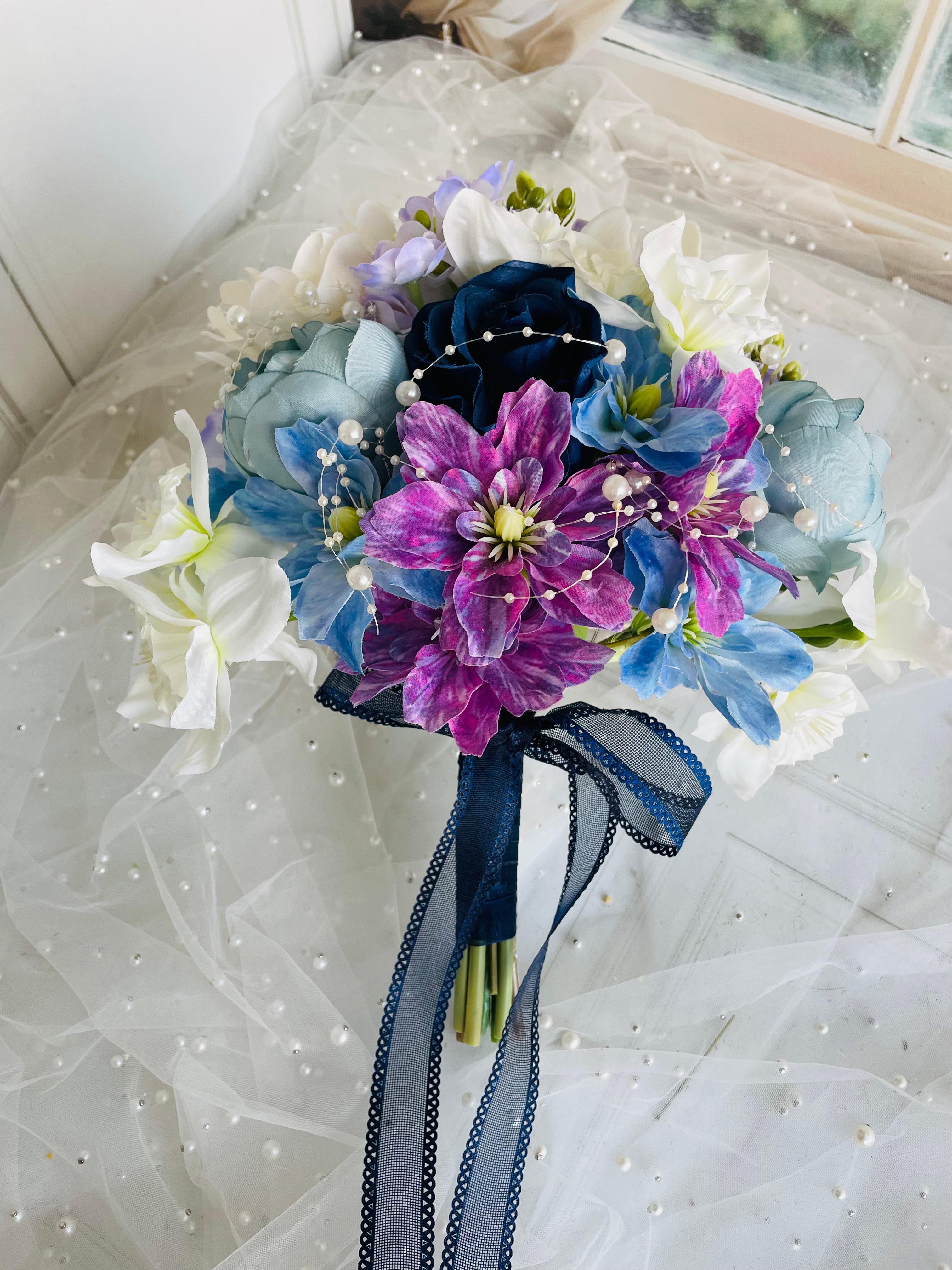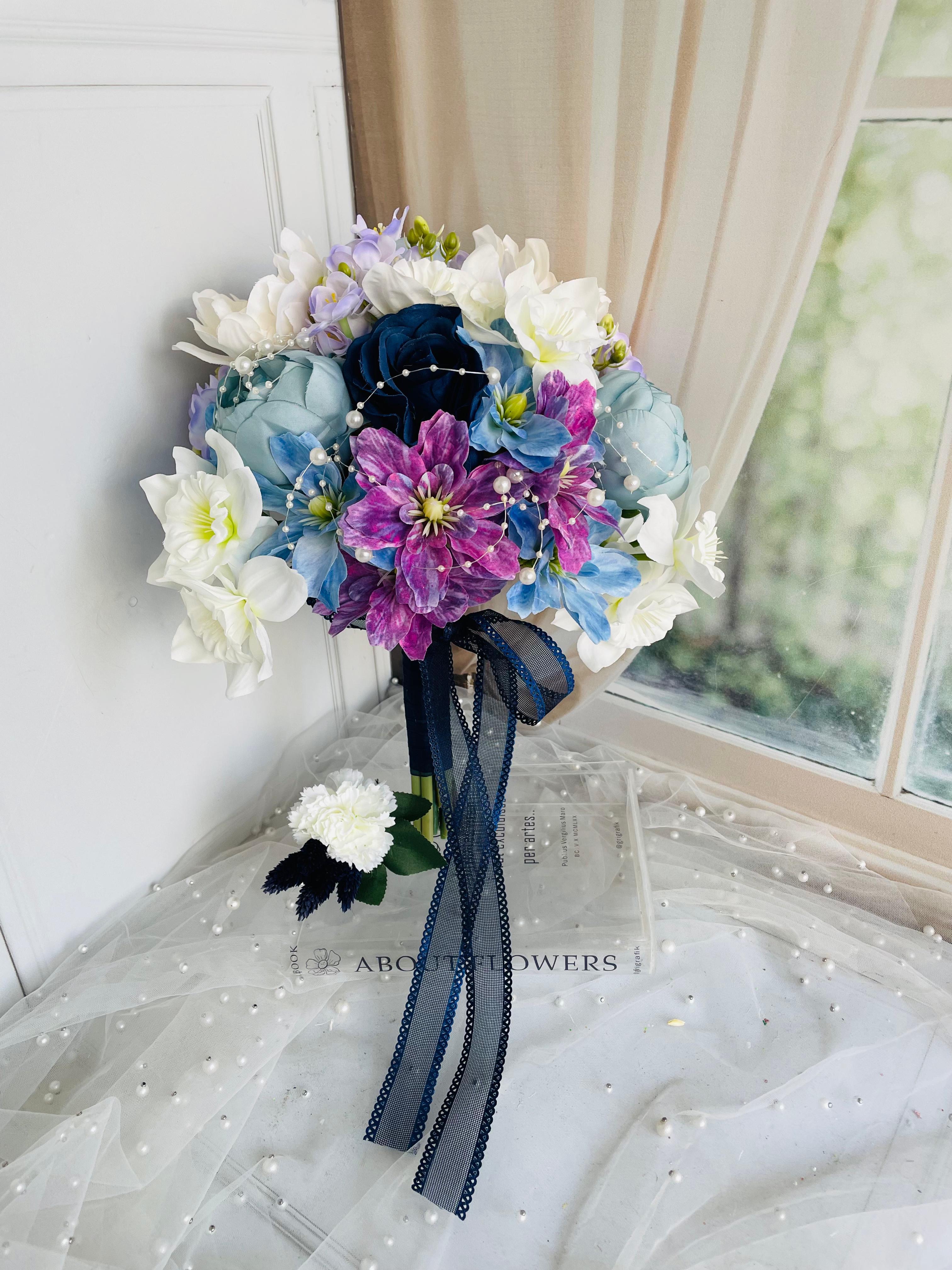 Mavinin huzuru, morun asaleti ve beyazın zarafetini bir arada sunan bu özel buket, her anınıza büyüleyici bir şıklık katmak için tasarlandı.? Düğün veya nişan için uygundur. Orta boydur ne büyük ne de küçük. Yaka çiçeği hediyedir. Teslim süresi 15-20 iş günüdür; acil tarihler için not kısmına belirtmeniz yeterlidir. ?Ürünlerimiz tamamen el yapımıdır; bu nedenle her buket ve süs benzersizdir. Çiçeklerin yerleşimi ve detayları ufak farklılıklar gösterebilir, bu da ürünlerimize özel bir karakter katar. ?