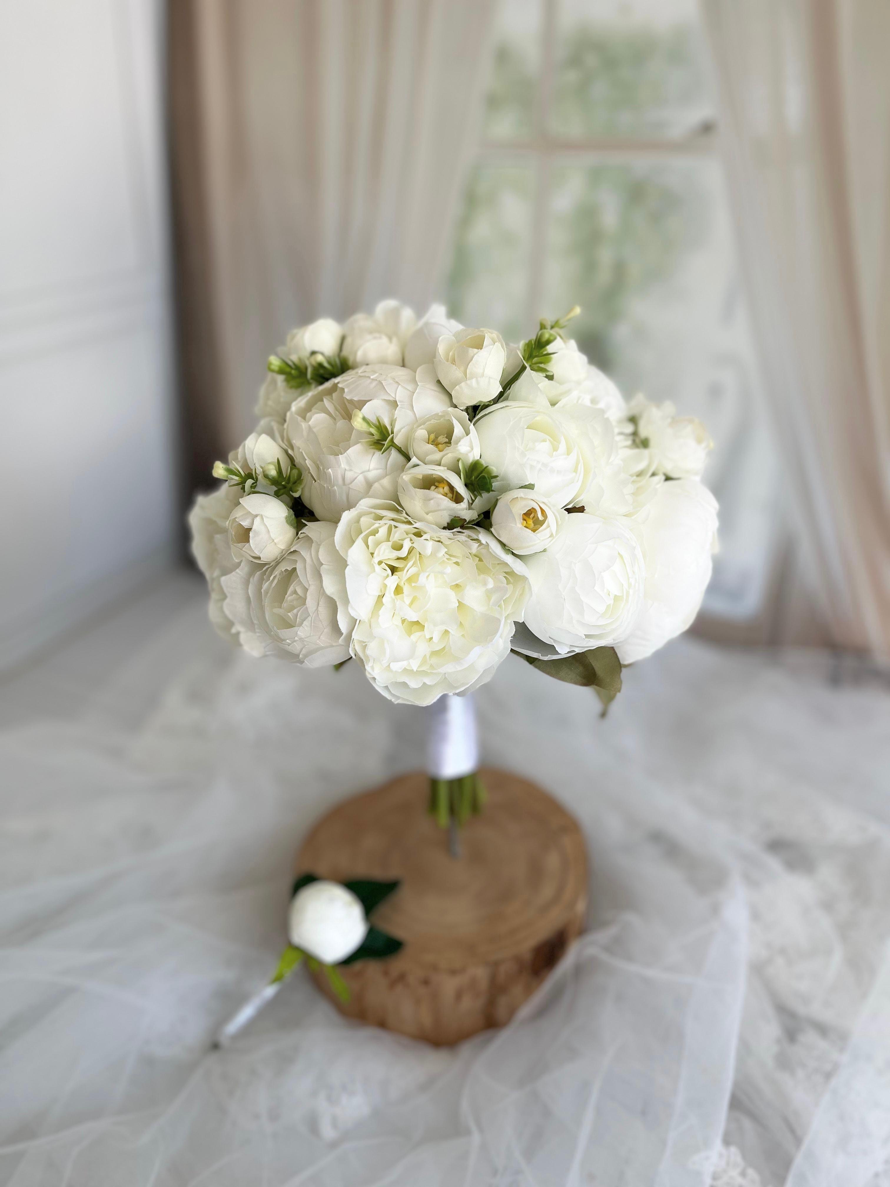 ✨Zarif ve şık tasarımıyla her gelinliğe uyum sağlar. Birinci sınıf kalitedeki kumaş ve yapay çiçeklerden oluşmaktadır, ömürlüktür. Orta boydur ne büyük ne de küçük. Yaka çiçeği hediyedir. Teslim süresi 15-20 iş günüdür; acil tarihler için not kısmına belirtmeniz yeterlidir. ?Ürünlerimiz tamamen el yapımıdır; bu nedenle her buket ve süs benzersizdir. Çiçeklerin yerleşimi ve detayları ufak farklılıklar gösterebilir, bu da ürünlerimize özel bir karakter katar. ?