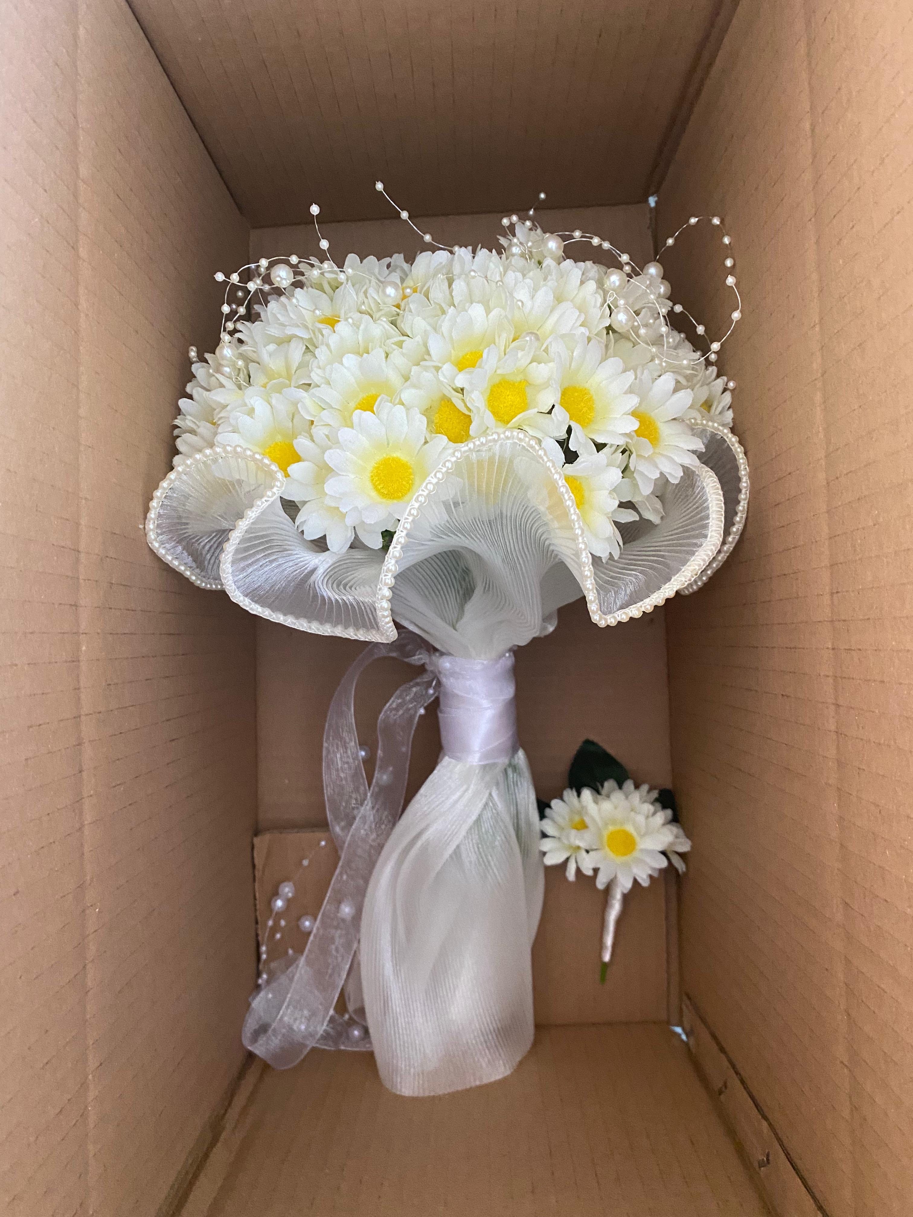?Bembeyaz papatyaların nahif güzelliği ile hazırlanan bu buket, masumiyetin ve içtenliğin en zarif ifadesi.. her bakışta huzur veren kalbe dokunan bir tasarım. Orta boydur ne büyük ne de küçük . Yaka çiçeği hediyedir. Teslim süresi 15-20 iş günüdür; acil tarihler için not kısmına belirtmeniz yeterlidir.? Ürünlerimiz tamamen el yapımıdır; bu nedenle her buket ve süs benzersizdir. Çiçeklerin yerleşimi ve detayları ufak farklılıklar gösterebilir, bu da ürünlerimize özel bir karakter katar. ?