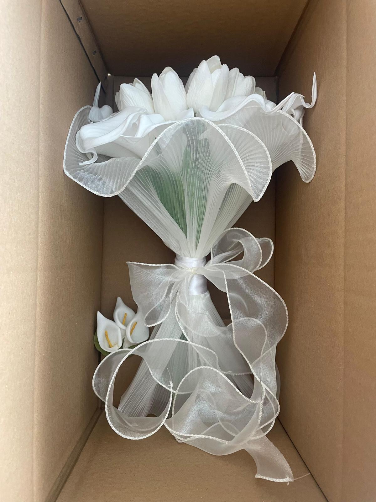 Şıklığı minimal dokunuşlarla taşıyan gelinler için tasarlandı. Tül kaplaması ve yumuşak tonlarıyla düğününüzde göz alıcı bir duruş sunar.? Orta boydur ne büyük ne de küçük. Yaka çiçeği hediyedir. Teslim süresi 15-20 iş günüdür; acil tarihler için not kısmına belirtmeniz yeterlidir.? Ürünlerimiz tamamen el yapımıdır; bu nedenle her buket ve süs benzersizdir. Çiçeklerin yerleşimi ve detayları ufak farklılıklar gösterebilir, bu da ürünlerimize özel bir karakter katar. ?