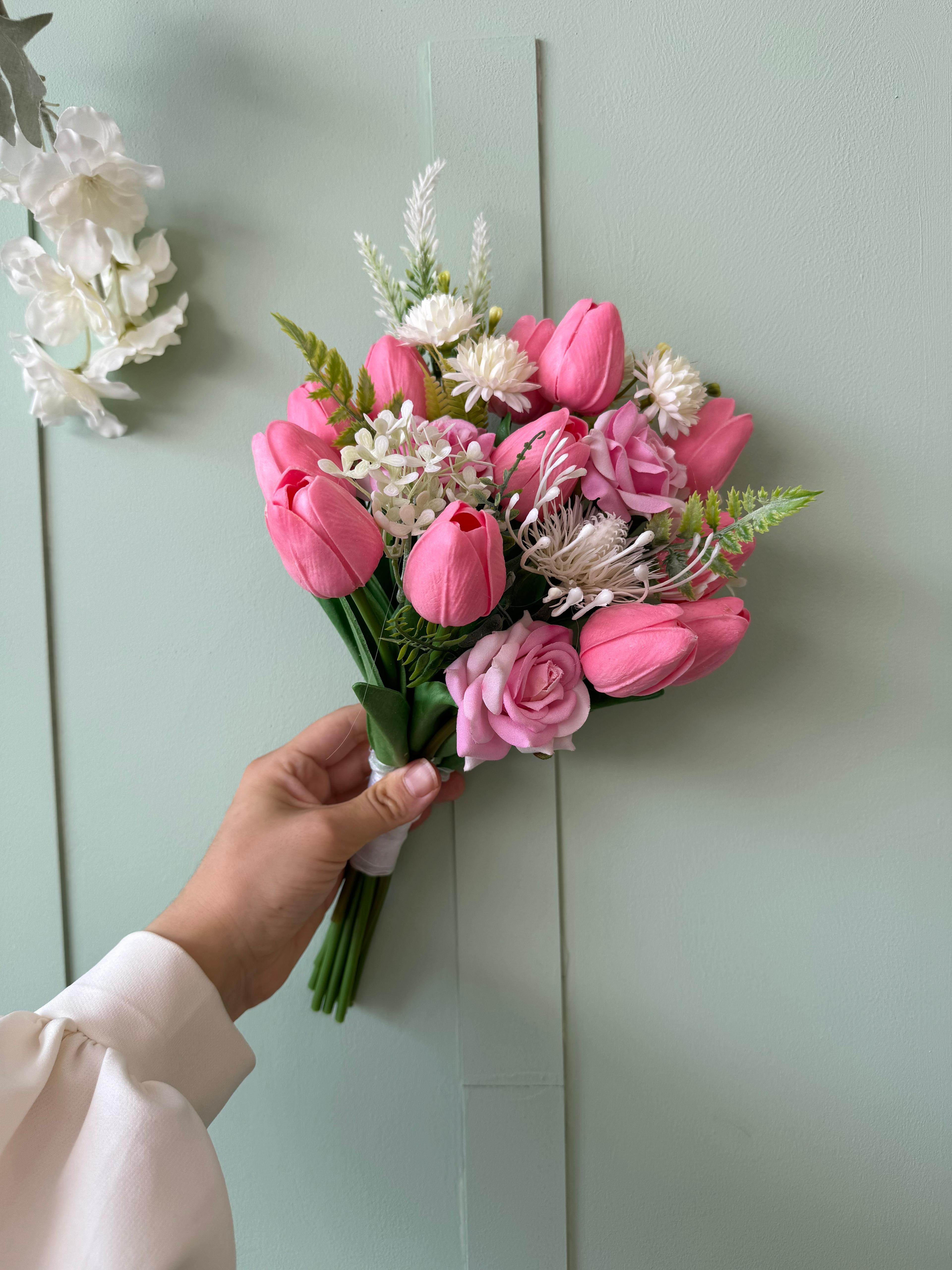 Pembe lalelerin masum ışıltısından ilham alan bu buket, şıklığın en zarif halini sunuyor. İnceliği ve duruluğu ile özel anlarınıza ışıltı katmak için özenle hazırlandı.? 24 adet ıslak dokulu laleden oluşuyor.? Teslim süresi 15-20 iş günüdür; acil tarihler için not kısmına belirtmeniz yeterlidir. ?Ürünlerimiz tamamen el yapımıdır; bu nedenle her buket ve süs benzersizdir. Çiçeklerin yerleşimi ve detayları ufak farklılıklar gösterebilir, bu da ürünlerimize özel bir karakter katar. ?