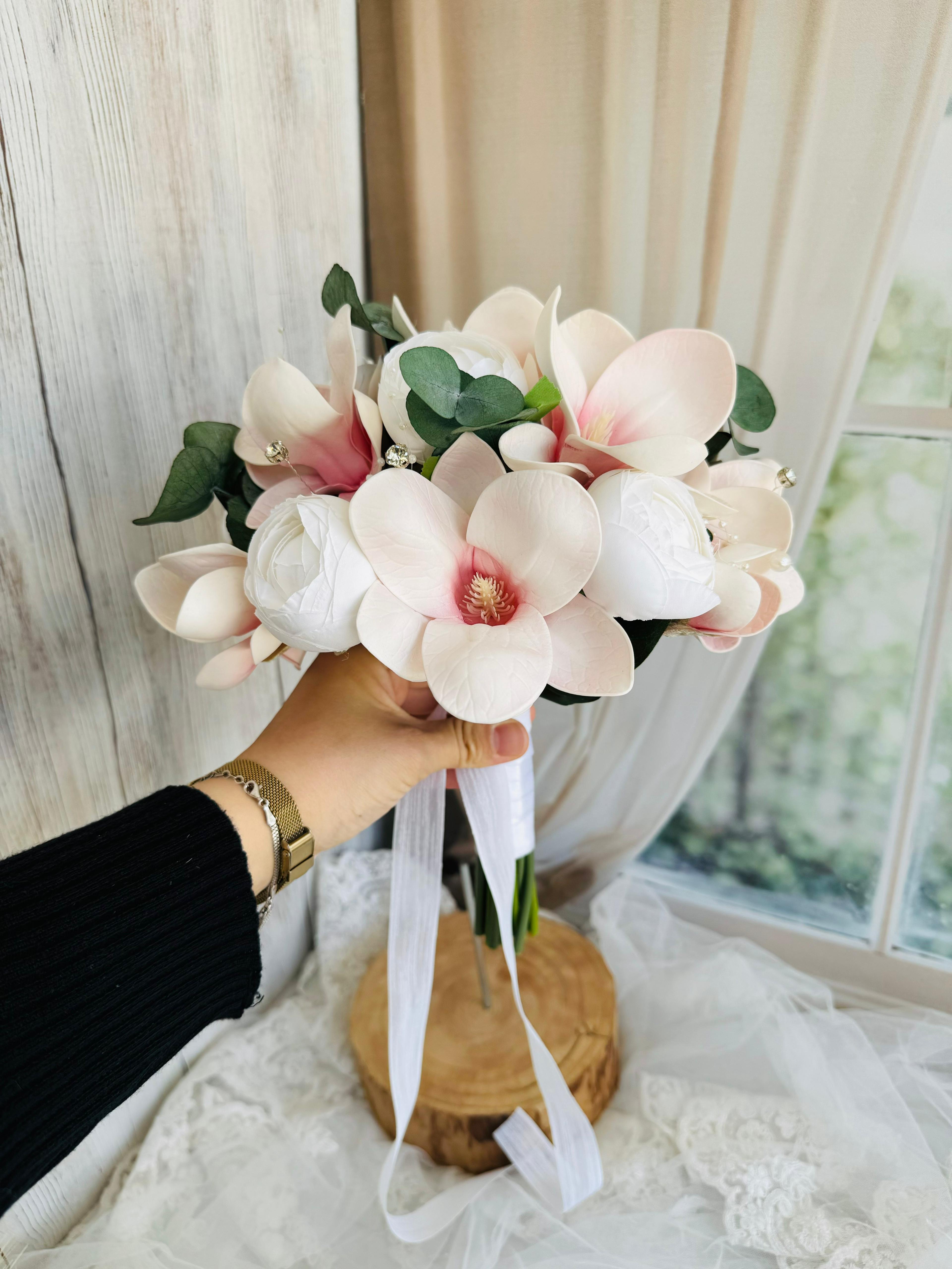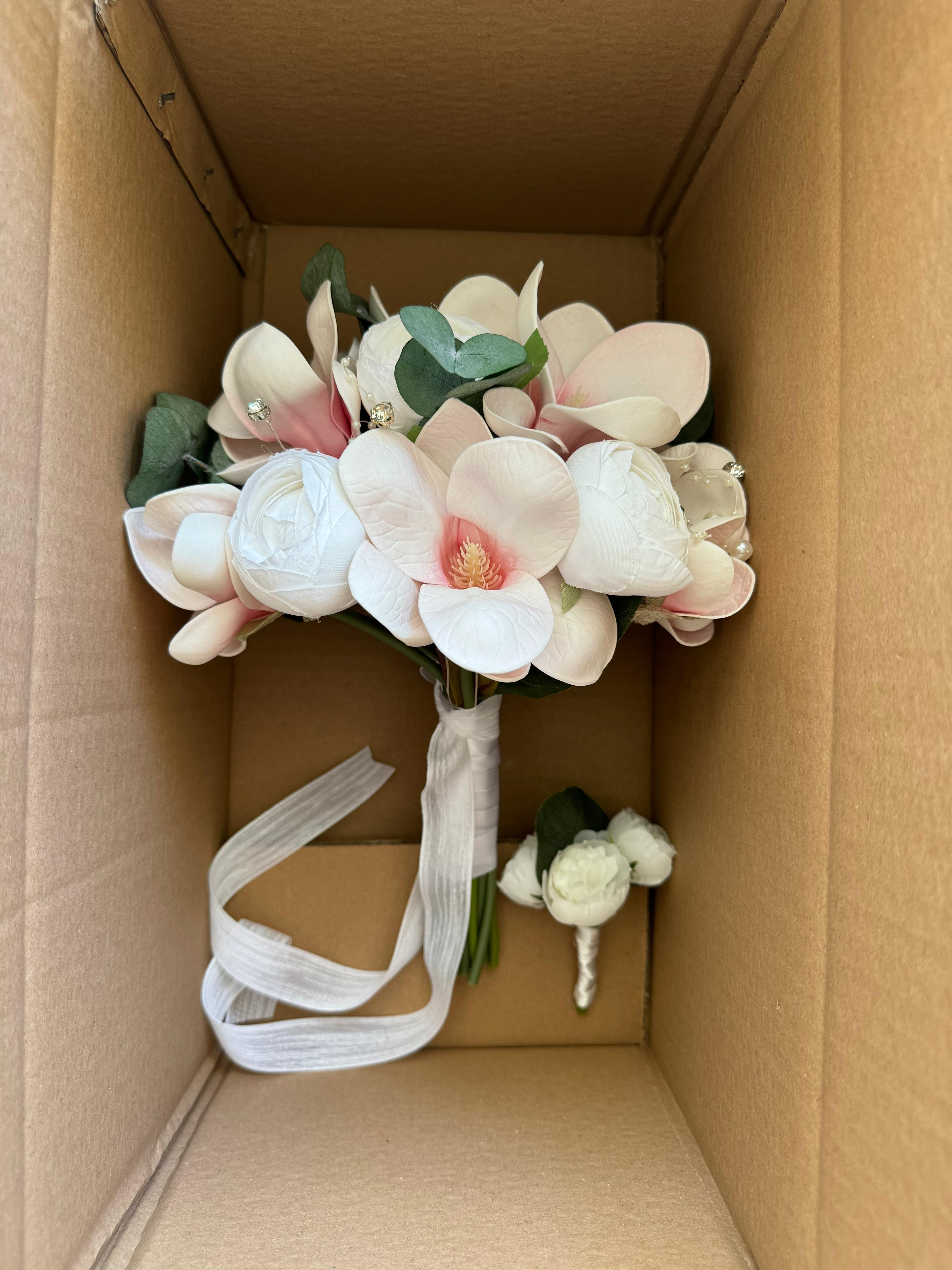 ✨Pembe manolyanın sıcak tonu, soft beyaz şakayıkların zarafetiyle birleşerek modern ve romantik bir görünüm oluşturur . Düğün veya nişan için uygundur. Birinci sınıf kalitedeki kumaş ve yapay çiçeklerden oluşmaktadır, ömürlüktür. Orta boydur ne büyük ne de küçük. Yaka çiçeği hediyedir. Teslim süresi 15-20 iş günüdür; acil tarihler için not kısmına belirtmeniz yeterlidir. ?Ürünlerimiz tamamen el yapımıdır; bu nedenle her buket ve süs benzersizdir. Çiçeklerin yerleşimi ve detayları ufak farklılıklar gösterebilir, bu da ürünlerimize özel bir karakter katar. ?
