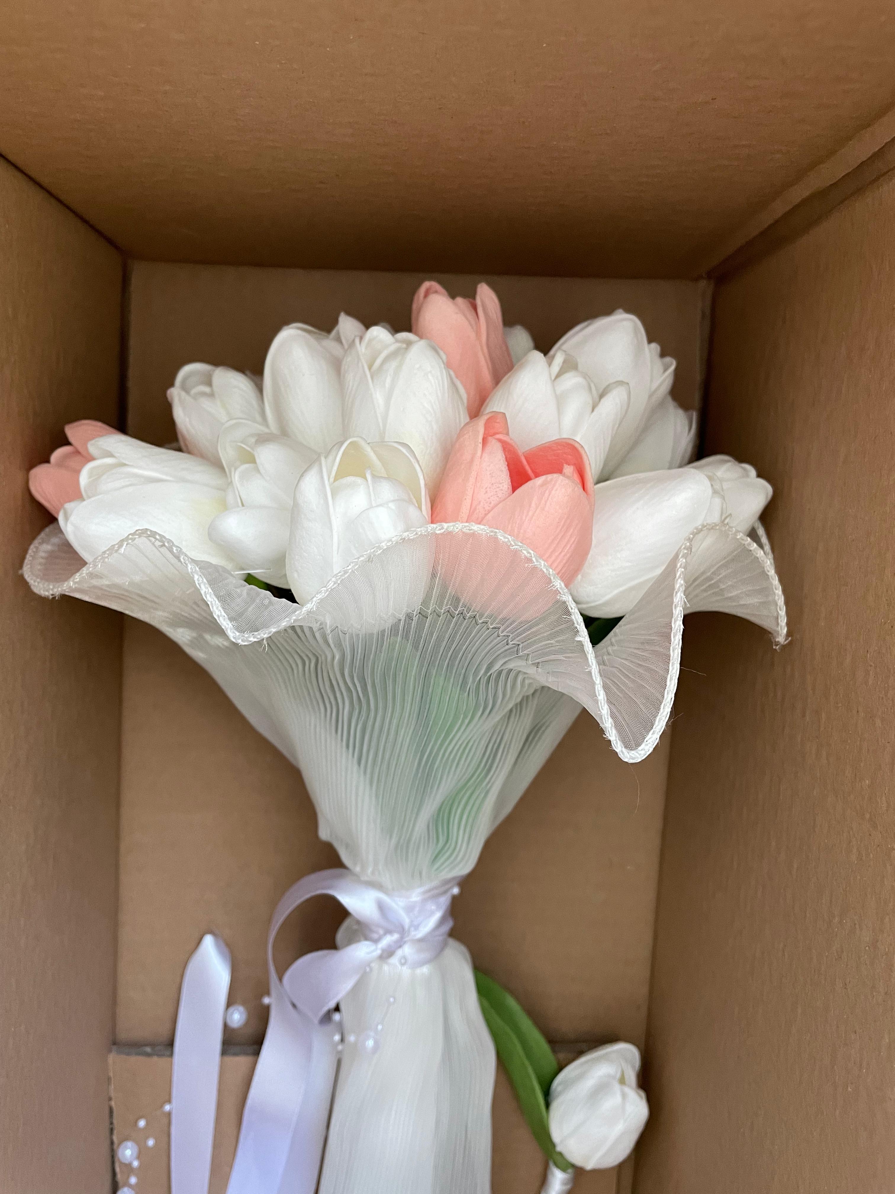 ?Minimal ama etkileyici… Bu lale buketi, ince düşüncenizi en şık şekilde yansıtır. Özel günler veya küçük mutluluklar için mükemmel bir tercih.✨ 24 adet ıslak laleden oluşuyor. Orta boydur ne büyük ne de küçük. Yaka çiçeği hediyedir .? Teslim süresi 15-20 iş günüdür; acil tarihler için not kısmına belirtmeniz yeterlidir. Ürünlerimiz tamamen el yapımıdır; bu nedenle her buket ve süs benzersizdir. Çiçeklerin yerleşimi ve detayları ufak farklılıklar gösterebilir, bu da ürünlerimize özel bir karakter katar. ?