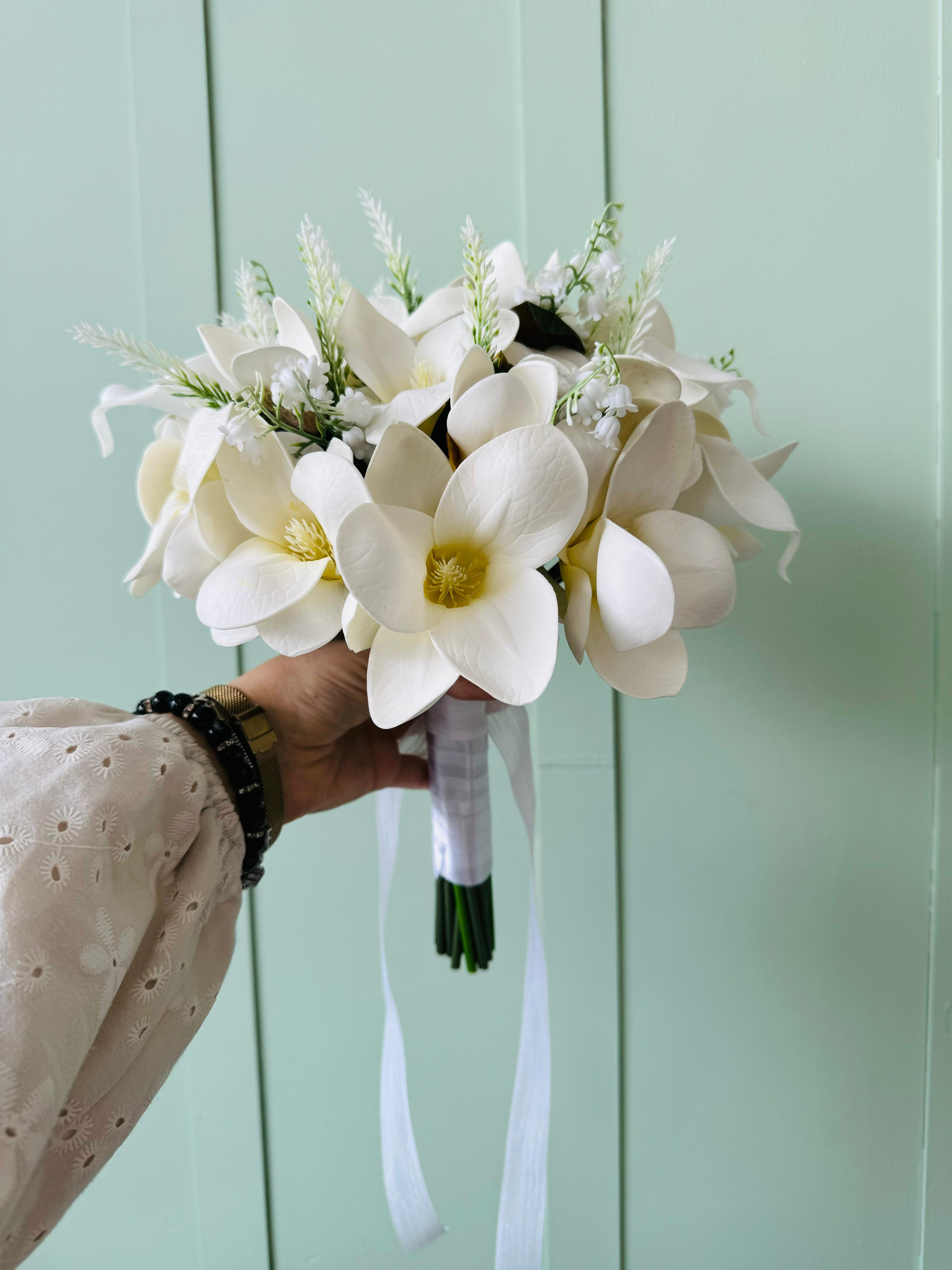 ✨Zarafeti ve asaletiyle öne çıkan manolyalarla hazırlanan bu buket, özel anlara doğal bir şıklık katar. Yumuşak dokusu ve etkileyici duruşuyla sevdiklerinize duygularınızı en saf haliyle iletmenizi sağlar.? Birinci sınıf kalitedeki kumaş yapay çiçeklerden oluşuyor, ömürlüktür. Orta boydur ne büyük ne de küçük. Yaka çiçeği hediyedir. Teslim süresi 15-20 iş günüdür; acil tarihler için not kısmına belirtmeniz yeterlidir. ?Ürünlerimiz tamamen el yapımıdır; bu nedenle her buket ve süs benzersizdir. Çiçeklerin yerleşimi ve detayları ufak farklılıklar gösterebilir, bu da ürünlerimize özel bir karakter katar. ?