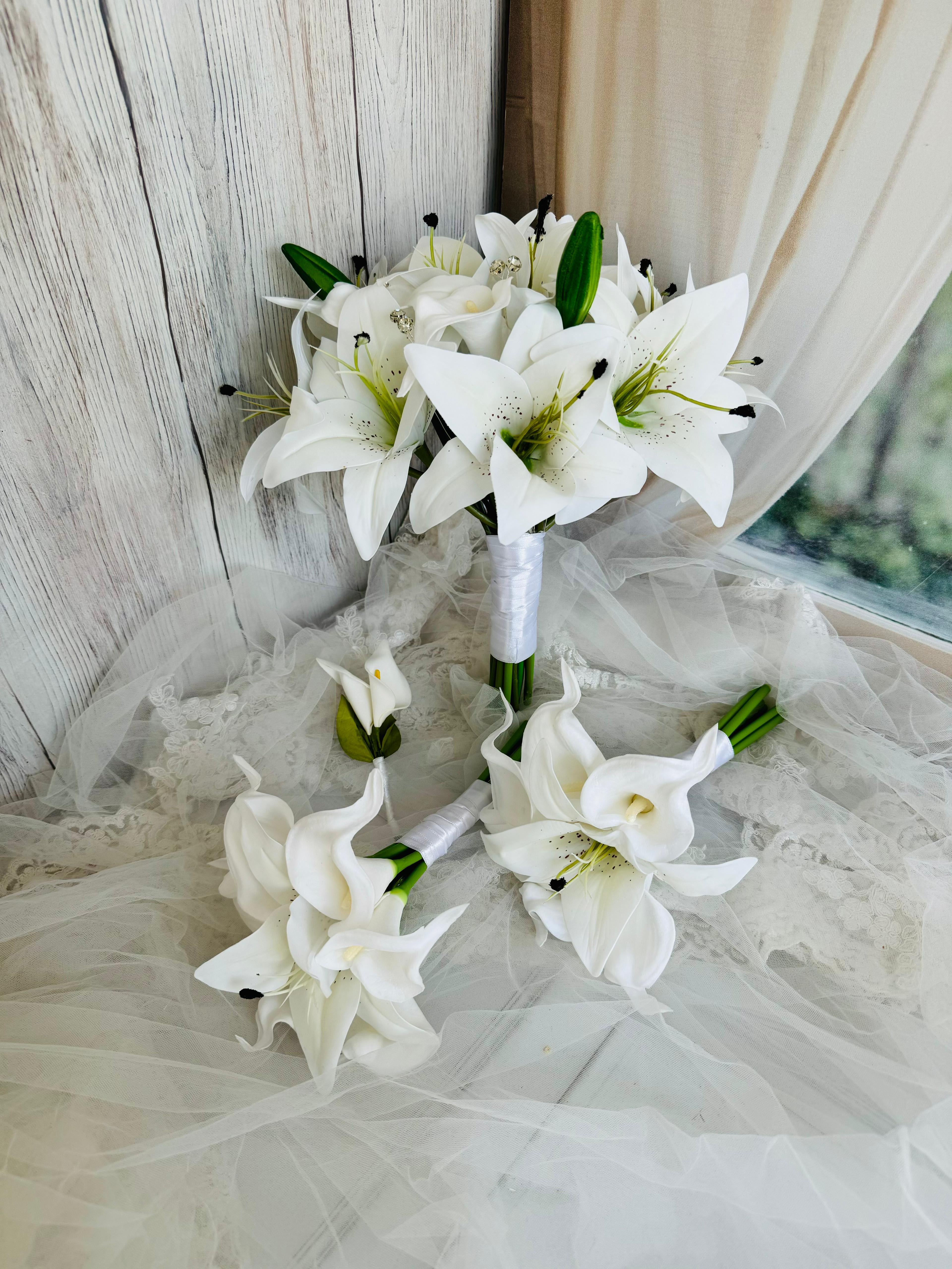 Zarif çizgileri ve kalıcı dokusuyla lilyumlardan hazırlanan bu özel buket, düğün gününüzü unutulmaz kılmak için tasarlandı. Solmayan yapısıyla uzun süre ilk günkü tazeliğini korur ve her özel an için etkileyici bir tercih sunar.? Orta boydur ne büyük ne de küçük. Yaka çiçeği hediyedir. Teslim süresi 15-20 iş günüdür; acil tarihler için not kısmına belirtmeniz yeterlidir. ?Ürünlerimiz tamamen el yapımıdır; bu nedenle her buket ve süs benzersizdir. Çiçeklerin yerleşimi ve detayları ufak farklılıklar gösterebilir, bu da ürünlerimize özel bir karakter katar. ?