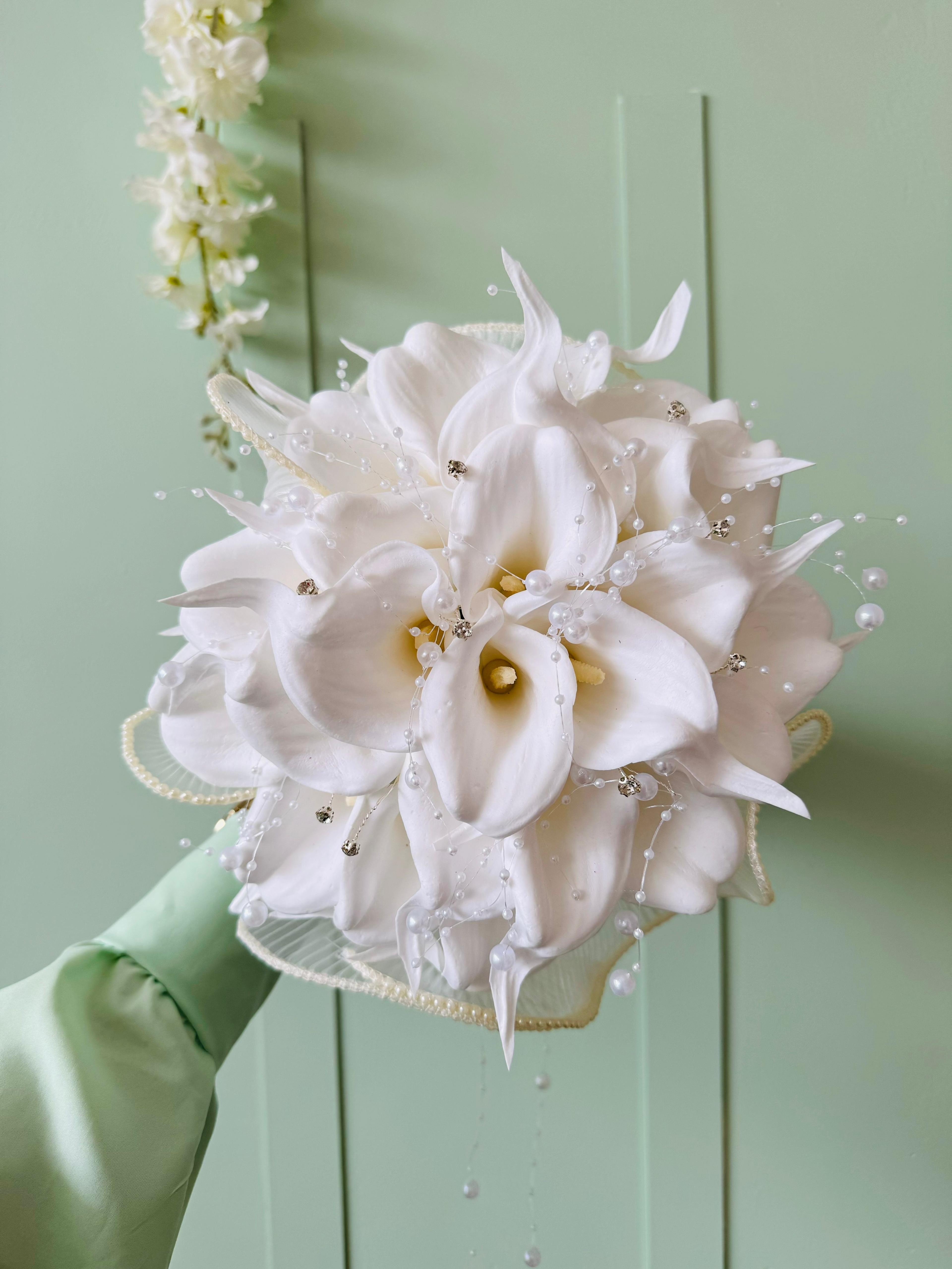 ✨Zarif beyaz galaların tül kaplama ile buluştuğu bu buket, saflığın ve şıklığın en zarif ifadesidir. Özel anlara sade ama etkileyici bir dokunuş katar.? 24 adet yapay ıslak dokulu galadan oluşuyor. Orta boydur ne büyük ne de küçük. Yaka çiçeği hediyedir. Teslim süresi 15-20 iş günüdür; acil tarihler için not kısmına belirtmeniz yeterlidir. ?Ürünlerimiz tamamen el yapımıdır; bu nedenle her buket ve süs benzersizdir. Çiçeklerin yerleşimi ve detayları ufak farklılıklar gösterebilir, bu da ürünlerimize özel bir karakter katar. ?