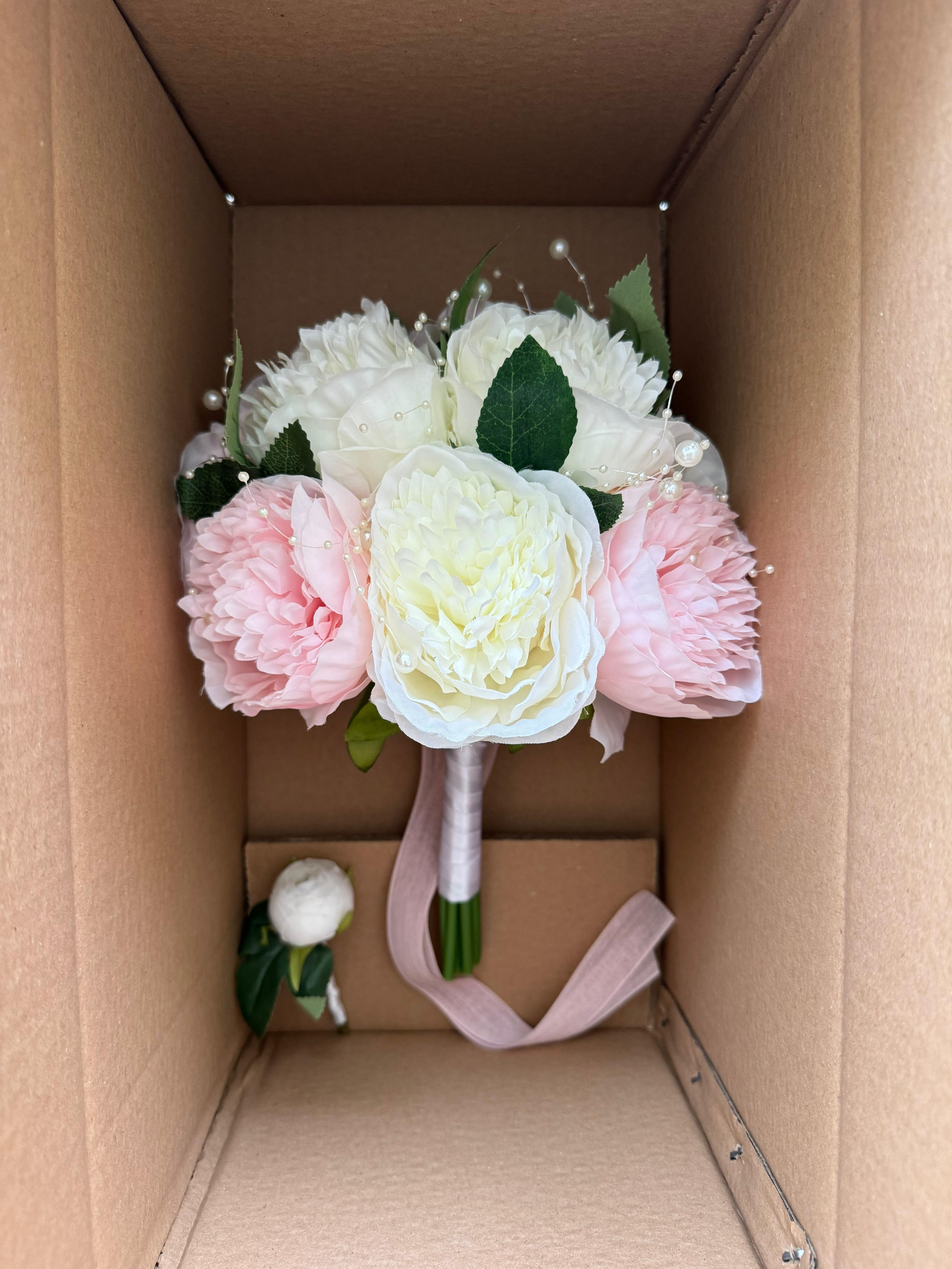 ✨ Pembe ve beyaz çiçekler ile öne çıkan bu buket, özel gününüzde size doğal bir zarafet ve taze bir enerji katar. Modern ve şık duruşuyla tüm konseptlere kolayca uyum sağlar. Birinci sınıf kalitedeki kumaş ve yapay çiçeklerden oluşmaktadır, ömürlüktür. Orta boydur ne büyük ne de küçük. Yaka çiçeği hediyedir. Teslim süresi 15-20 iş günüdür; acil tarihler için not kısmına belirtmeniz yeterlidir. ?Ürünlerimiz tamamen el yapımıdır; bu nedenle her buket ve süs benzersizdir. Çiçeklerin yerleşimi ve detayları ufak farklılıklar gösterebilir, bu da ürünlerimize özel bir karakter katar. ?