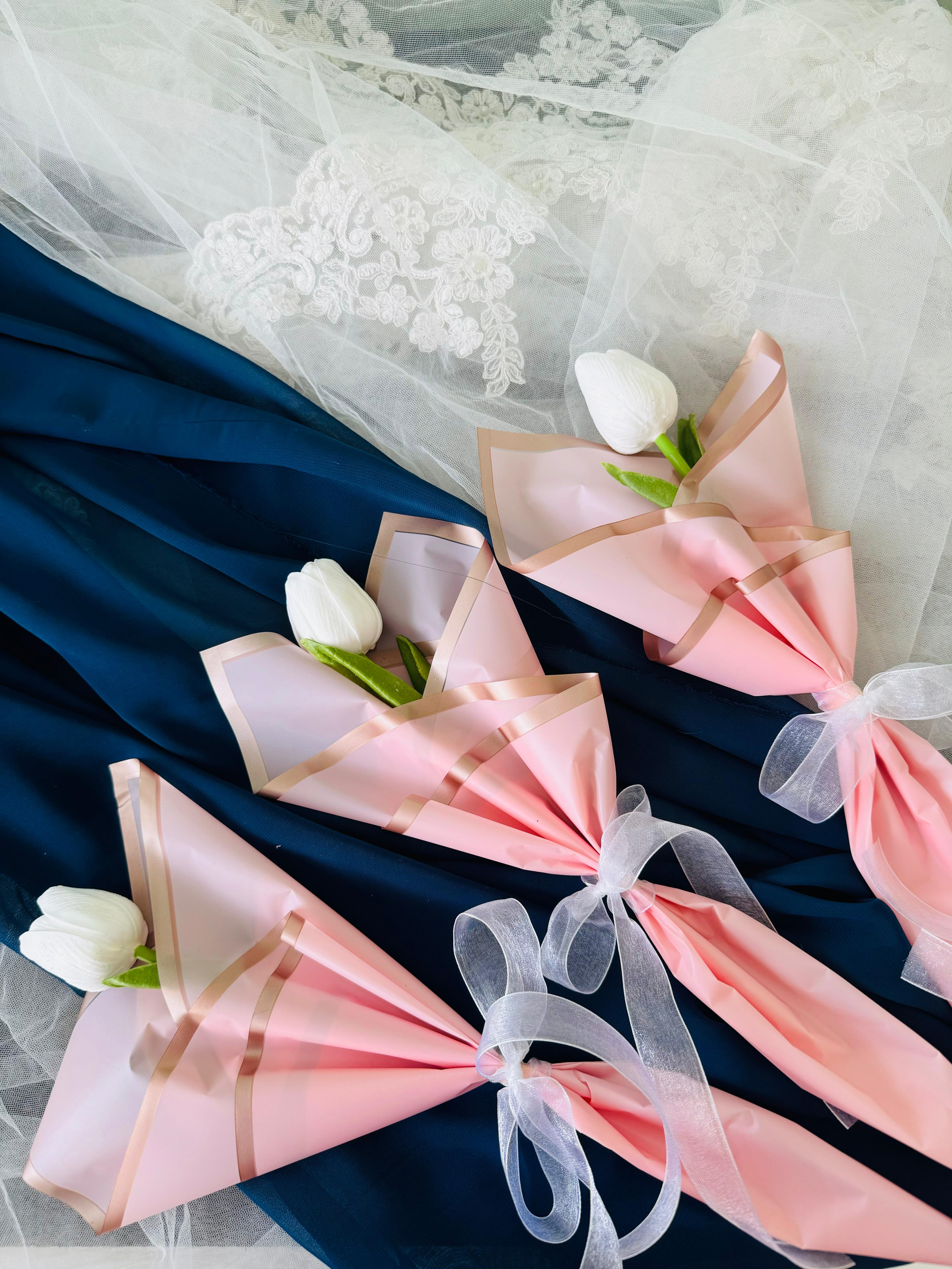 ?Beyaz lalelerin asaleti ile hazırlanan bu buket özel anlarınıza zarafet katar. Sevginizi en saf haliyle anlatan özel bir isteme ve nişan buketi. 50 adet yapay ıslak laleden oluşuyor. Teslim süresi 15-20 iş günüdür; acil tarihler için not kısmına belirtmeniz yeterlidir. Ürünlerimiz tamamen el yapımıdır; bu nedenle her buket ve süs benzersizdir. Çiçeklerin yerleşimi ve detayları ufak farklılıklar gösterebilir, bu da ürünlerimize özel bir karakter katar. ?