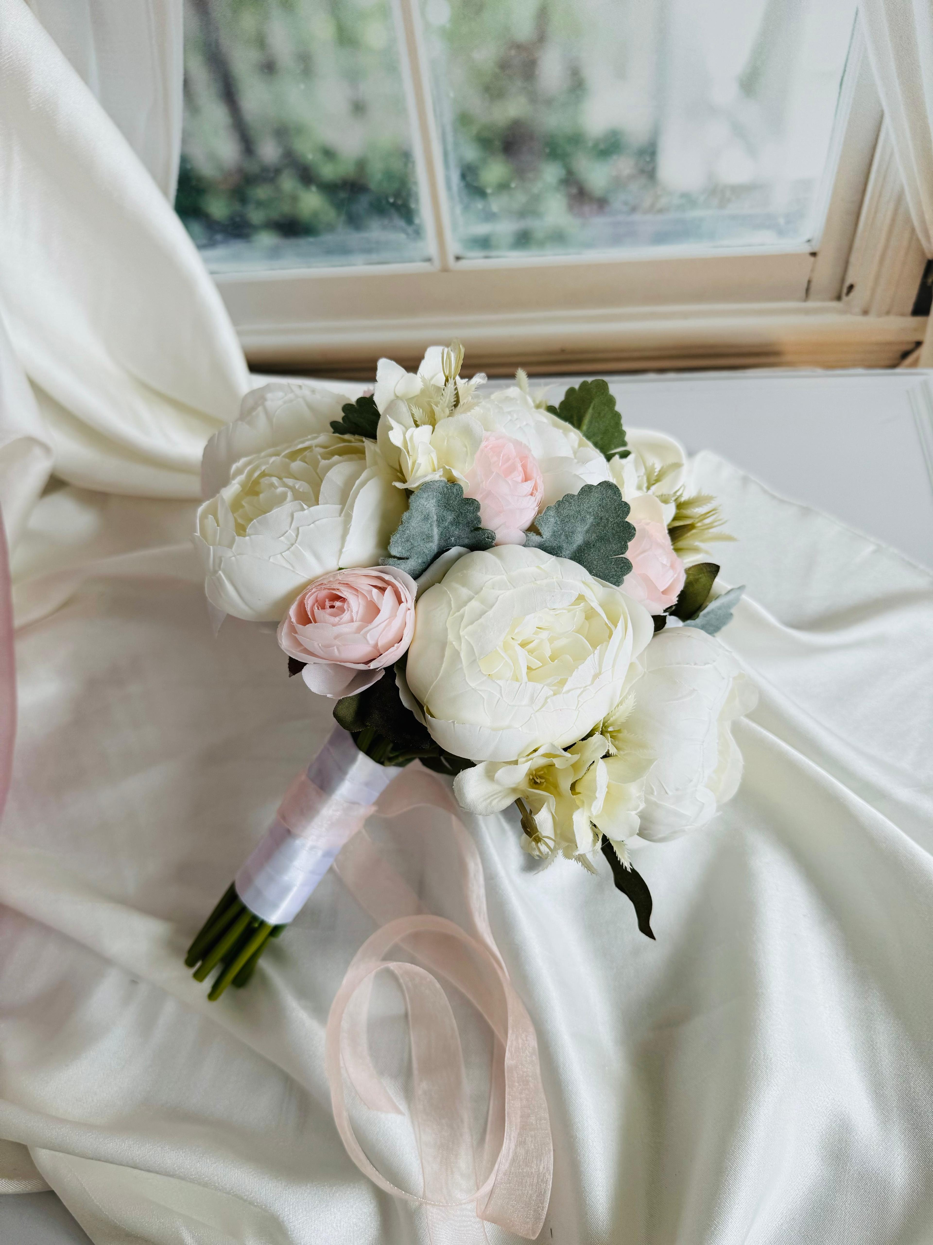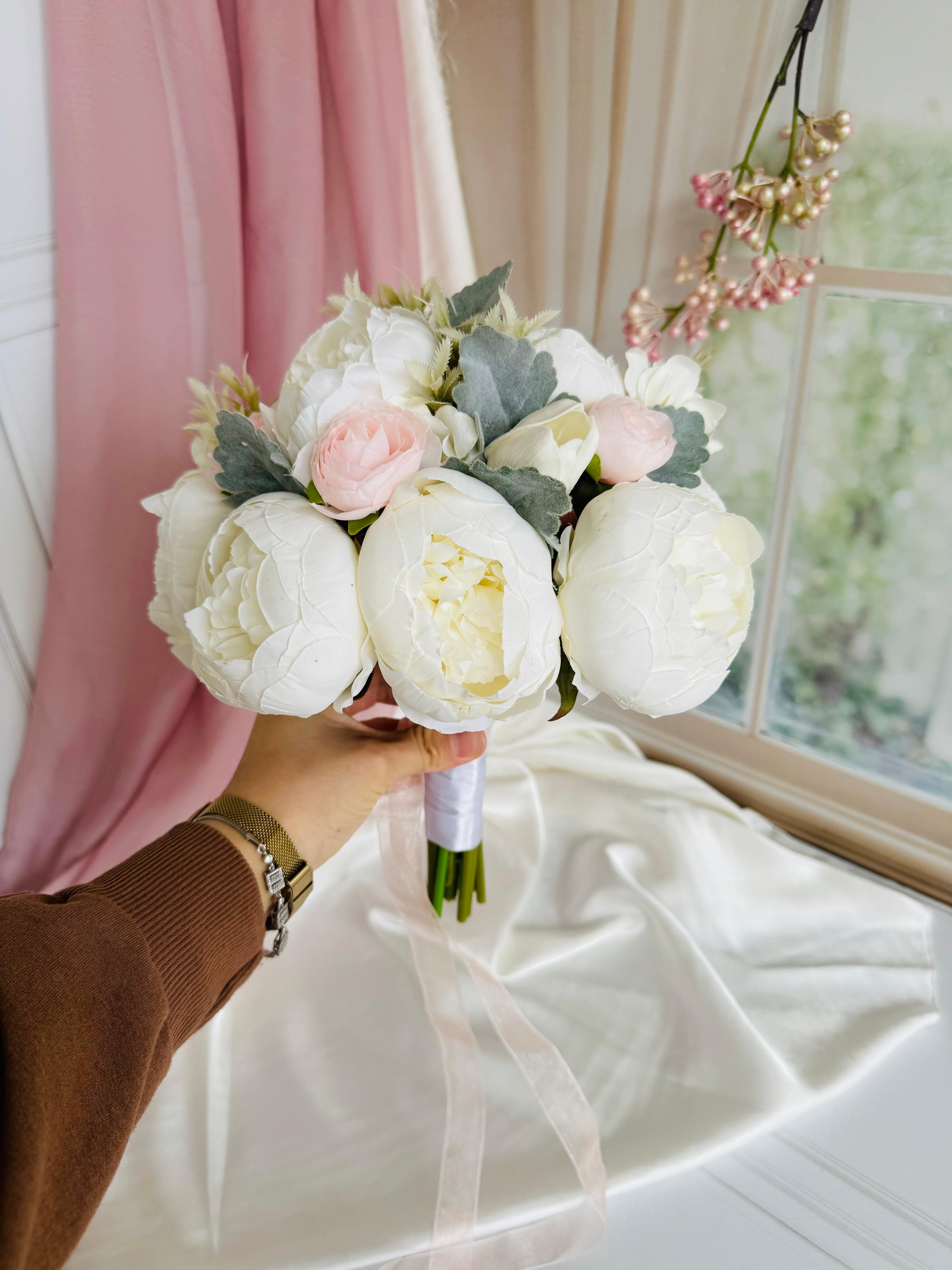 ?Gerçek çiçek görünümündeki birinci sınıf kumaş çiçeklerle hazırlanmıştır. Zarif ve sade tasarımıyla her gelinliğe uyum sağlar. Orta boydur ne büyük ne de küçük . Yaka çiçeği hediyedir. Teslim süresi 15-20 iş günüdür; acil tarihler için not kısmına belirtmeniz yeterlidir.? Ürünlerimiz tamamen el yapımıdır; bu nedenle her buket ve süs benzersizdir. Çiçeklerin yerleşimi ve detayları ufak farklılıklar gösterebilir, bu da ürünlerimize özel bir karakter katar. ?