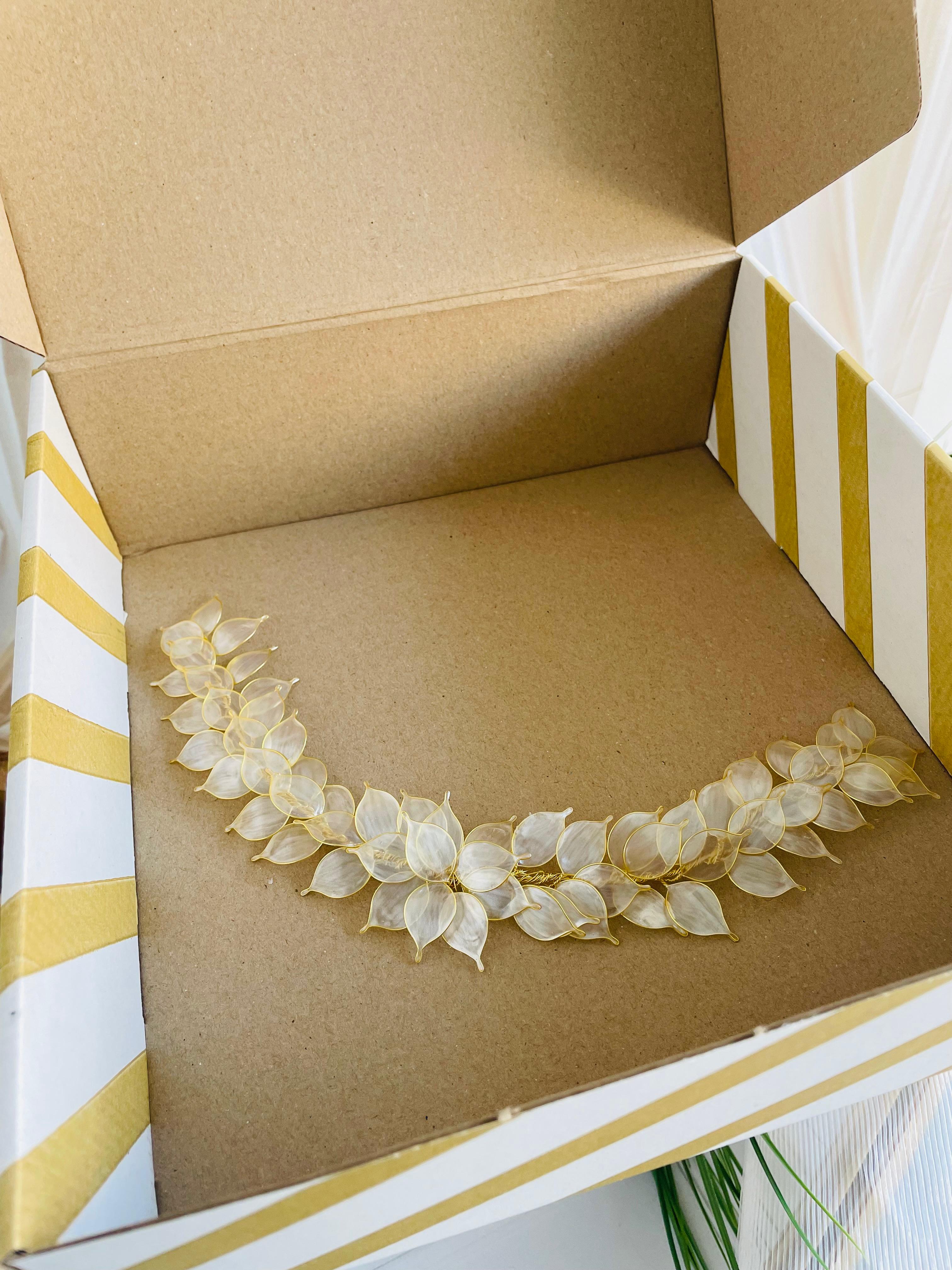 Zarafetiyle büyüleyen Gold Gelin Tacı sade şıklığı tercih eden gelinler için özel olarak tasarlandı. Tesettürlü ve açık saç modelleri ile kusursuz uyum sağlar. En özel gününüzde ışıltıınızı tamamlayan zarif bir dokunuş sunar.✨ ?Teslim süresi 10–15 iş günüdür. Acil teslimat veya özel renk tercihi için lütfen sipariş notuna istediğiniz tarih ve rengi ekleyiniz.