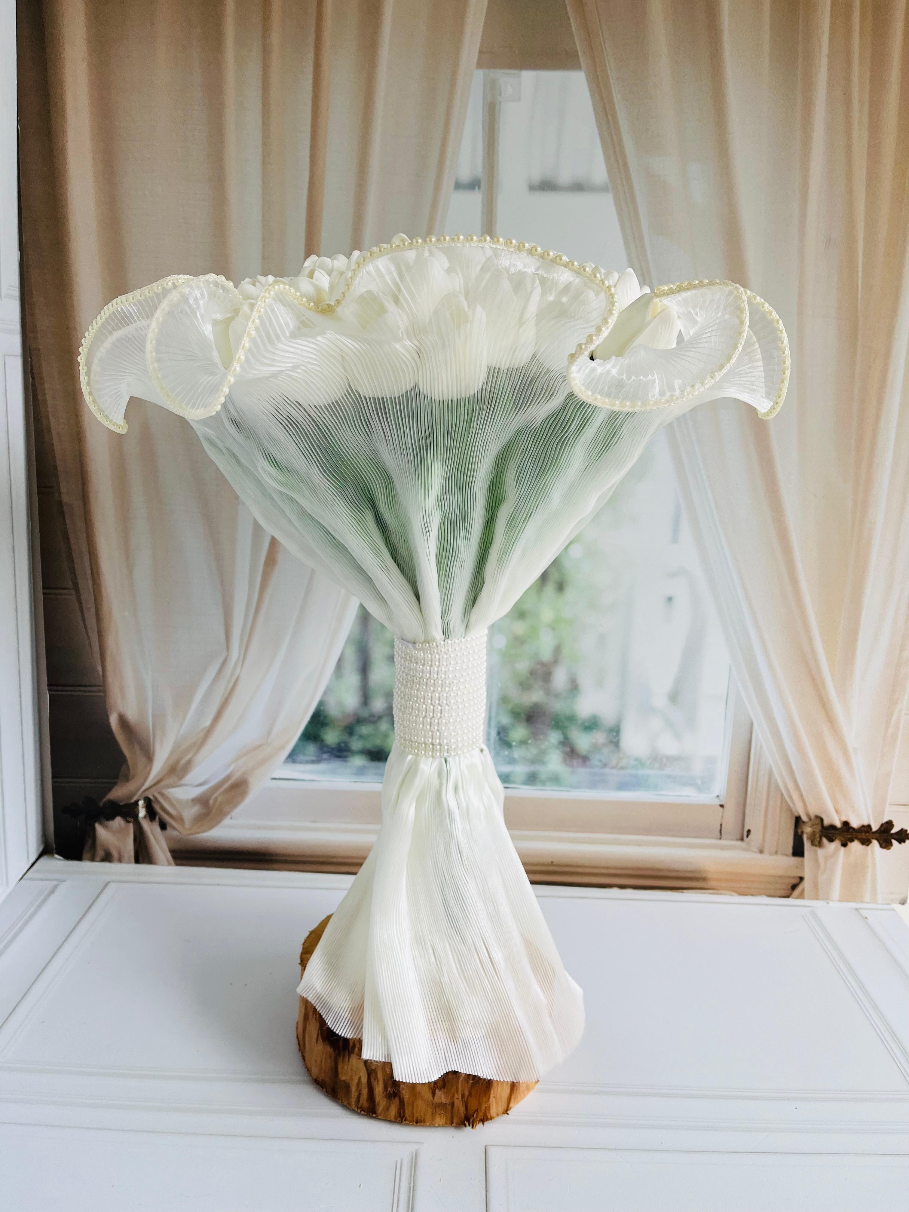 ?Beyaz lalelerin asaleti ile hazırlanan bu buket özel anlarınıza zarafet katar. Sevginizi en saf haliyle anlatan özel bir isteme ve nişan buketi. 60 adet yapay ıslak laleden oluşuyor. Teslim süresi 15-20 iş günüdür; acil tarihler için not kısmına belirtmeniz yeterlidir. Ürünlerimiz tamamen el yapımıdır; bu nedenle her buket ve süs benzersizdir. Çiçeklerin yerleşimi ve detayları ufak farklılıklar gösterebilir, bu da ürünlerimize özel bir karakter katar. ?