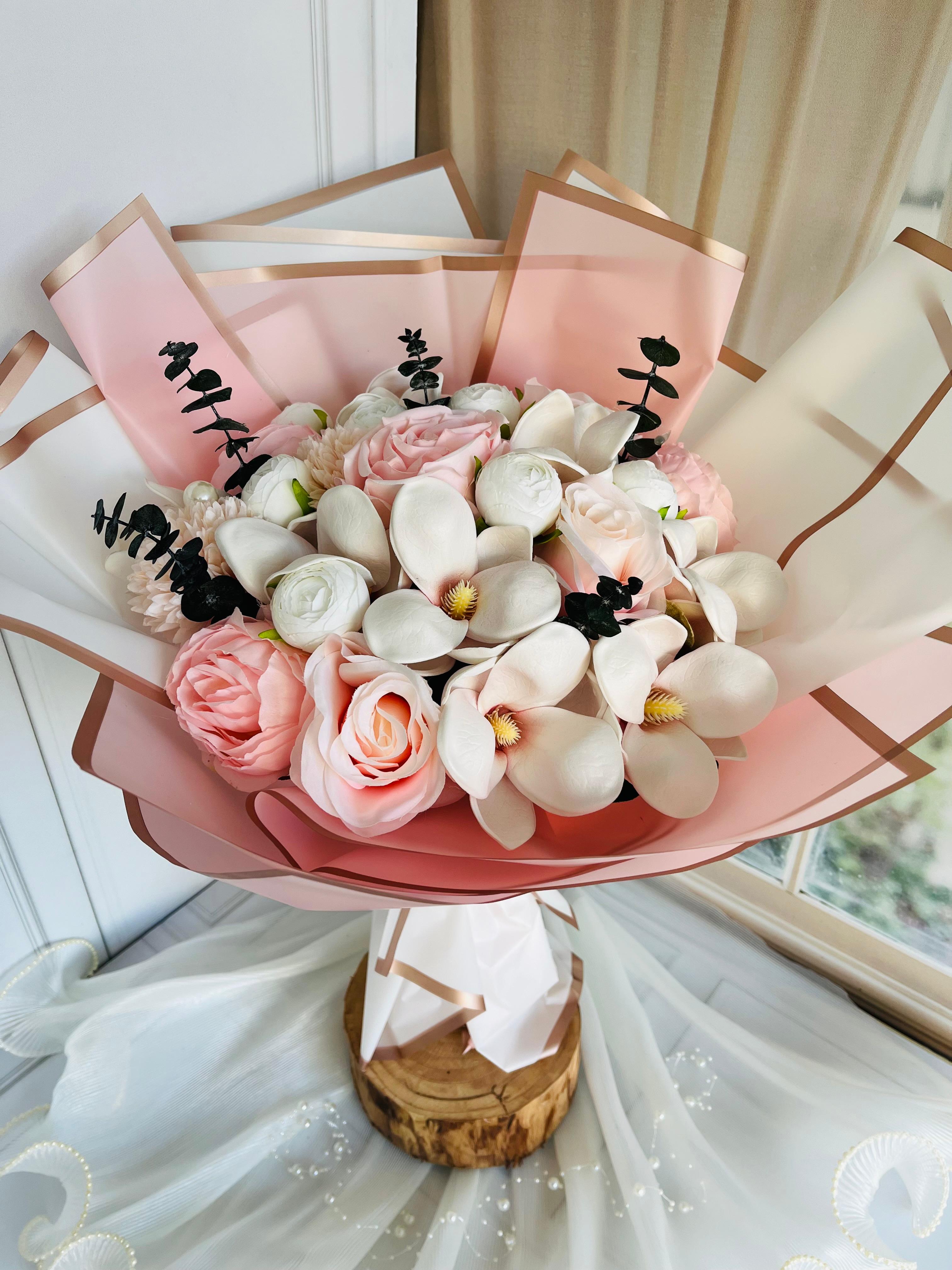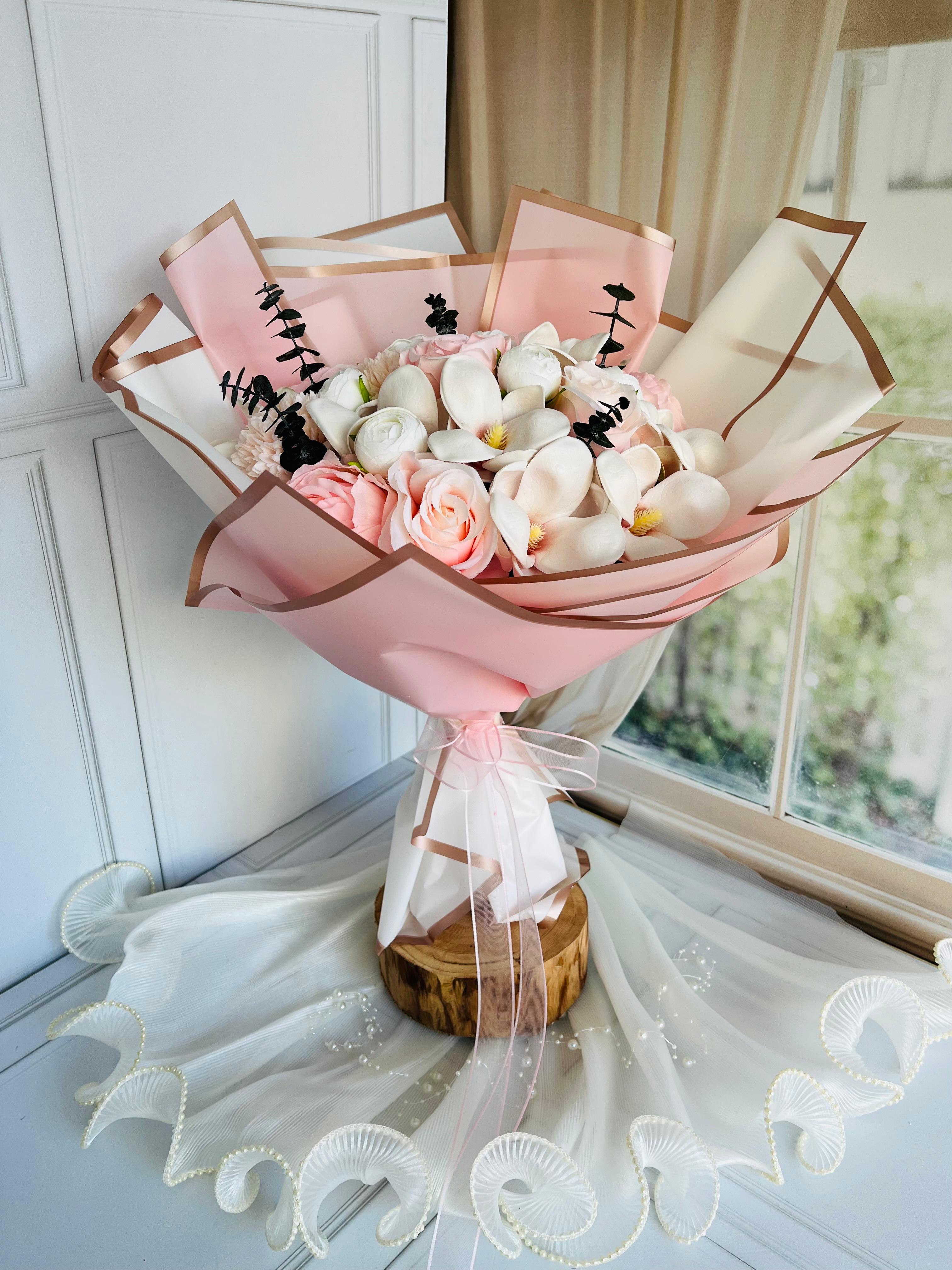 ? Göz alıcı bir ilk izlenim için tasarlandı. Her detayıyla özenle hazırlanan isteme ve nişan buketimiz, sevginin en asil halini yansıtır. ✨Teslim süresi 15-20 iş günüdür; acil tarihler için not kısmına belirtmeniz yeterlidir. Ürünlerimiz tamamen el yapımıdır; bu nedenle her buket ve süs benzersizdir. Çiçeklerin yerleşimi ve detayları ufak farklılıklar gösterebilir, bu da ürünlerimize özel bir karakter katar. ?