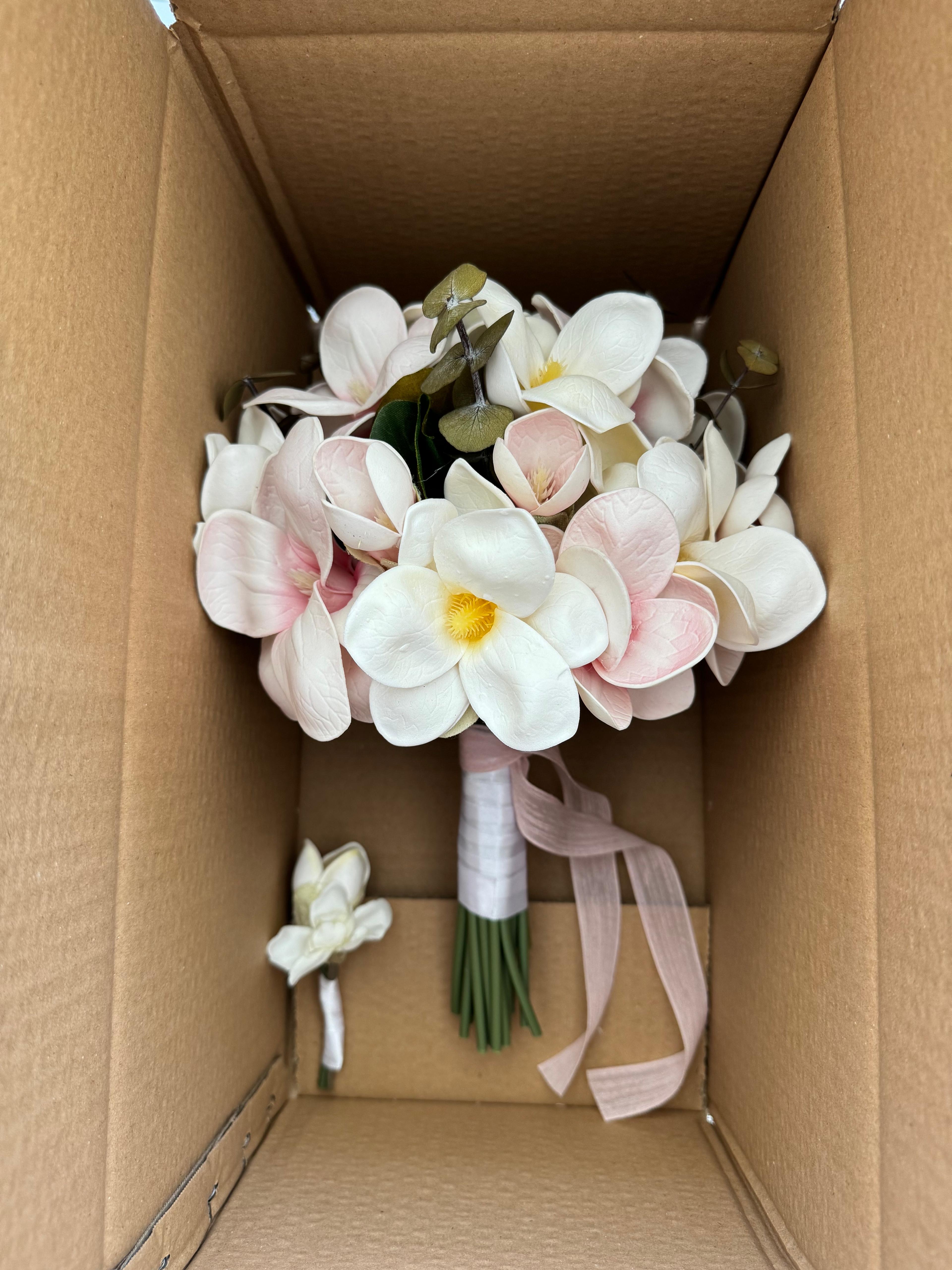 ✨Zarafeti ve asaletiyle öne çıkan manolyalarla hazırlanan bu buket, özel anlara doğal bir şıklık katar. Yumuşak dokusu ve etkileyici duruşuyla sevdiklerinize duygularınızı en saf haliyle iletmenizi sağlar.? Birinci sınıf kalitedeki kumaş yapay çiçeklerden oluşuyor, ömürlüktür. Orta boydur ne büyük ne de küçük. Yaka çiçeği hediyedir. Teslim süresi 15-20 iş günüdür; acil tarihler için not kısmına belirtmeniz yeterlidir. ?Ürünlerimiz tamamen el yapımıdır; bu nedenle her buket ve süs benzersizdir. Çiçeklerin yerleşimi ve detayları ufak farklılıklar gösterebilir, bu da ürünlerimize özel bir karakter katar. ?