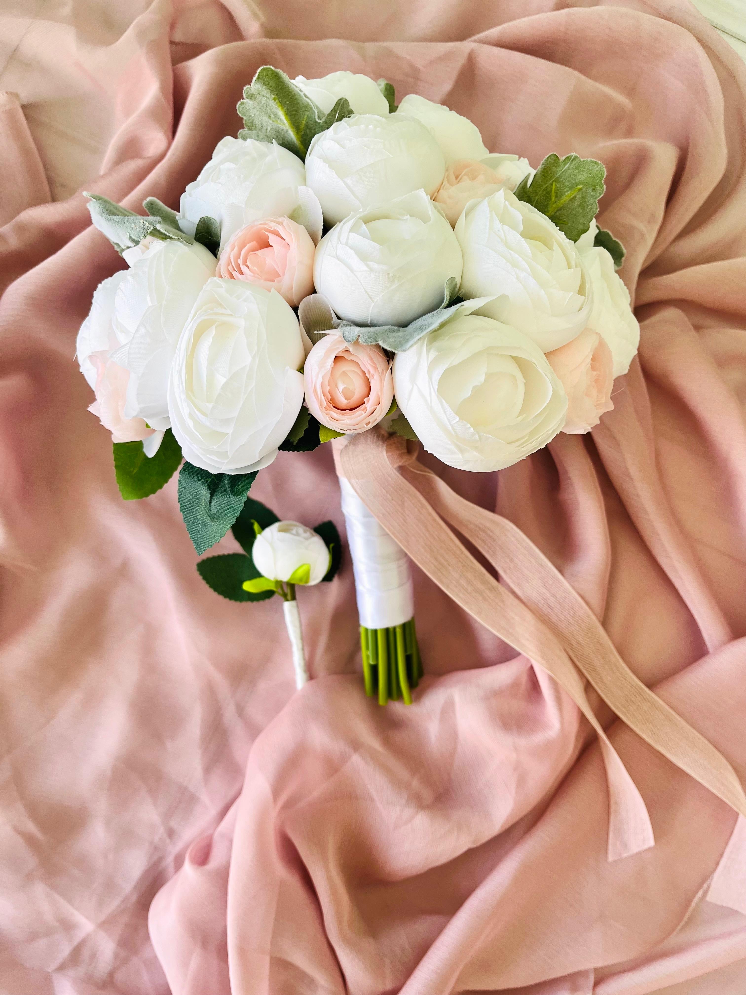 ?Doğal tonlarda, birinci sınıf kumaş çiçekler ile hazırlanmış gelin buketidir. Uzun ömürlüdür . Orta boydur ne büyük ne de küçük . Yaka çiçeği hediyedir. Teslim süremiz 15-20 iş günüdür; acil tarihler için sipariş notuna tarih eklemeniz yeterlidir.? ?Ürünlerimiz tamamen el yapımıdır; bu nedenle her buket ve süs benzersizdir. Çiçeklerin yerleşimi ve detayları ufak farklılıklar gösterebilir, bu da ürünlerimize özel bir karakter katar. ?