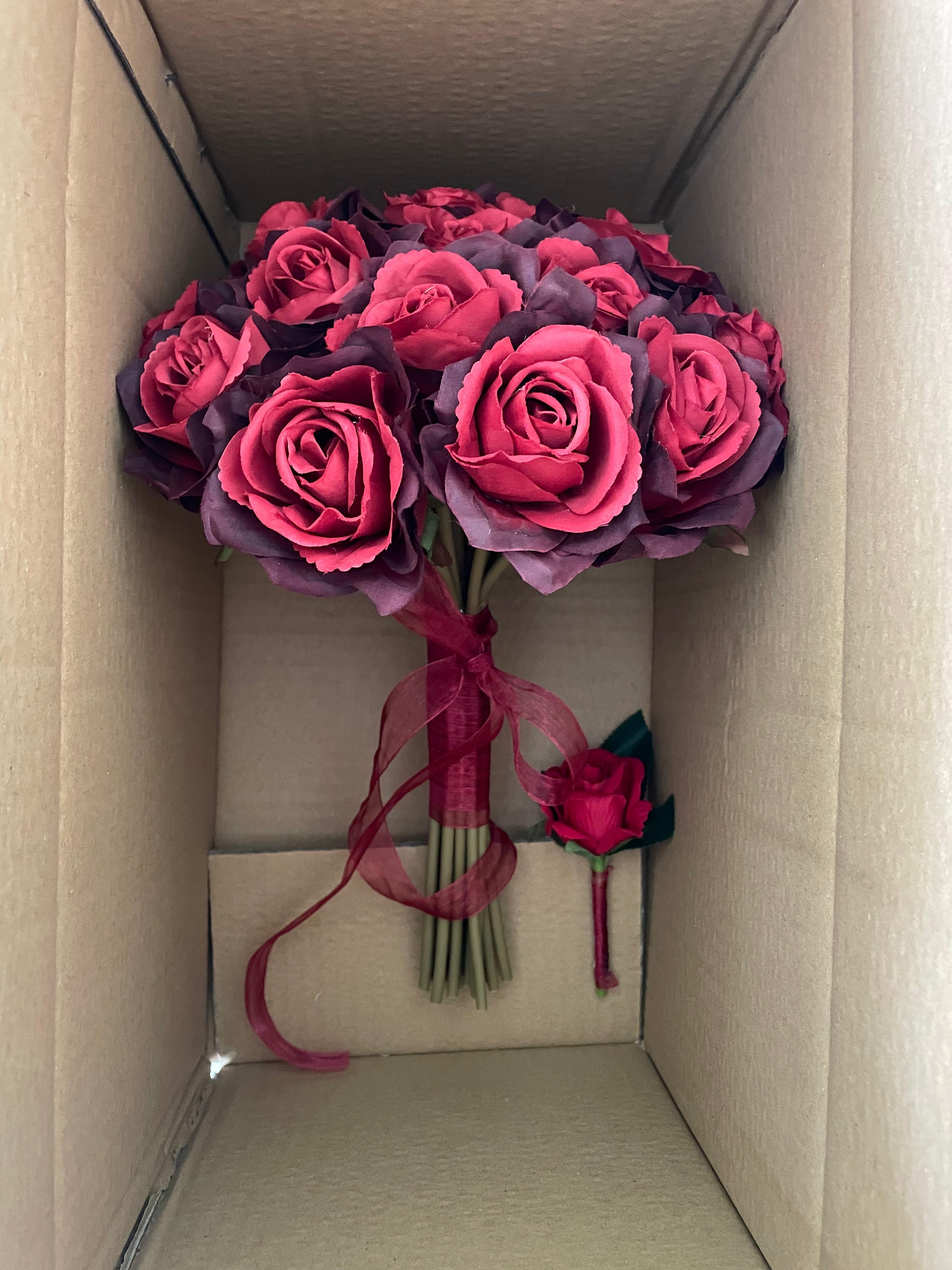 Kırmızı güllerin derin tonları ve yumuşak dokusuyla tasarlanan bu buket, özel gününüze zarafet ve romantizmin en özel halini taşır.? Düğün veya nişan için uygundur. Orta boydur ne büyük ne de küçük. Yaka çiçeği hediyedir. Teslim süresi 15-20 iş günüdür; acil tarihler için not kısmına belirtmeniz yeterlidir. ?Ürünlerimiz tamamen el yapımıdır; bu nedenle her buket ve süs benzersizdir. Çiçeklerin yerleşimi ve detayları ufak farklılıklar gösterebilir, bu da ürünlerimize özel bir karakter katar. ?