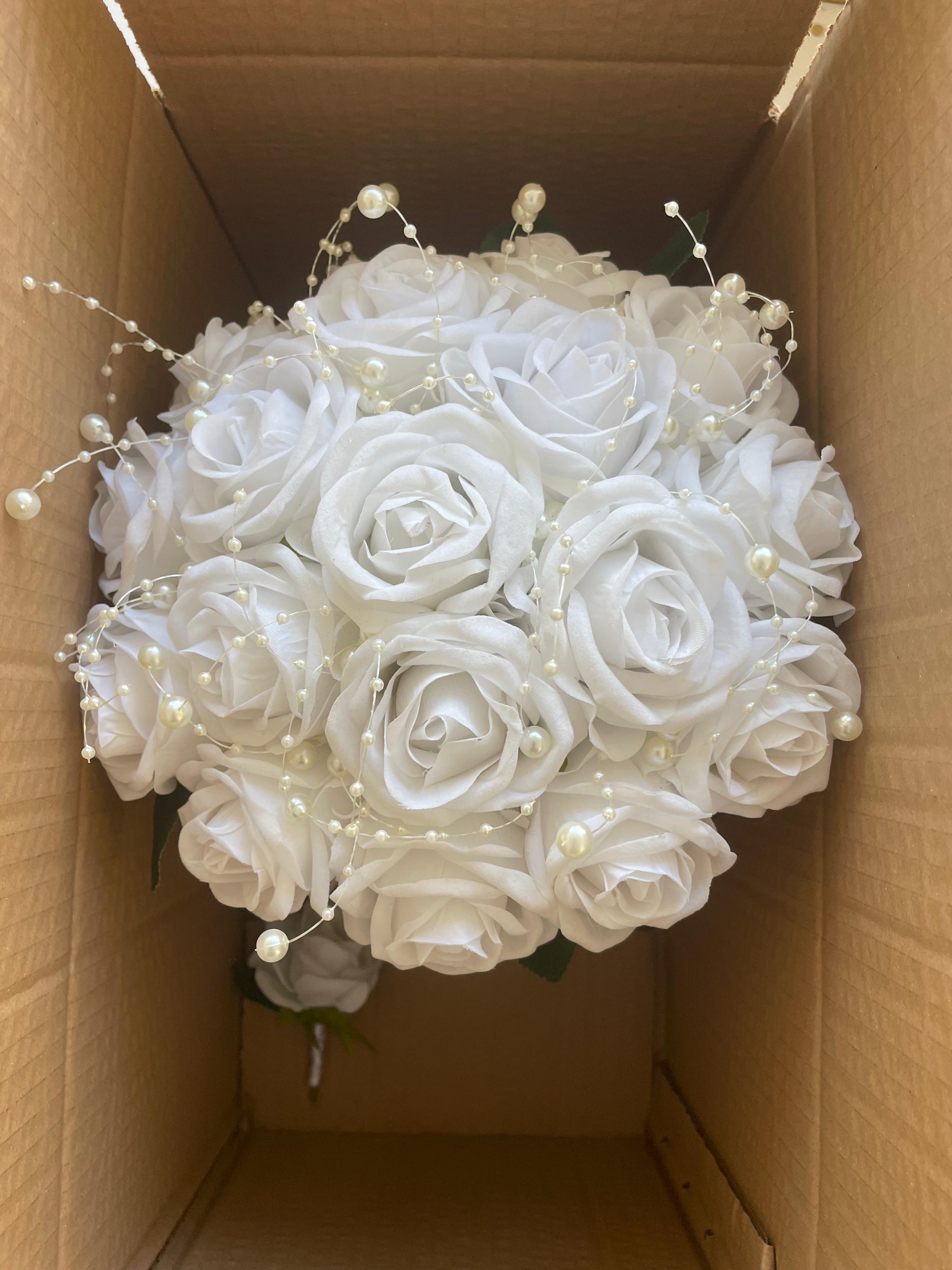 ? Beyaz güllerin zarif dansıyla hayat bulan bu özel tasarım gelin buketi, aşkın en saf halini yansıtır. Her gül, sevgiyle seçilmiş; her detay, zarafetle örülmüştür. Romantik ruhunu zarif dokunuşlarla ifade etmek isteyen gelinler için tasarlandı. Orta boydur ne büyük ne de küçük . Birinci sınıf kalitedeki kumaş güllerden oluşmaktadır . Yaka çiçeği hediyedir. Teslim süresi 15-20 iş günüdür; acil tarihler için not kısmına belirtmeniz yeterlidir. ? ?Ürünlerimiz tamamen el yapımıdır; bu nedenle her buket ve süs benzersizdir. Çiçeklerin yerleşimi ve detayları ufak farklılıklar gösterebilir, bu da ürünlerimize özel bir karakter katar. ?