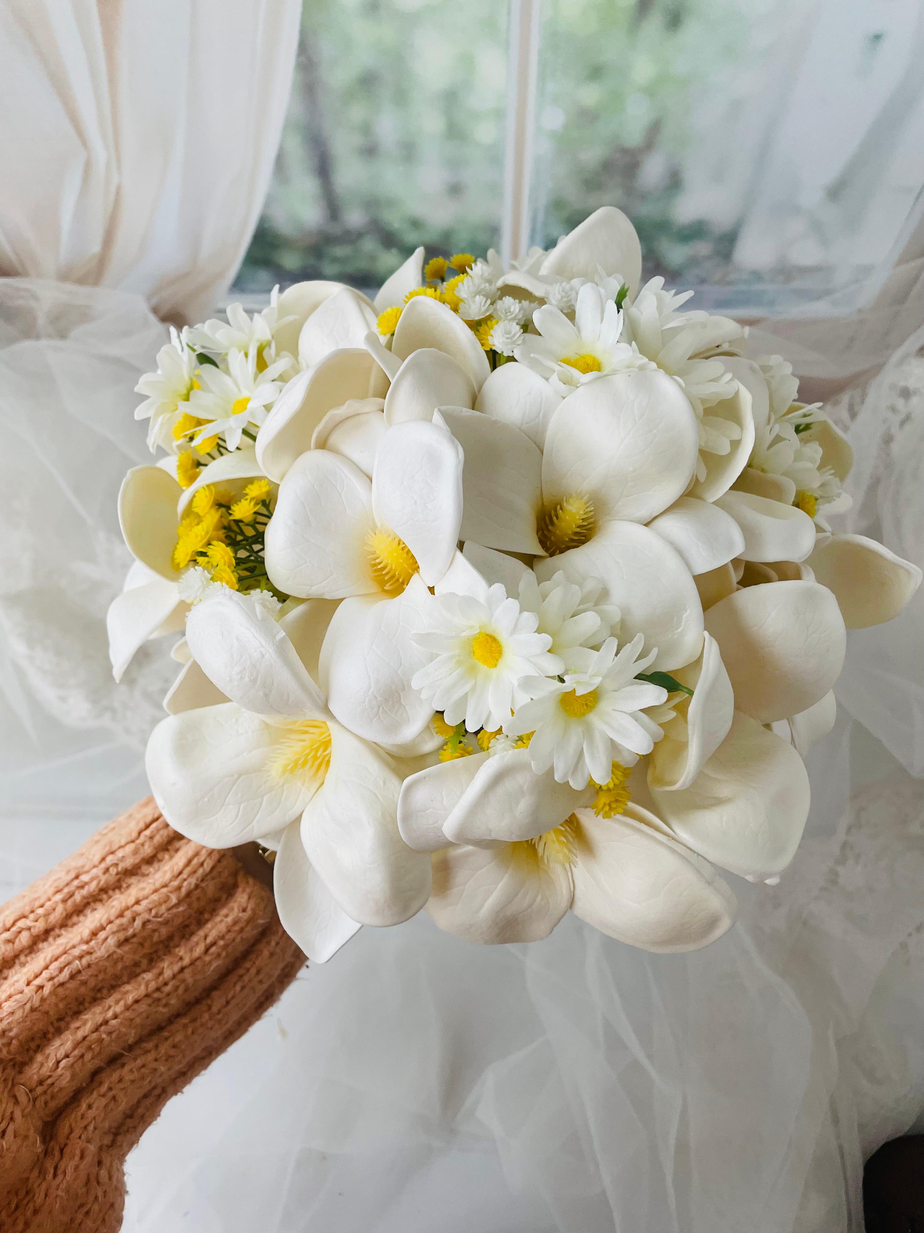 ✨Zarafeti ve asaletiyle öne çıkan manolyalarla hazırlanan bu buket, özel anlara doğal bir şıklık katar. Yumuşak dokusu ve etkileyici duruşuyla sevdiklerinize duygularınızı en saf haliyle iletmenizi sağlar.? Birinci sınıf kalitedeki kumaş yapay çiçeklerden oluşuyor, ömürlüktür. Orta boydur ne büyük ne de küçük. Yaka çiçeği hediyedir. Teslim süresi 15-20 iş günüdür; acil tarihler için not kısmına belirtmeniz yeterlidir. ?Ürünlerimiz tamamen el yapımıdır; bu nedenle her buket ve süs benzersizdir. Çiçeklerin yerleşimi ve detayları ufak farklılıklar gösterebilir, bu da ürünlerimize özel bir karakter katar. ?