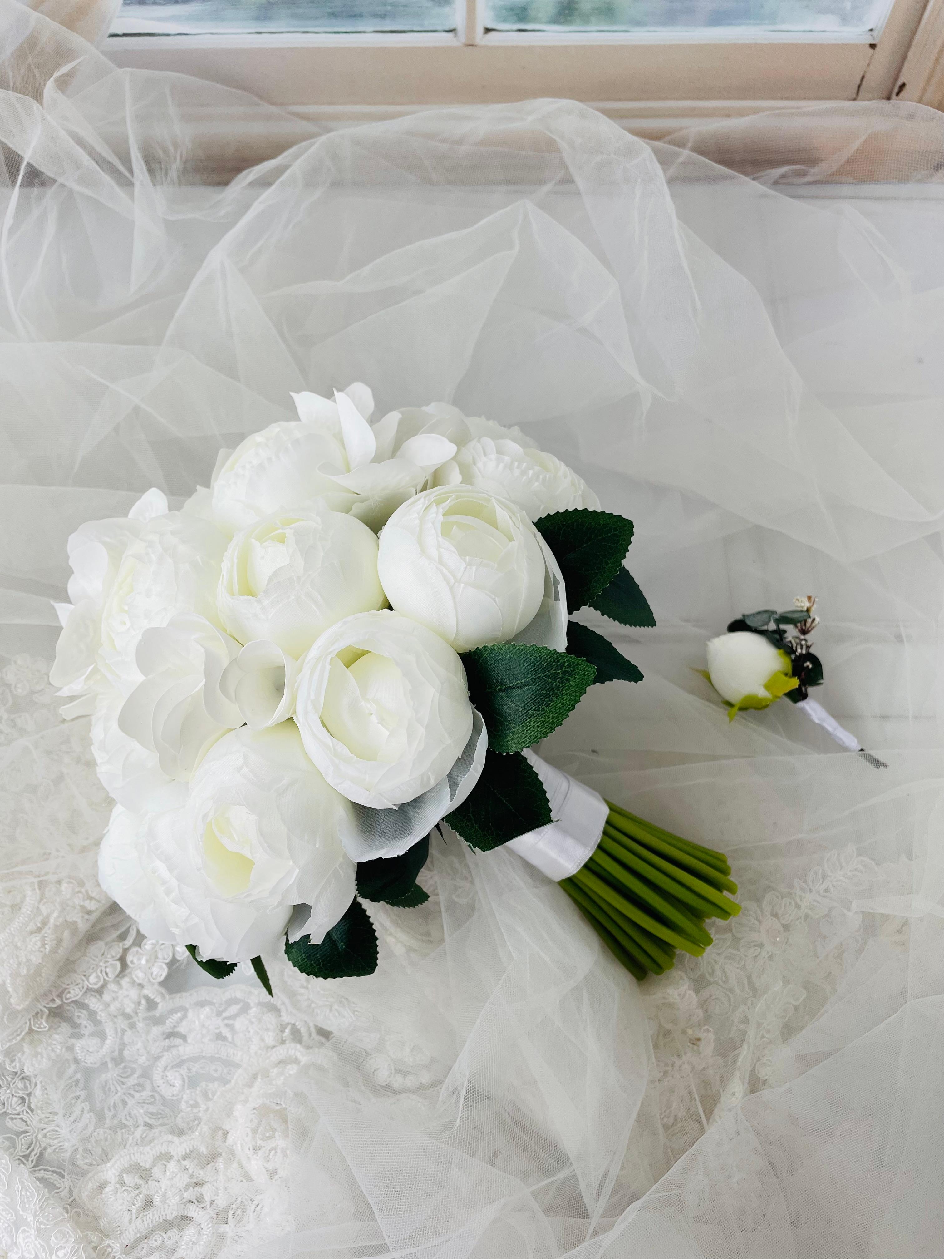 ?Gerçek çiçek görünümündeki birinci sınıf kumaş çiçeklerle hazırlanmıştır. Zarif ve sade tasarımıyla her gelinliğe uyum sağlar. Orta boydur ne büyük ne de küçük . Yaka çiçeği hediyedir. Teslim süresi 15-20 iş günüdür; acil tarihler için not kısmına belirtmeniz yeterlidir. ? Ürünlerimiz tamamen el yapımıdır; bu nedenle her buket ve süs benzersizdir. Çiçeklerin yerleşimi ve detayları ufak farklılıklar gösterebilir, bu da ürünlerimize özel bir karakter katar. ?
